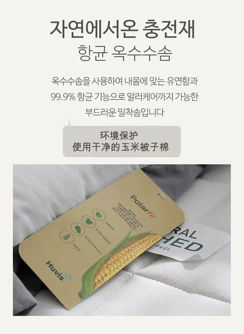 搭配頂級玉米棉填充,透氣不悶熱,冬天保暖、夏天清爽