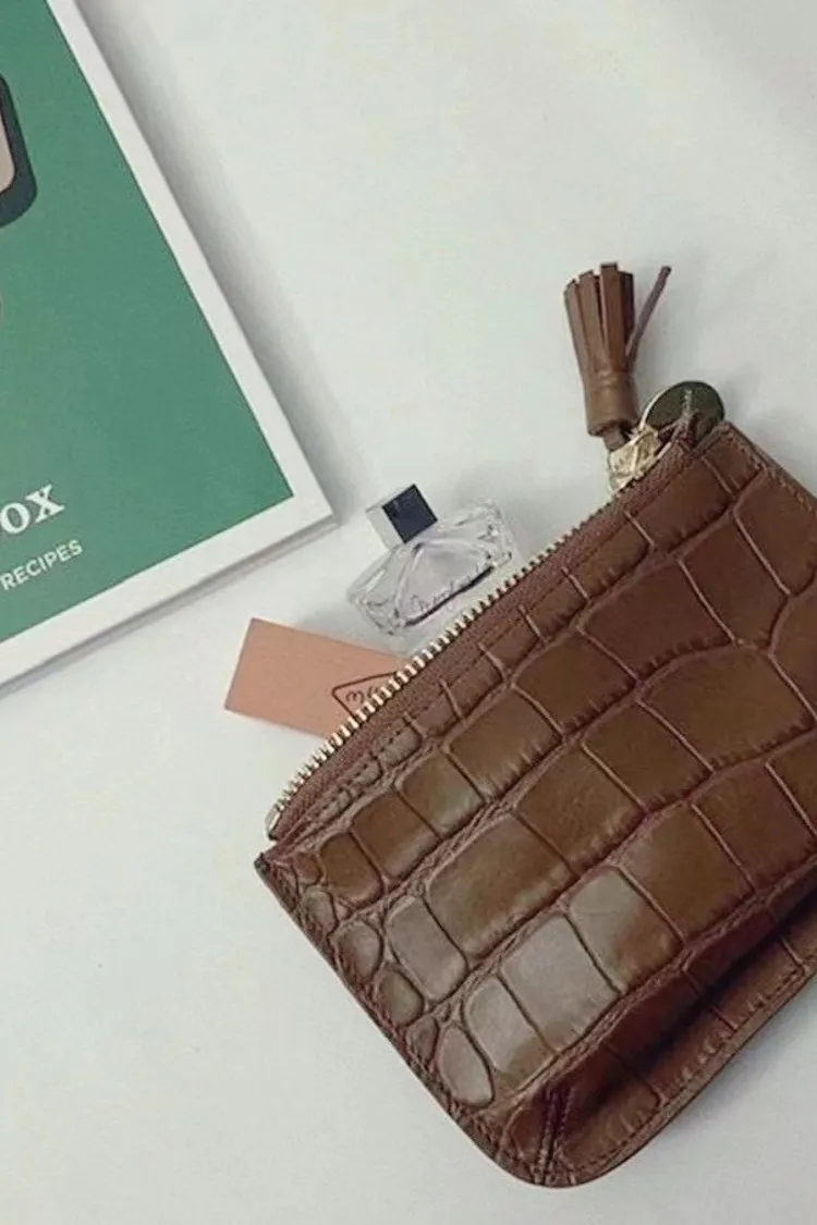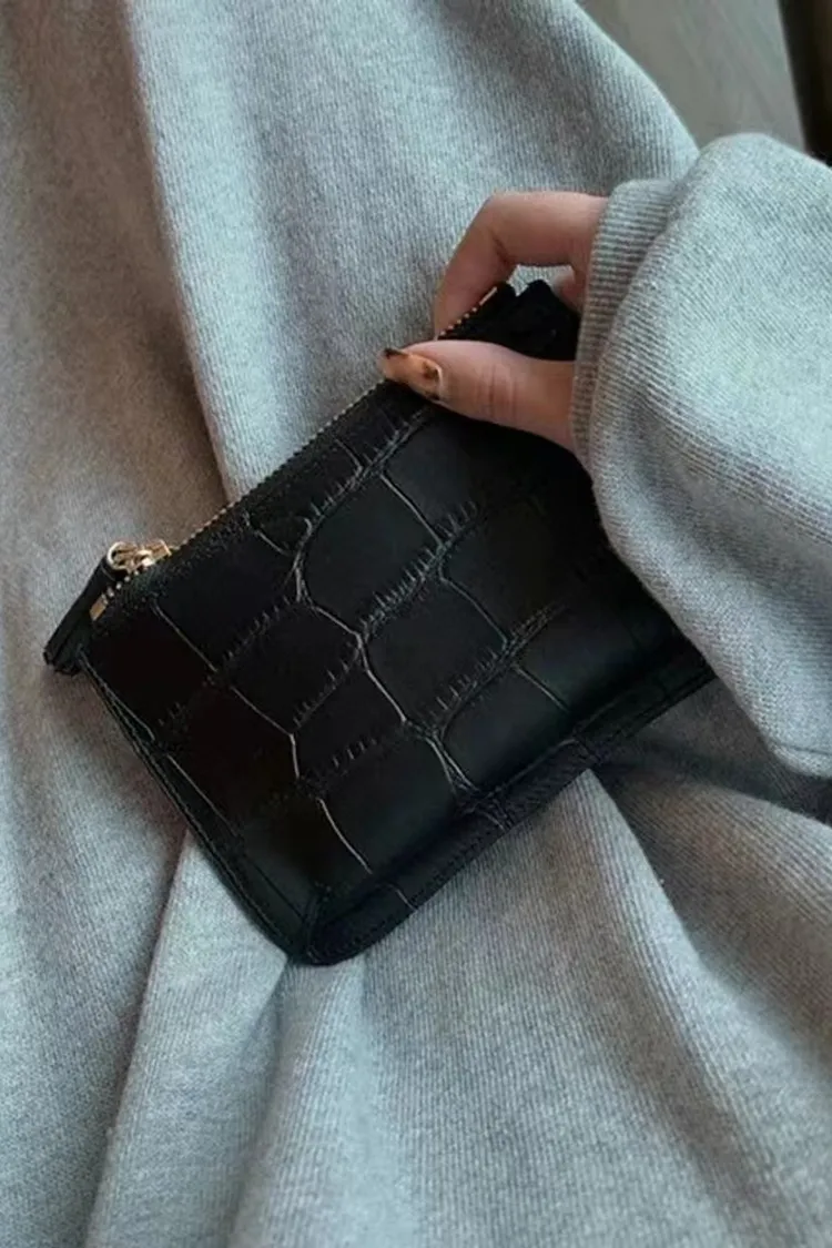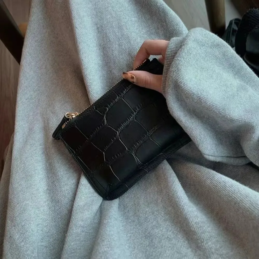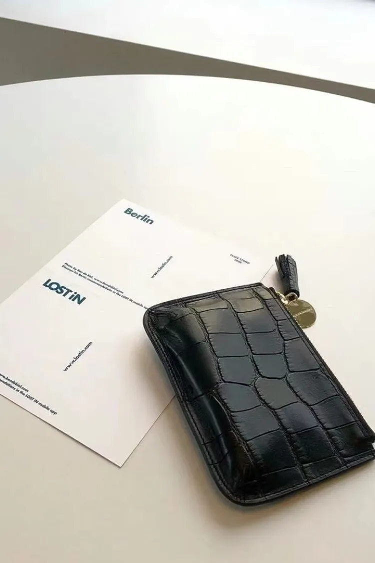 bucks&leather 經典ins風 牛皮拉鍊零錢包 鱷魚紋 真皮包