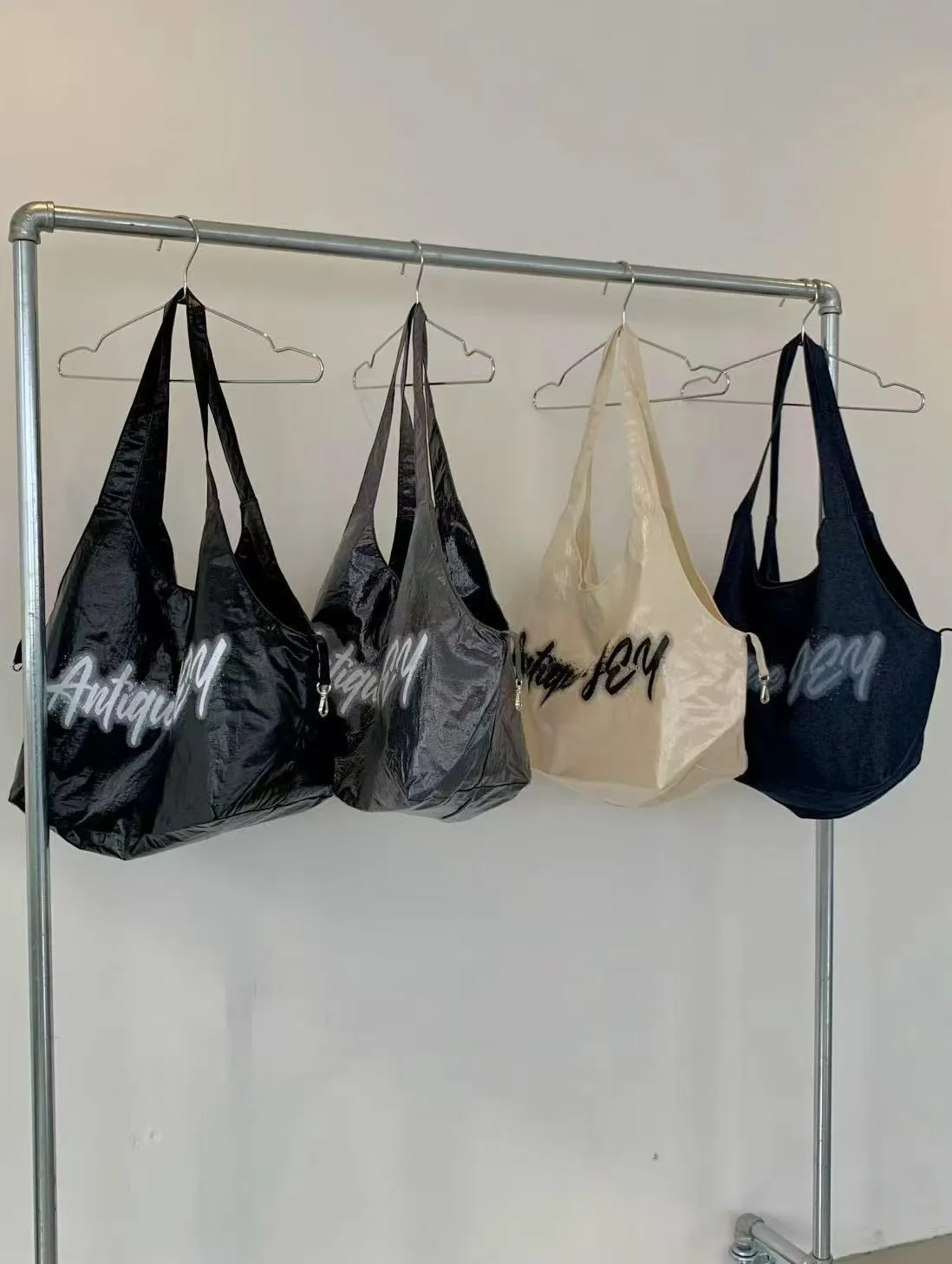 韓國代購 2025春夏新品 簡約噴墨字母大容量單肩包 尼龍混合皮革 韓國設計師品牌 韓國包
