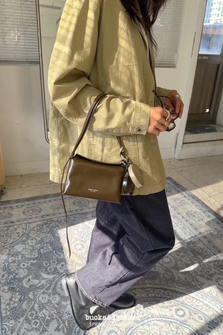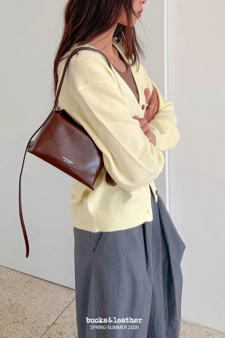 韓國代購 bucks&leather 羊皮磁吸枕頭包 迷你號 大容量包包