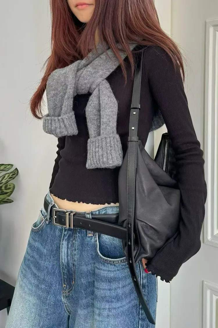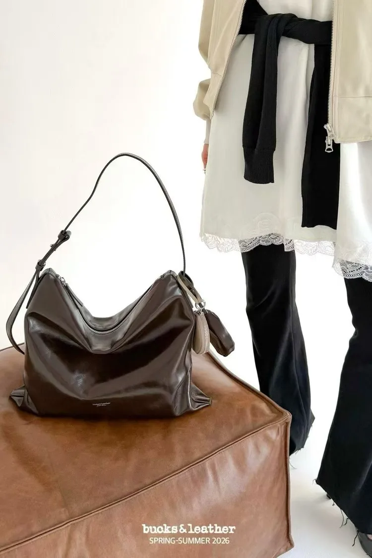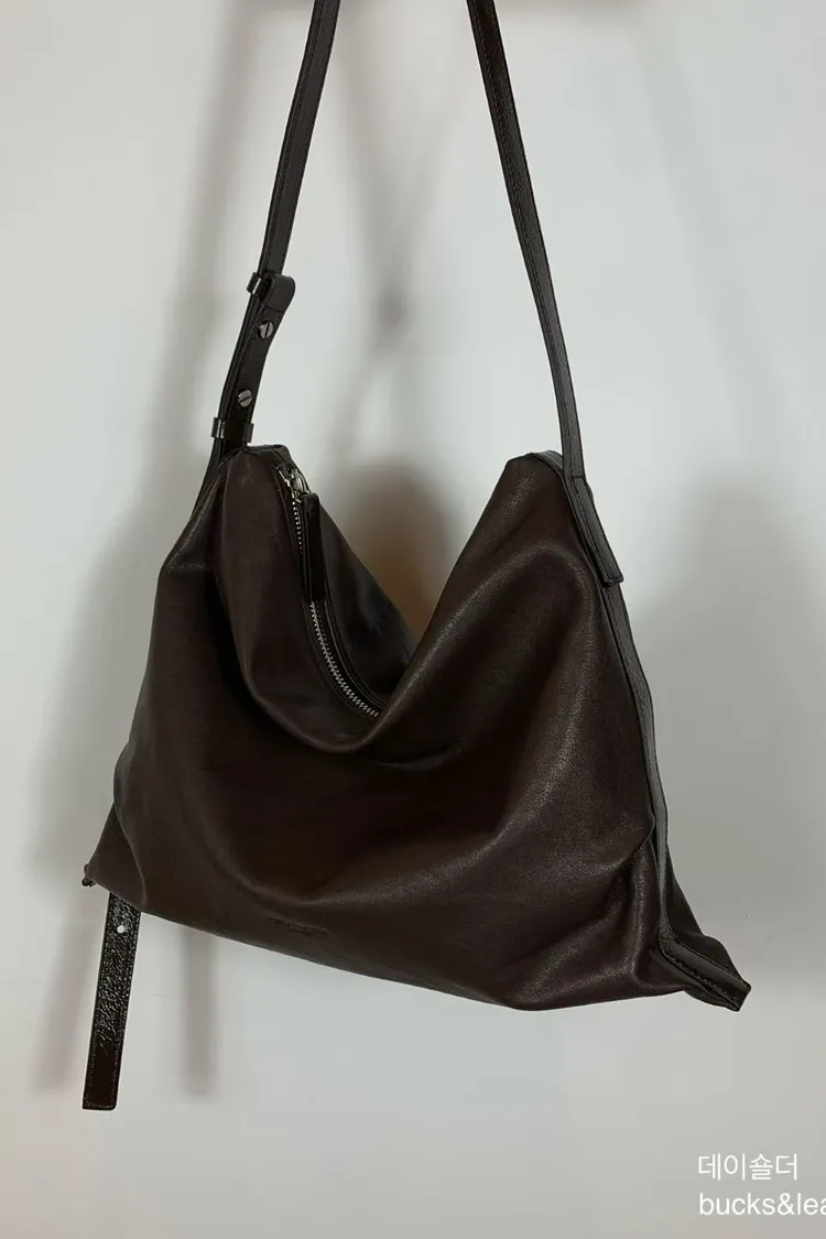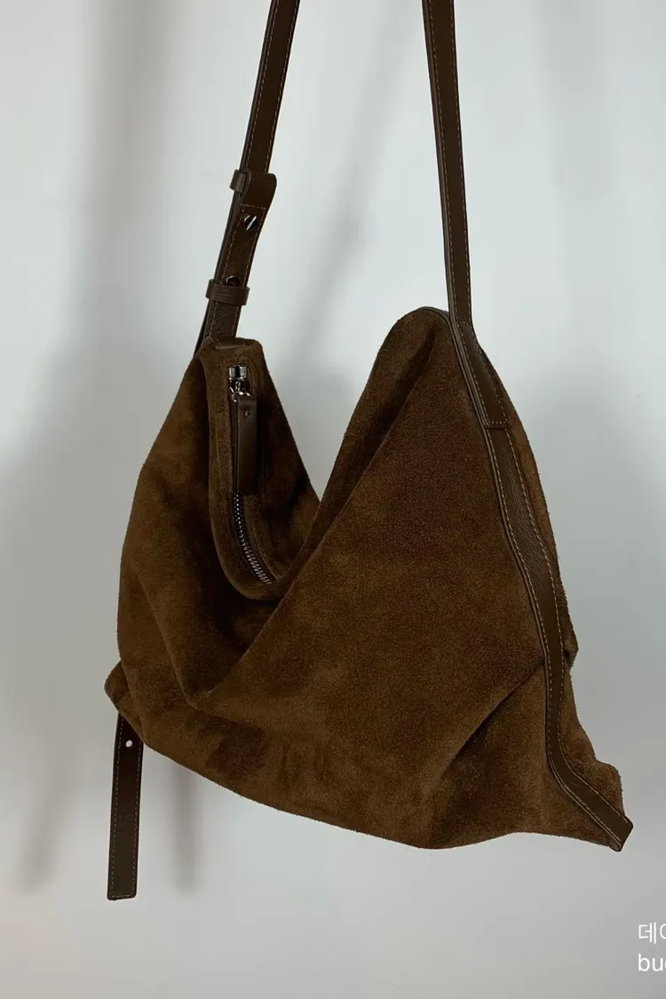 bucks&leather 大號 翻毛山羊皮淺口托特包 牛皮肩背包