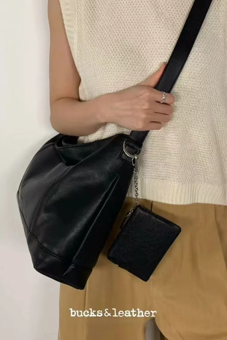 韓國代購 bucks&leather 真皮磁吸枕頭包 大號 大容量包包