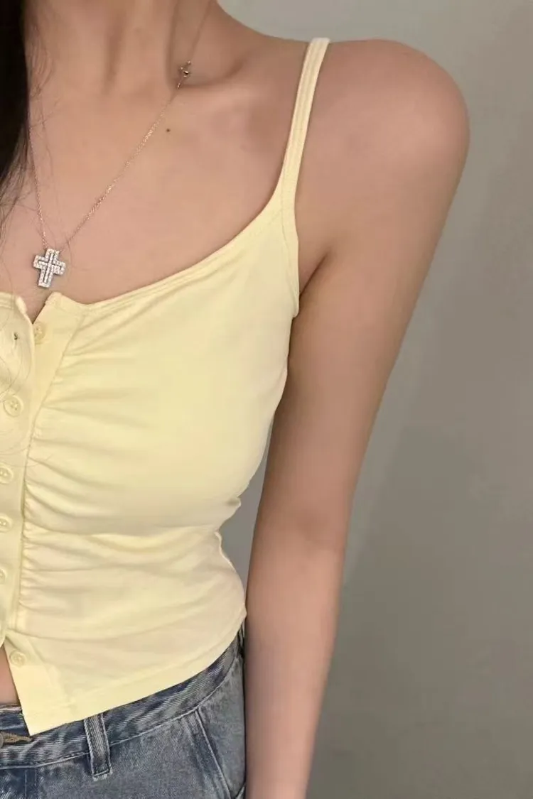 韓國代購 無袖上衣 褶皺背心 Bar top 內含胸墊