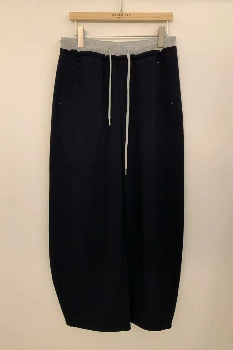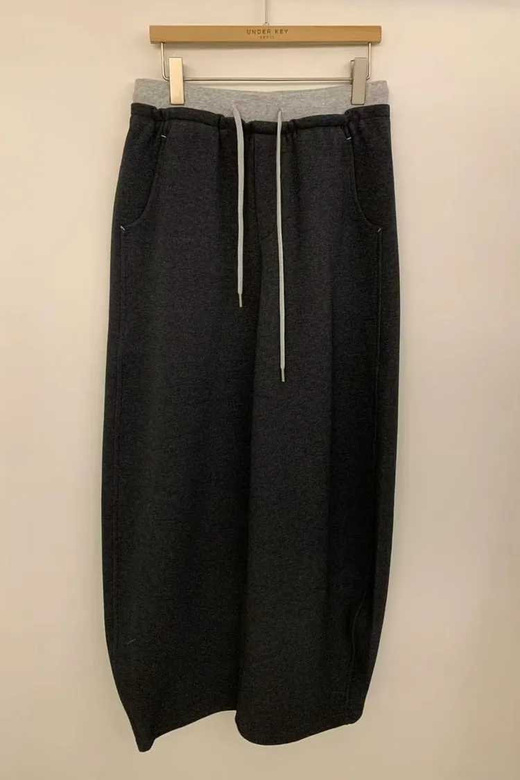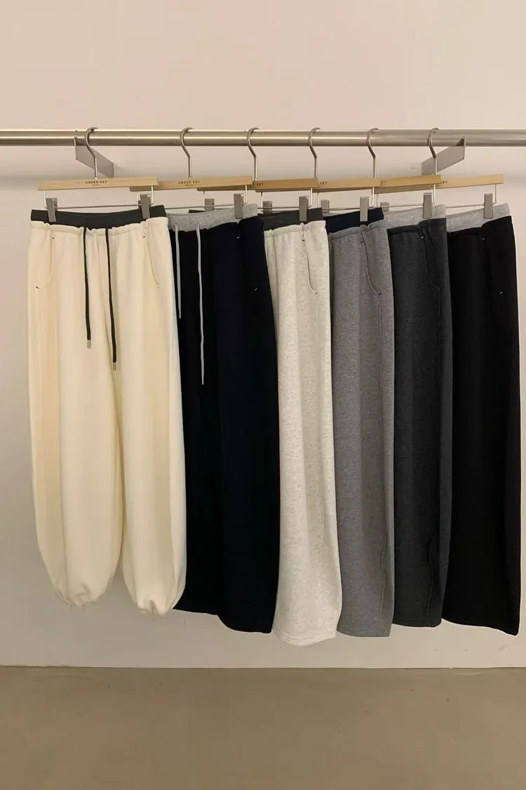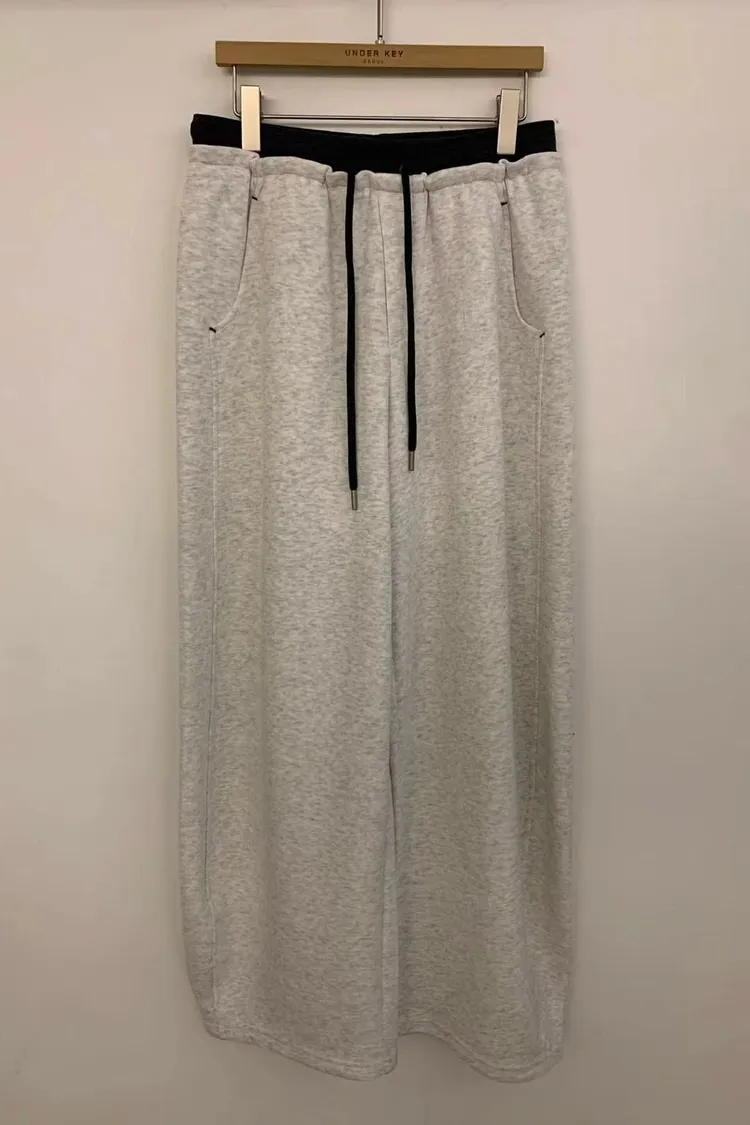 韓國代購 春季新款 鬆緊腰綁帶拼色 休閒長褲
