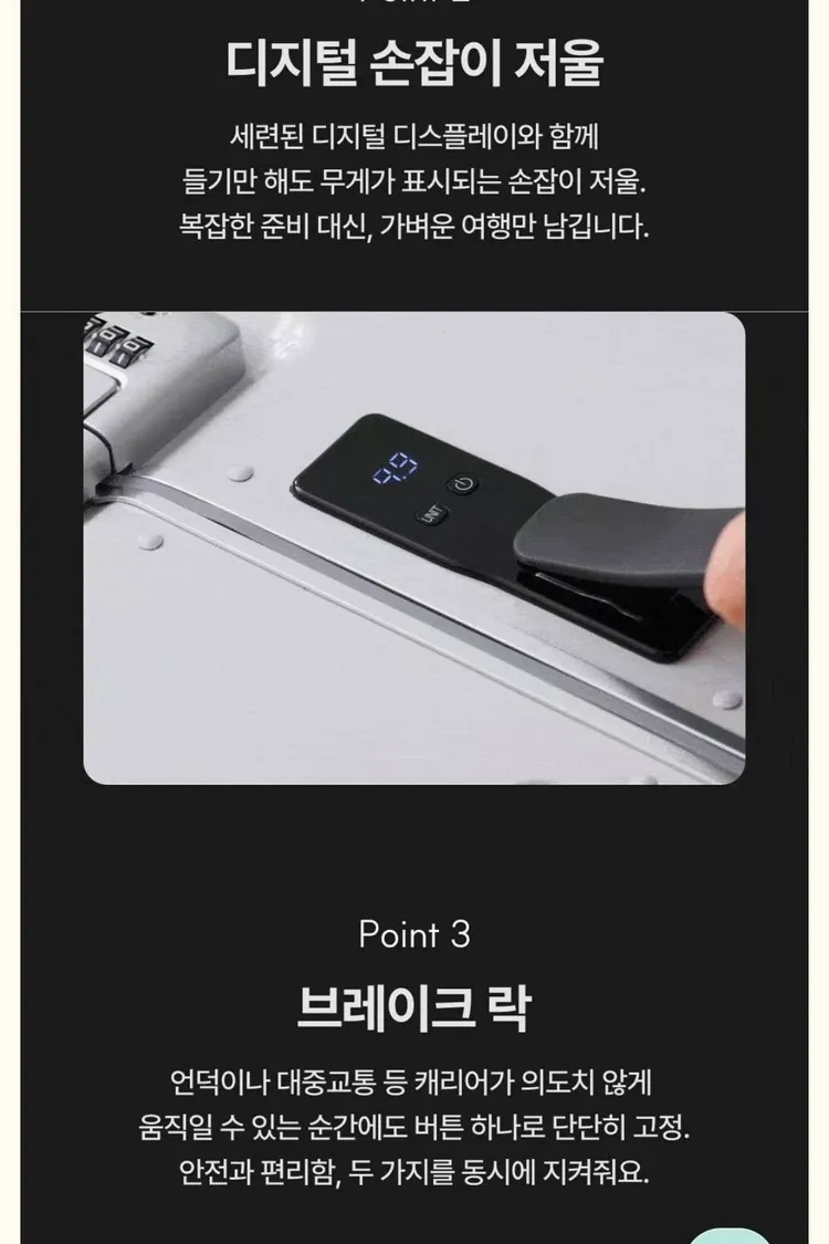 ✔ 智慧重量顯示設計(Digital Weight Display) — 提起行李即可即時顯示重量
