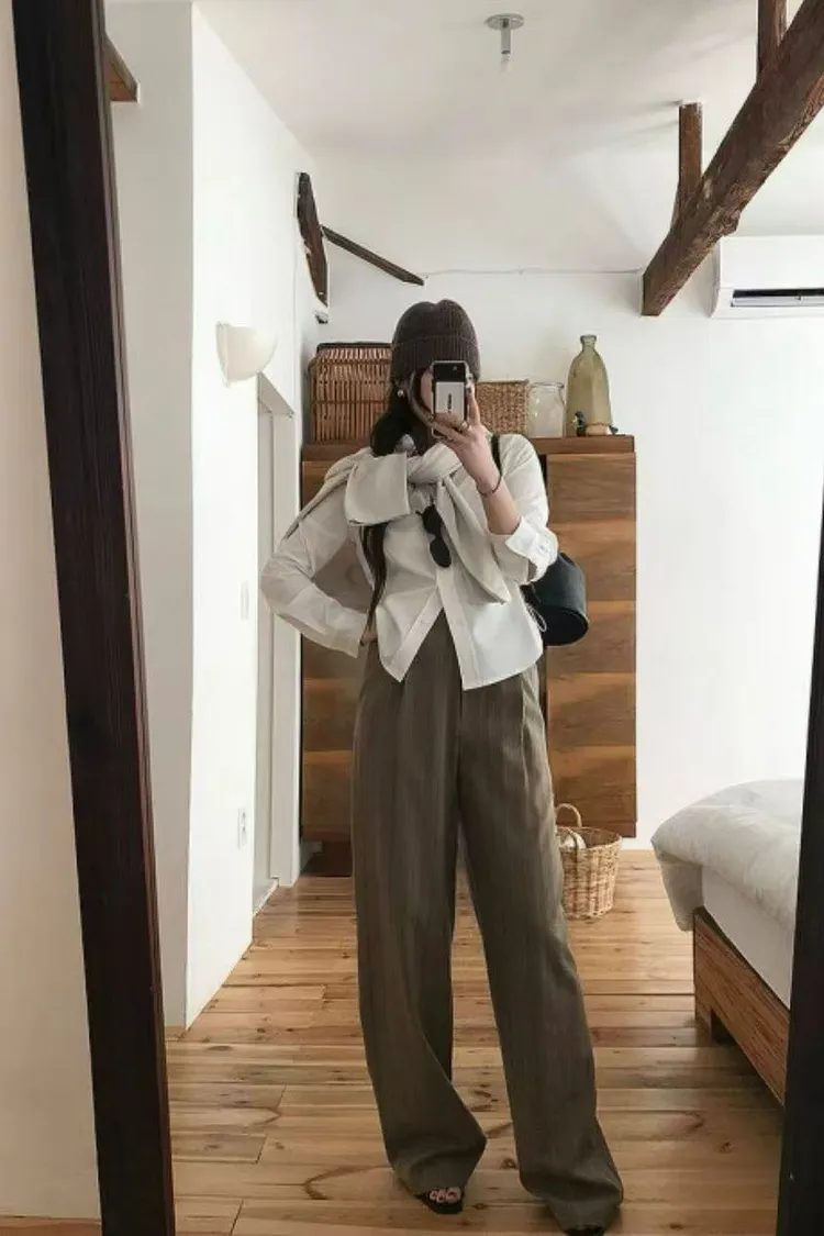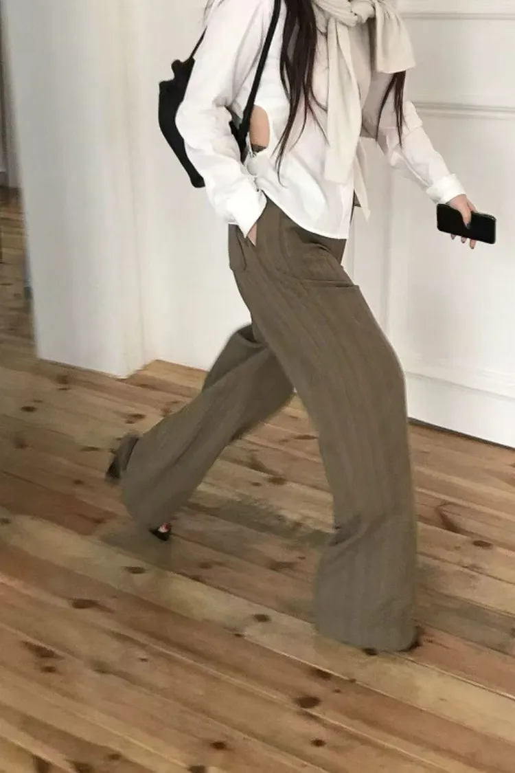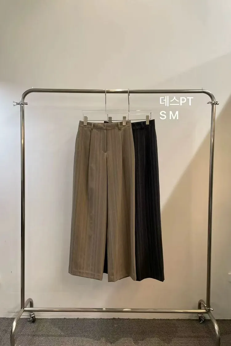 韓國代購 春季新款 復古風 通勤 條紋西裝長褲 休閒長褲