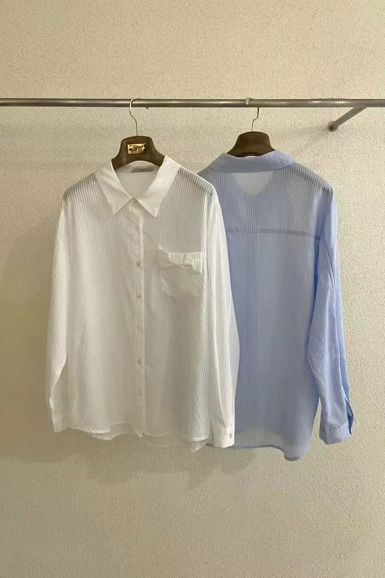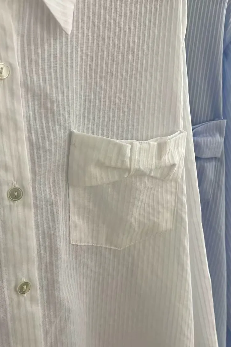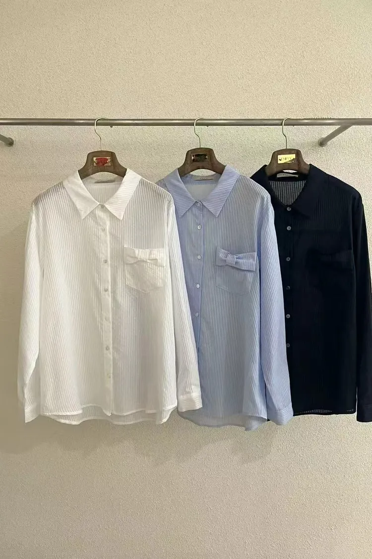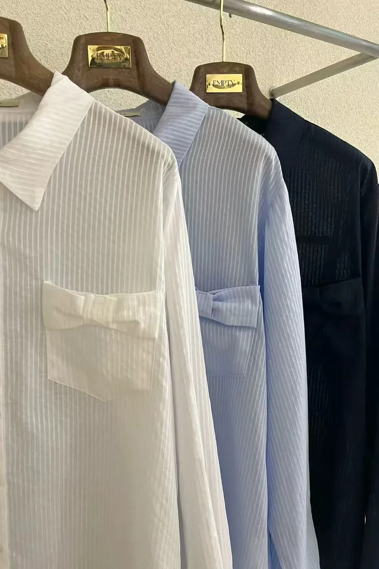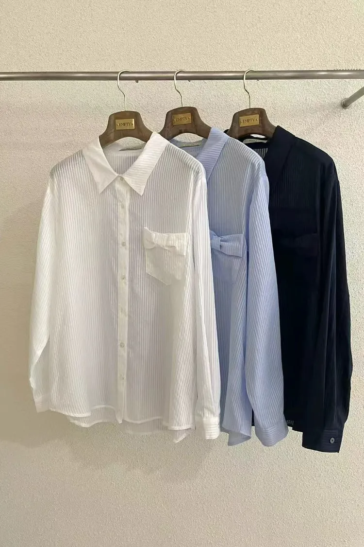 韓國代購 春季新款 蝴蝶結口袋襯衫上衣 休閒襯衫