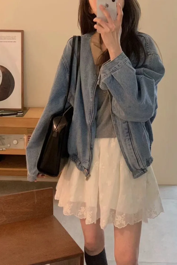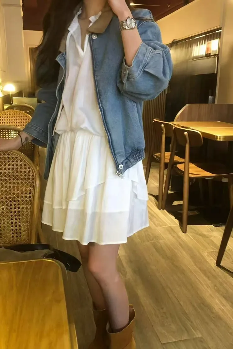 韓國代購 設計師品牌 復古拼接領牛仔外套 拉鍊夾克外套