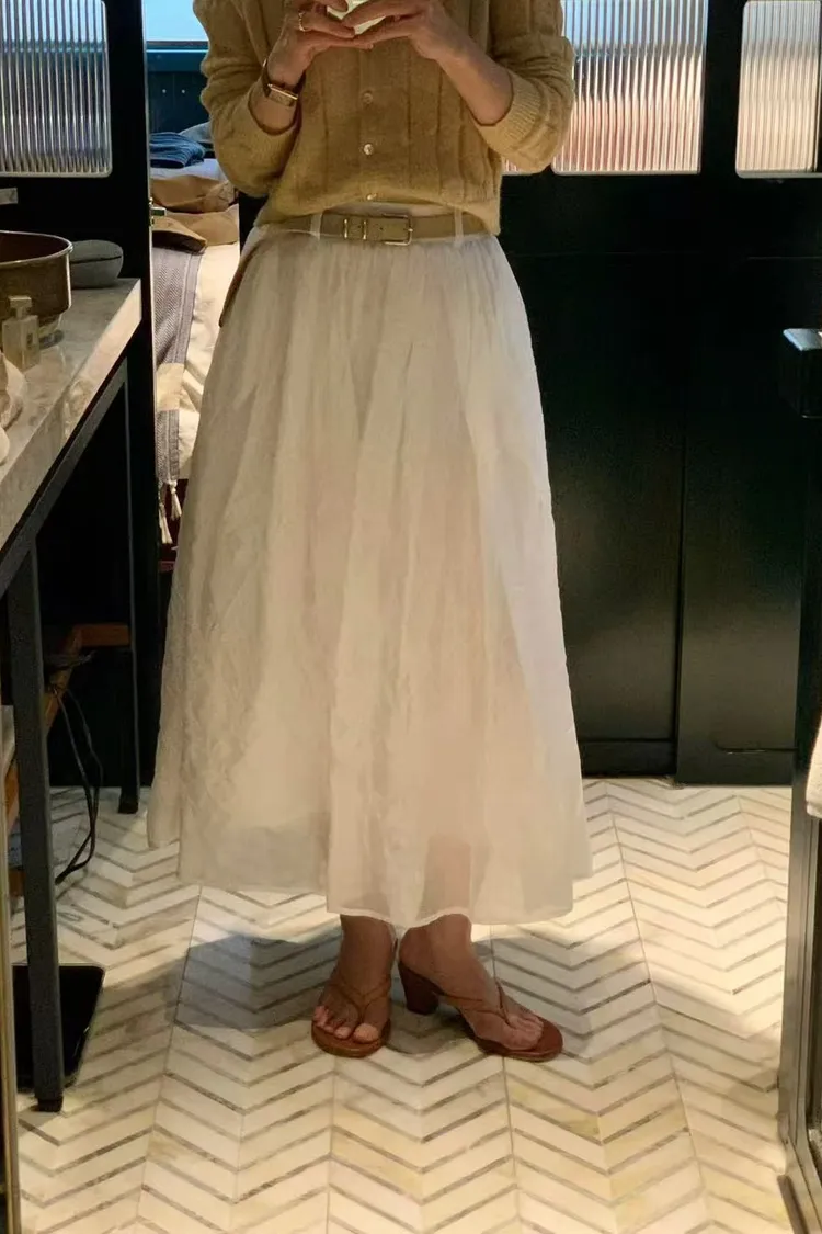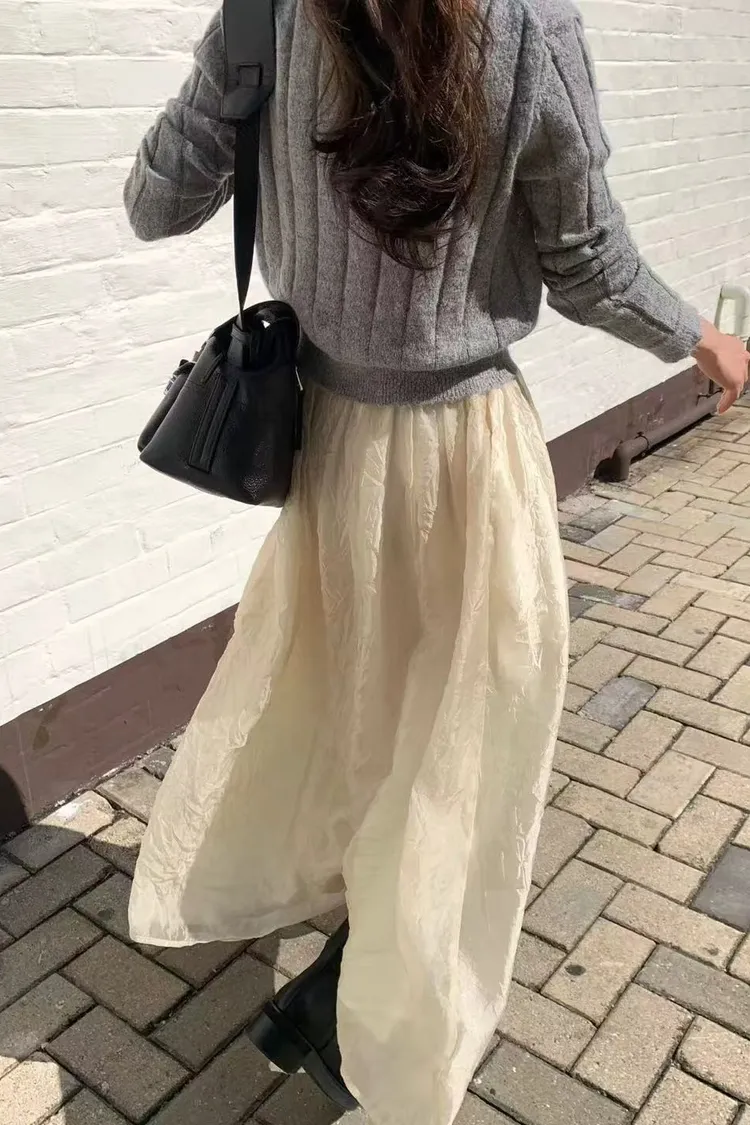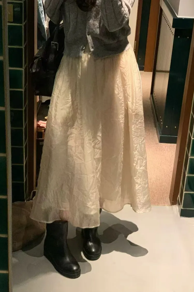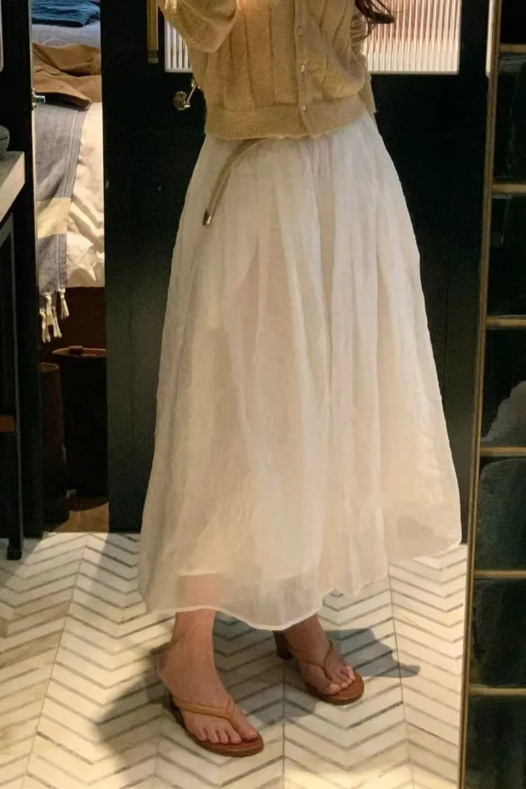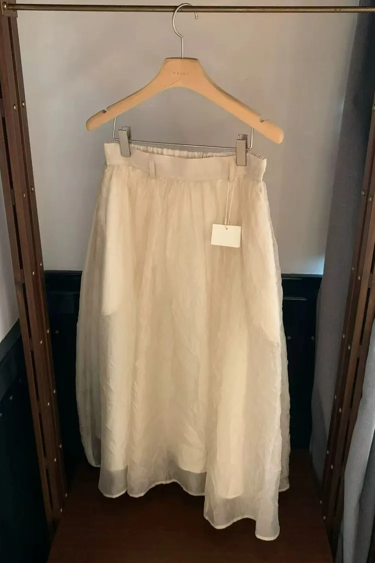 韓國代購 設計師品牌 氣質鬆緊腰長裙 空氣感蓬裙