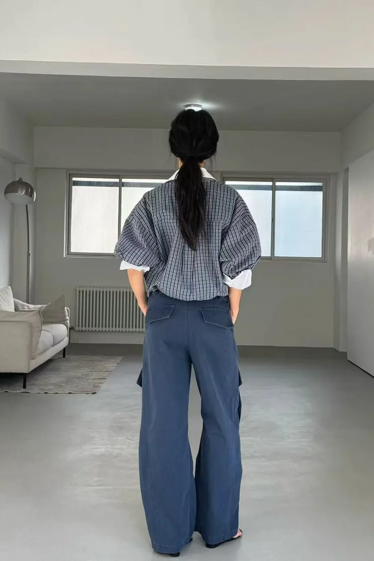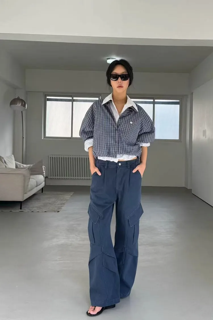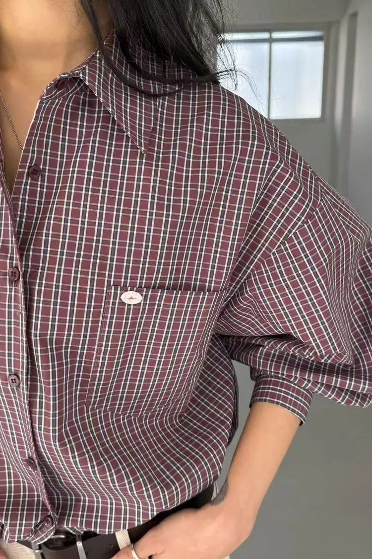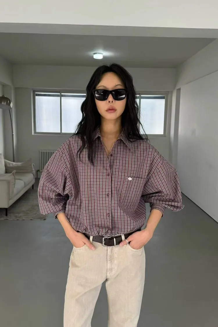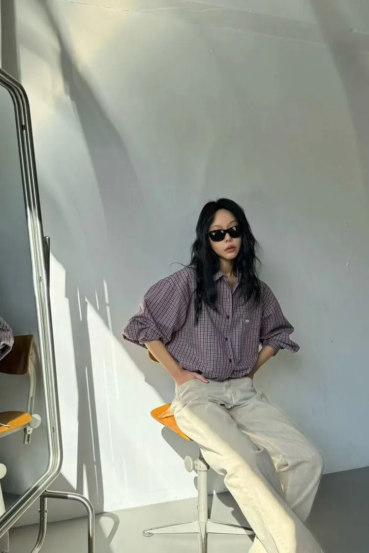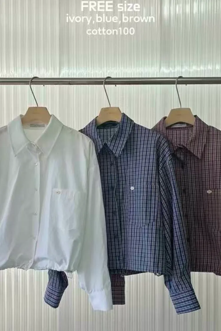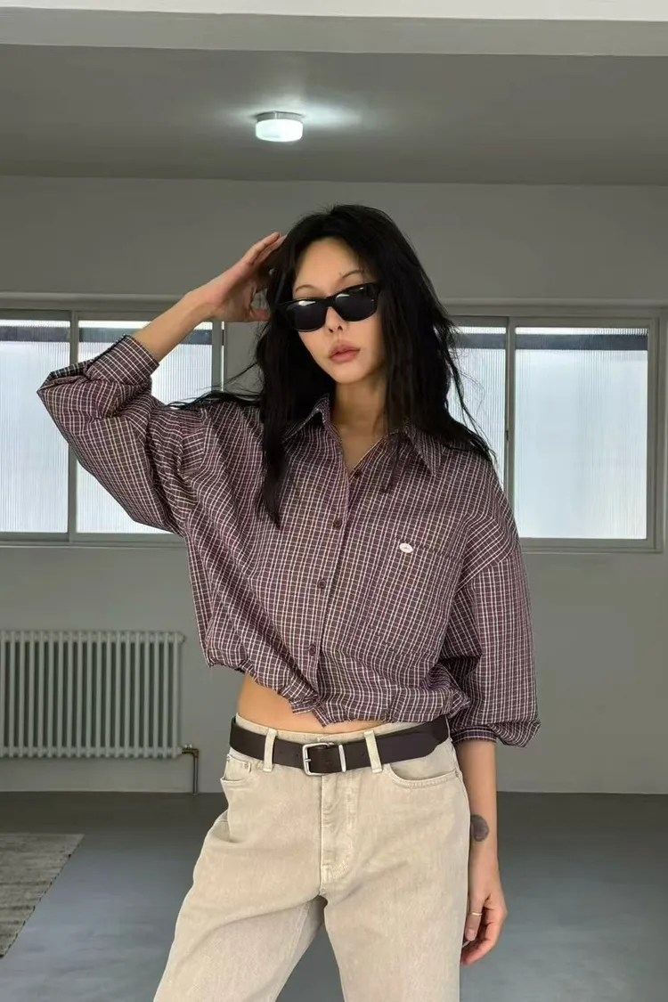 韓國代購 早春短版襯衫 復古風格子襯衫上衣