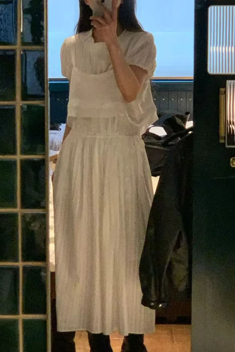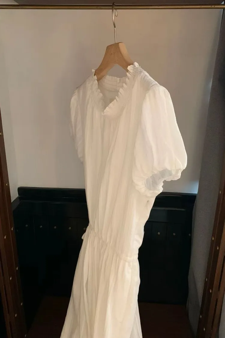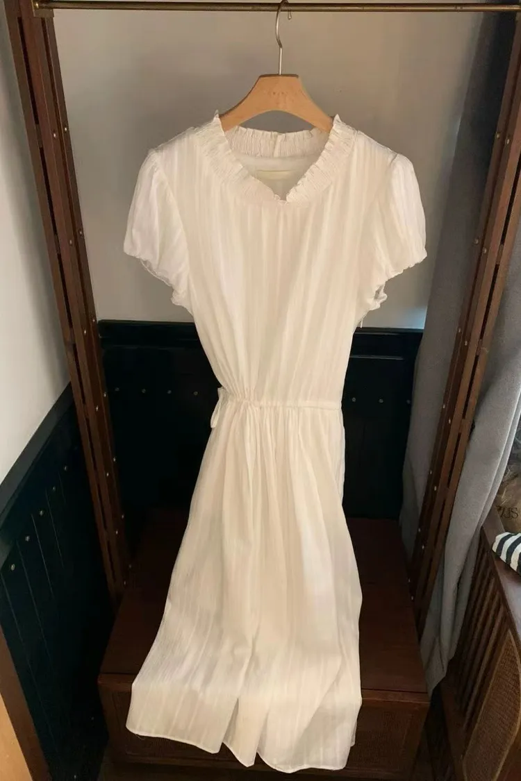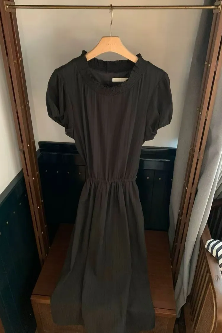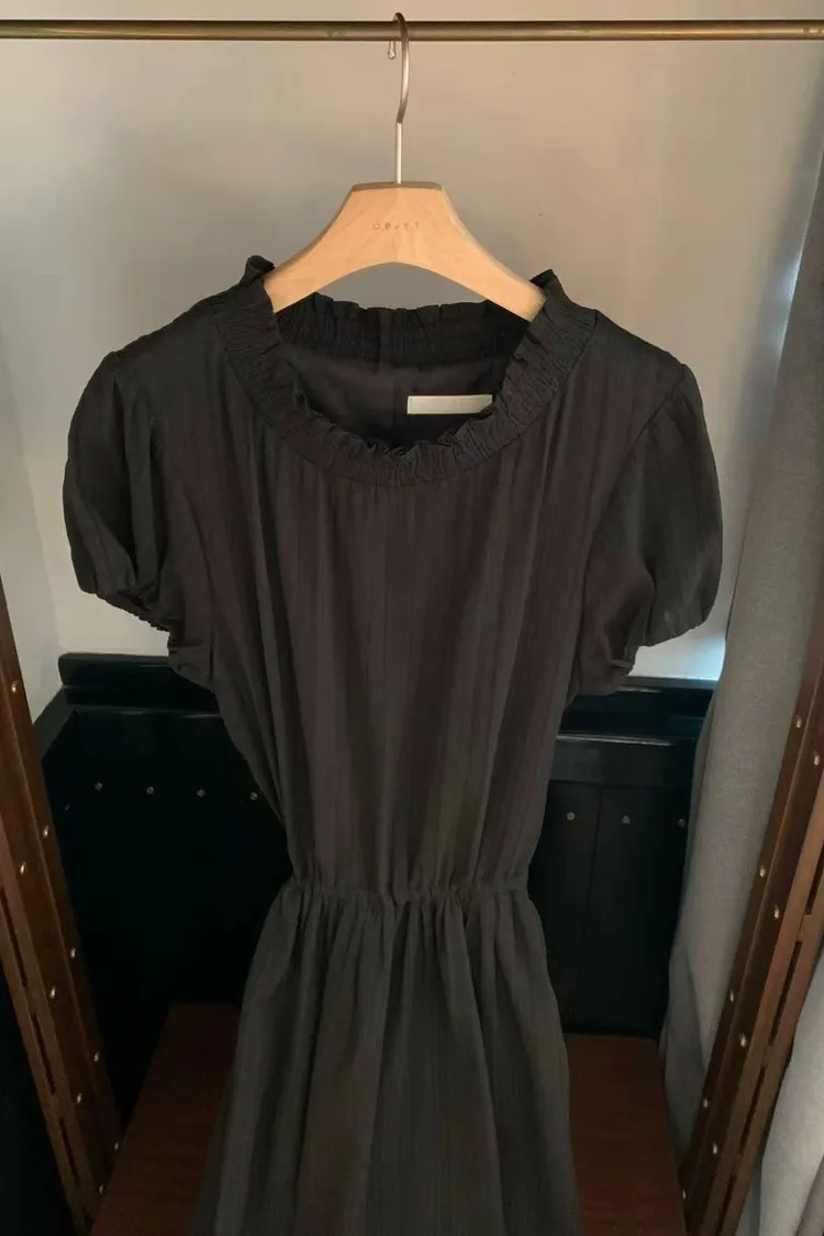 韓國代購 設計師品牌 氣質木耳邊收腰顯瘦長洋裝 連衣裙