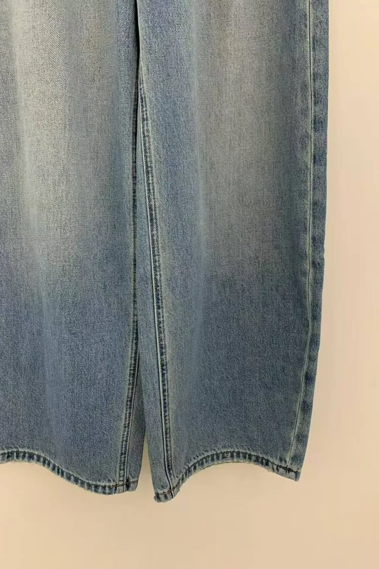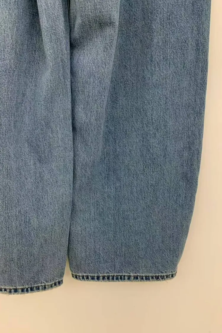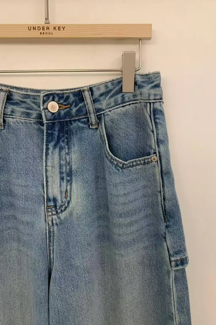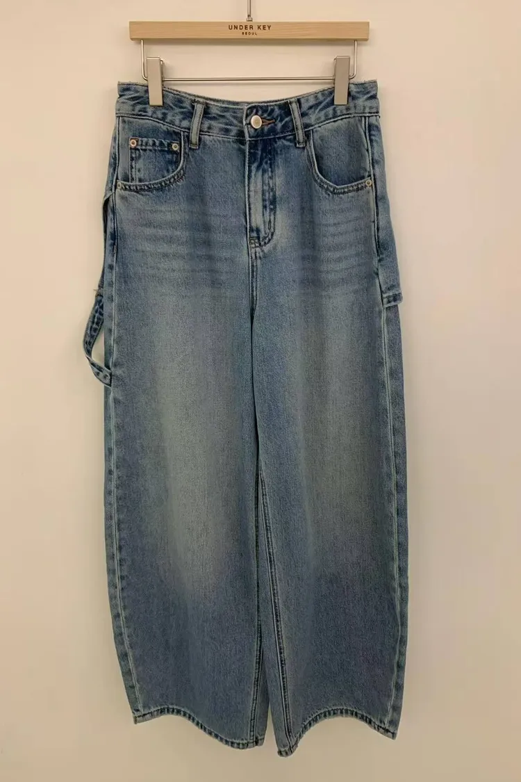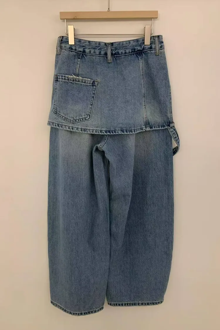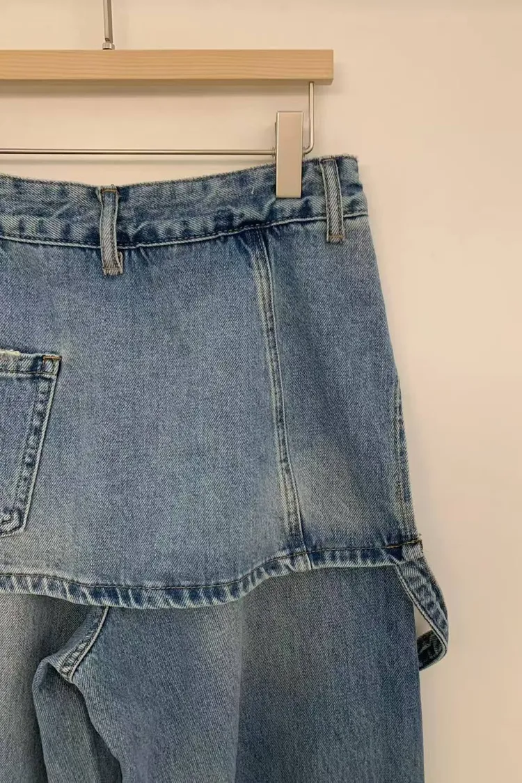 韓國連線款 牛仔雙層設計 個性 飄帶休閒牛仔長褲