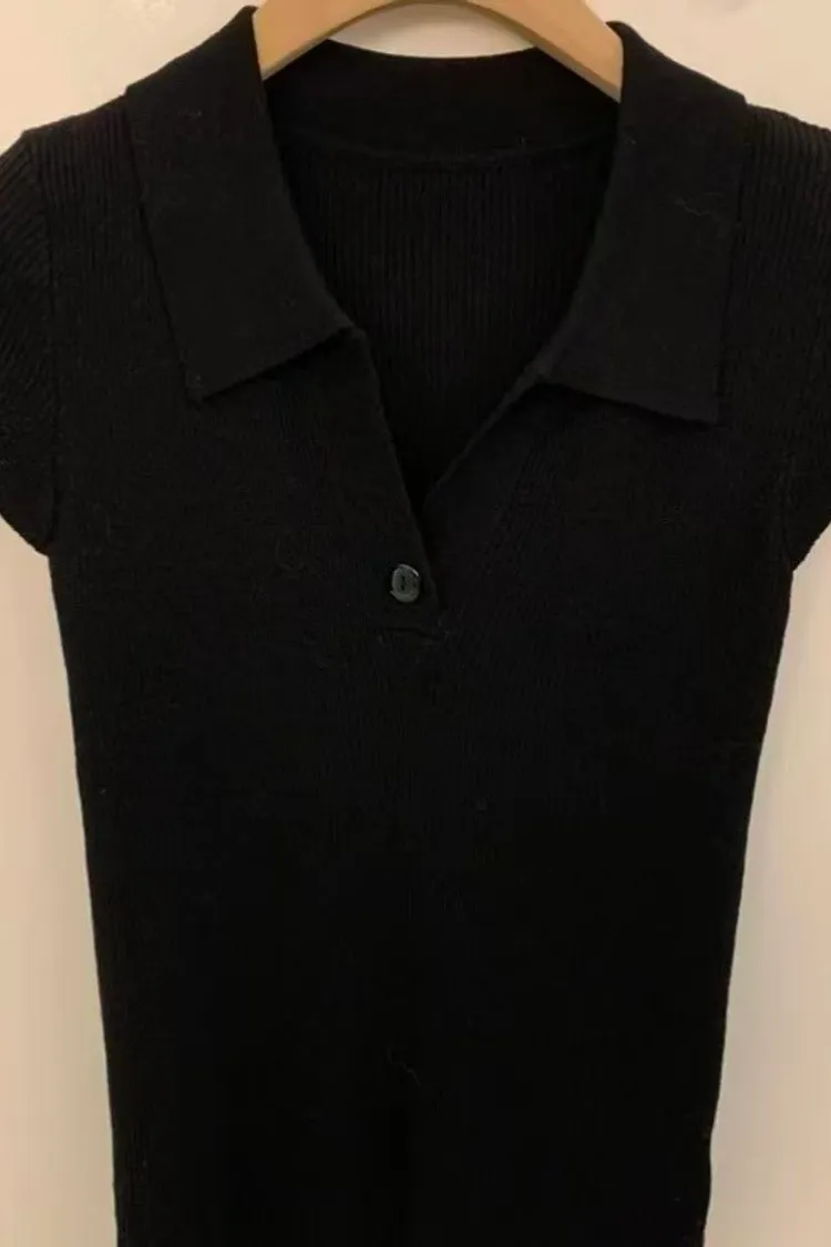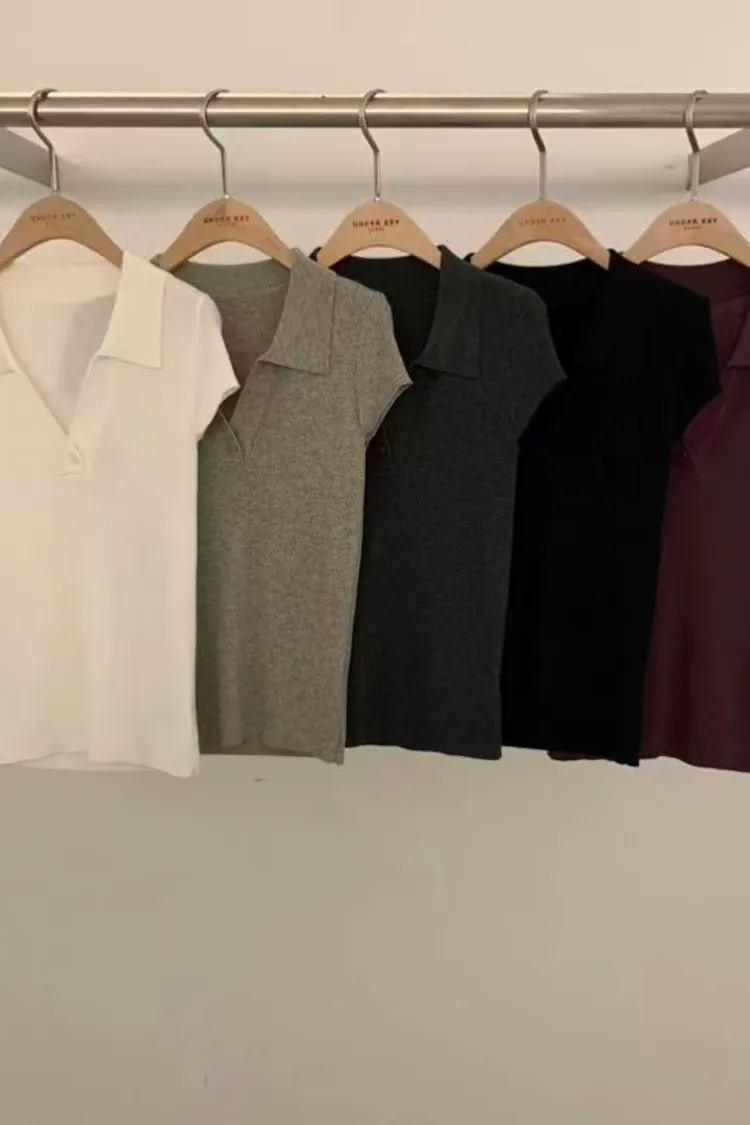 韓國連線款 春新新款 翻領修身針織上衣