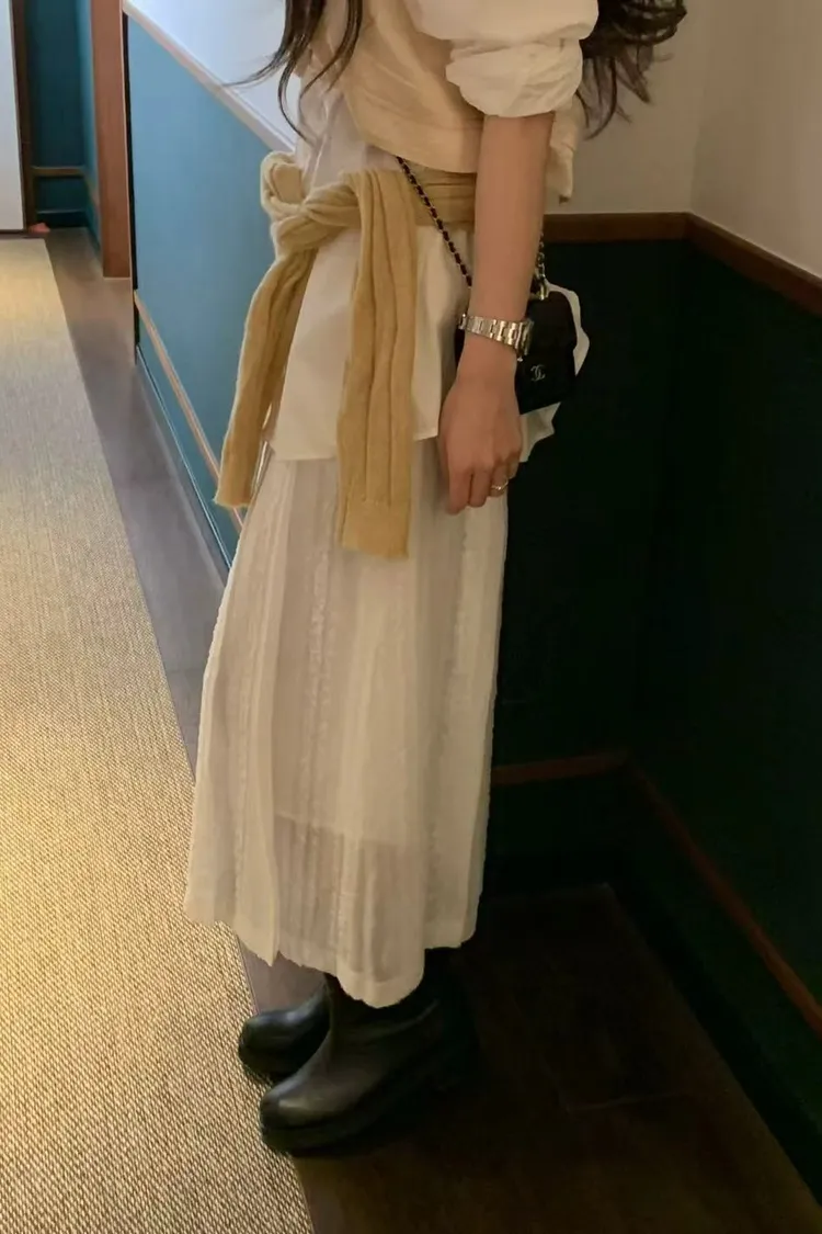 韓國連線款 春季新款 氣質長裙 百褶半身裙