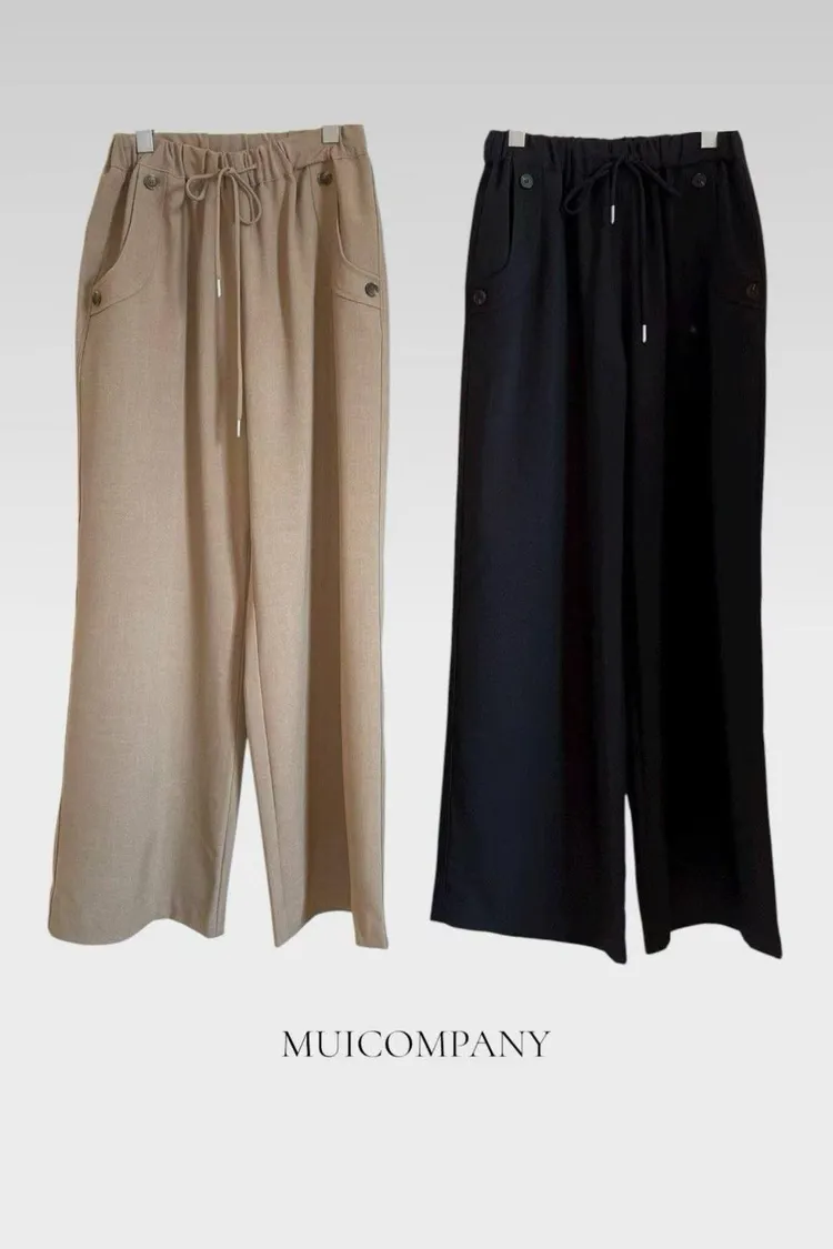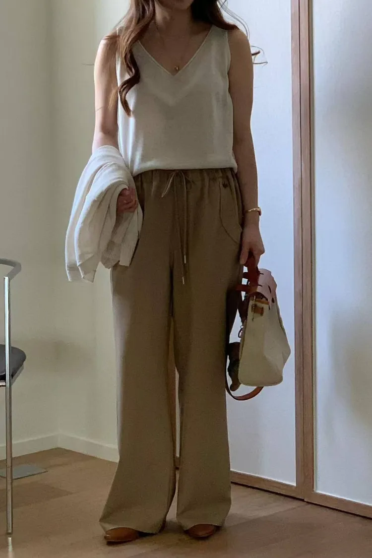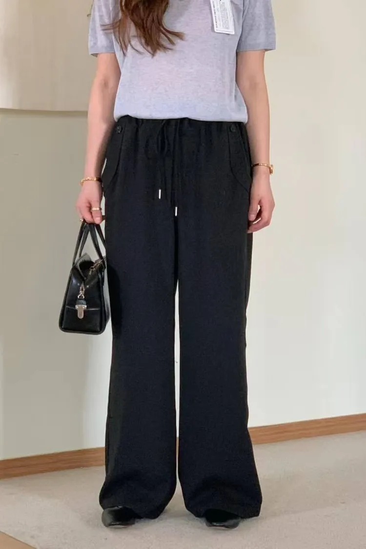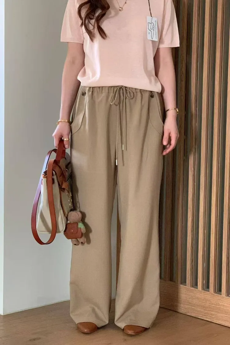 韓國代購 mui 超好穿 彈力 直筒顯瘦 鬆緊腰綁帶休閒長褲