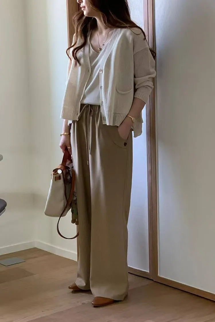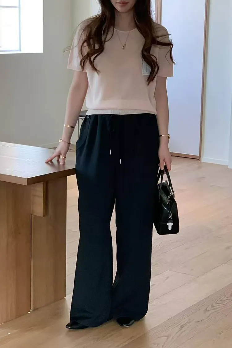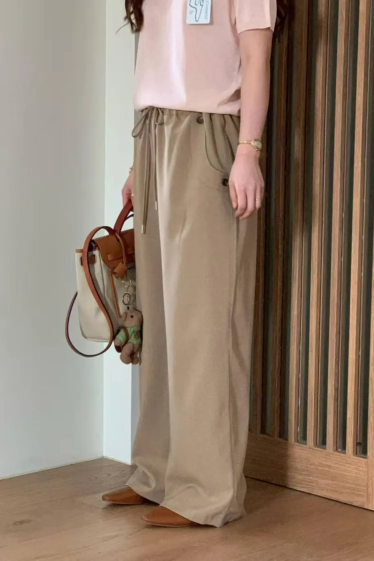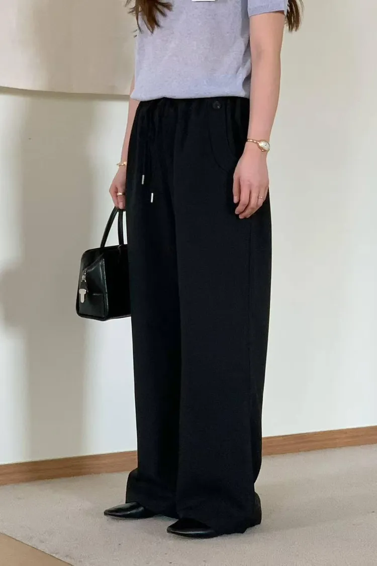 韓國代購 mui 超好穿 彈力 直筒顯瘦 鬆緊腰綁帶休閒長褲