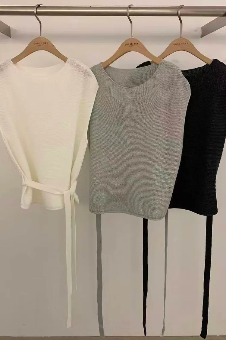 韓國連線款 時尚含腰帶針織背心 背心上衣