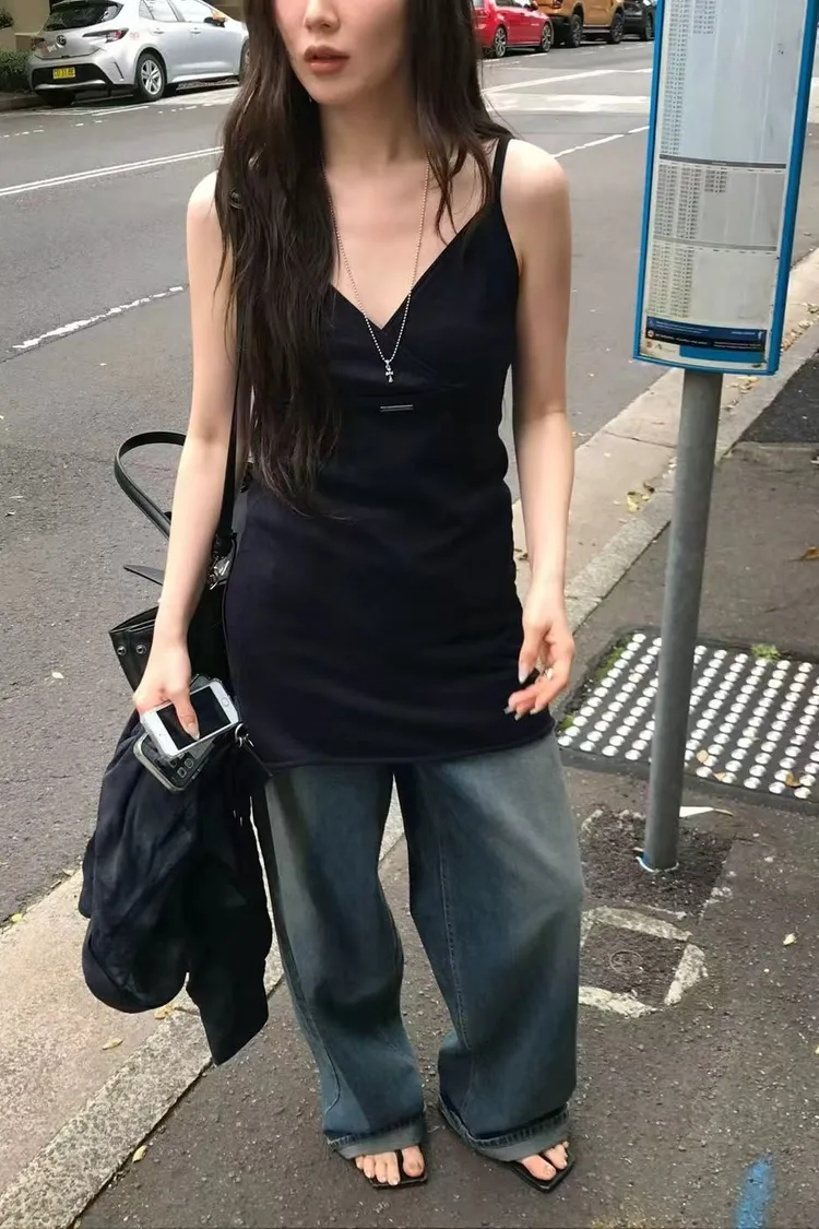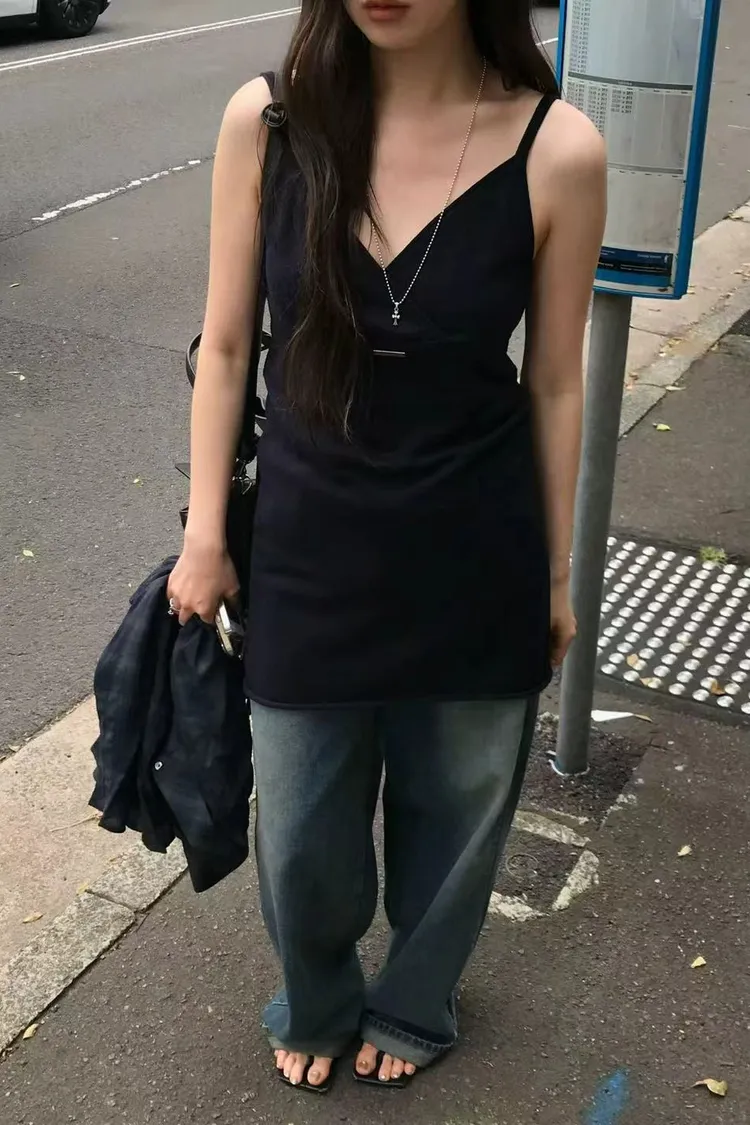 韓國連線款 V領針織短洋裝 細肩帶連身裙