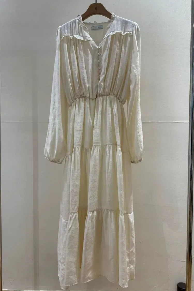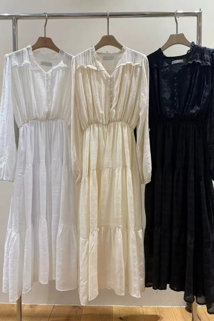 韓國連線款 春季新款 氣質v領長洋裝 連身裙