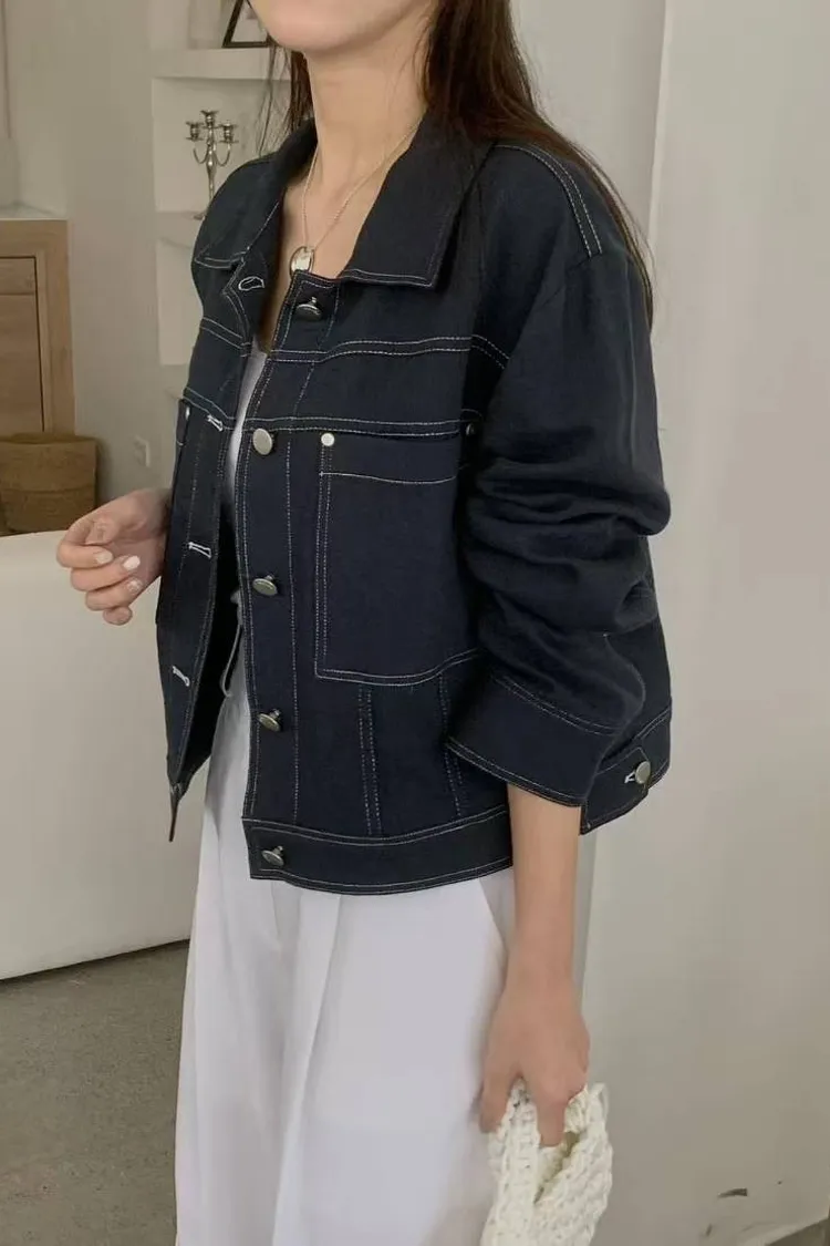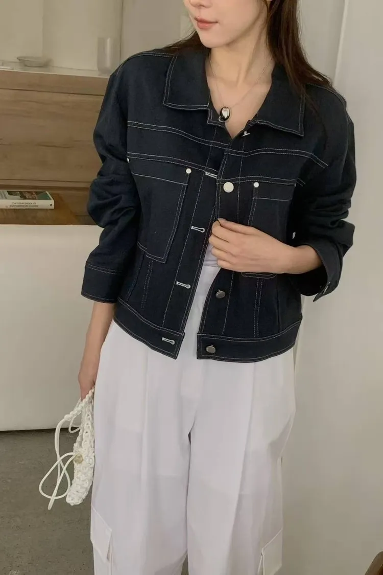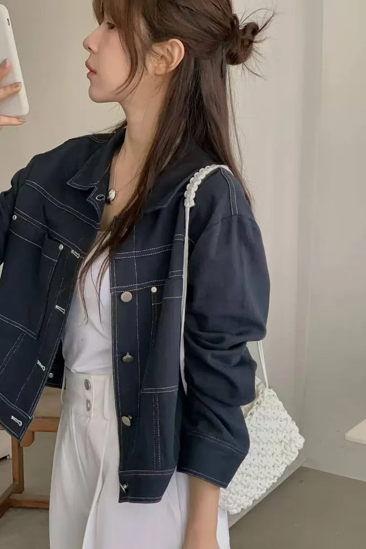 韓國代購 春季新款 氣質排釦翻領外套 線條設計外套