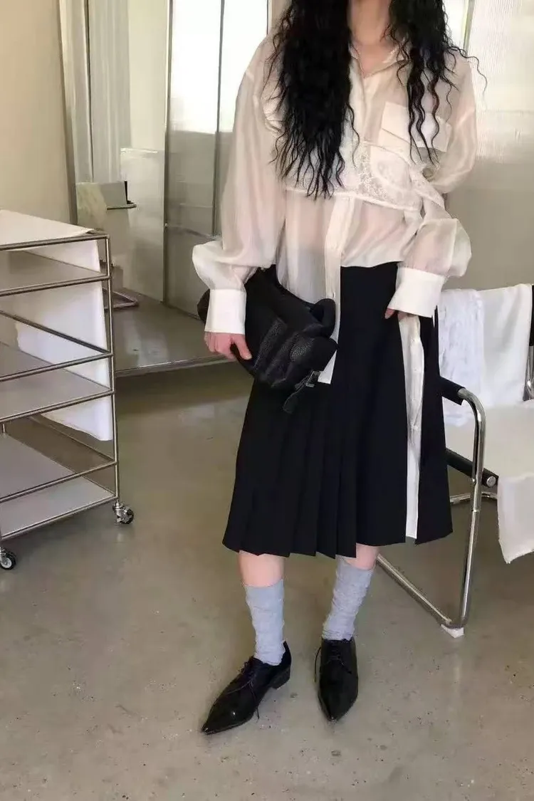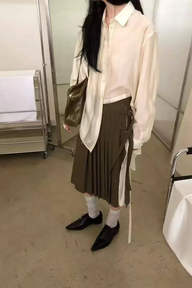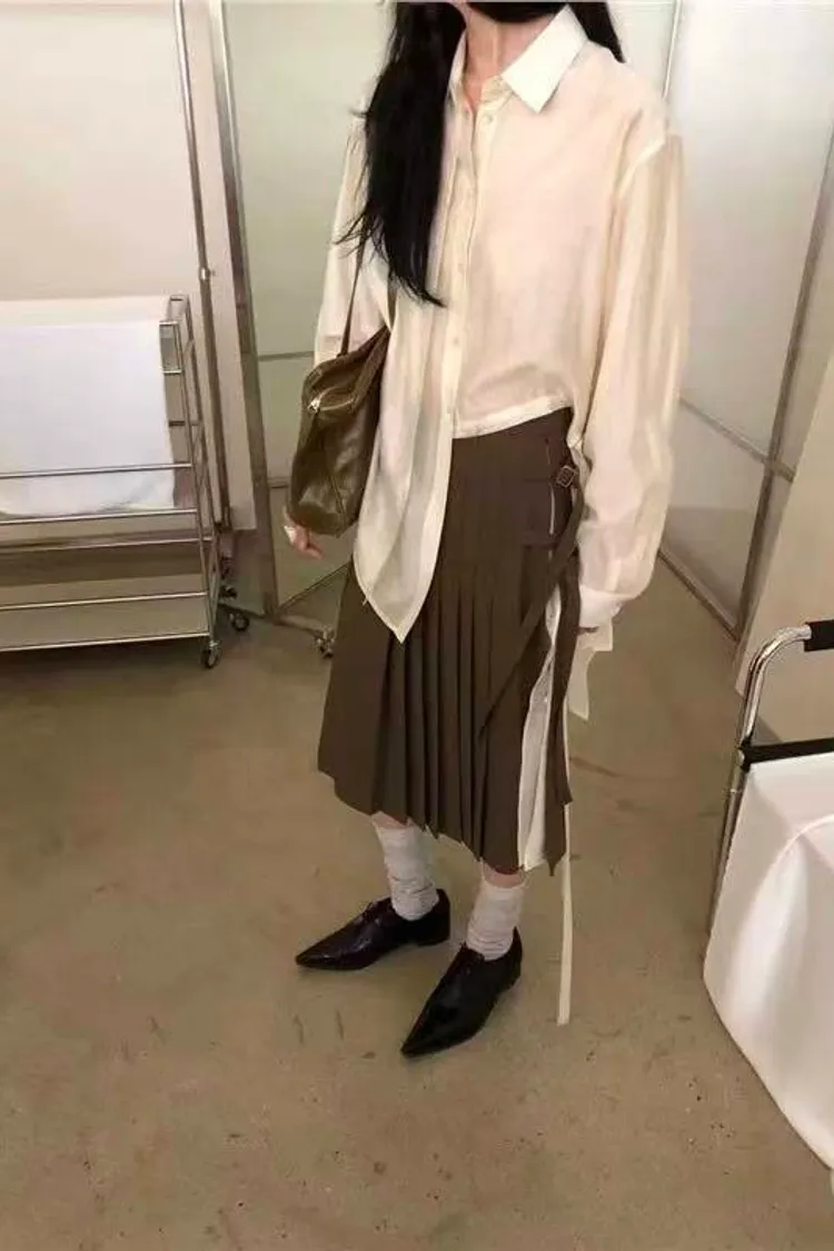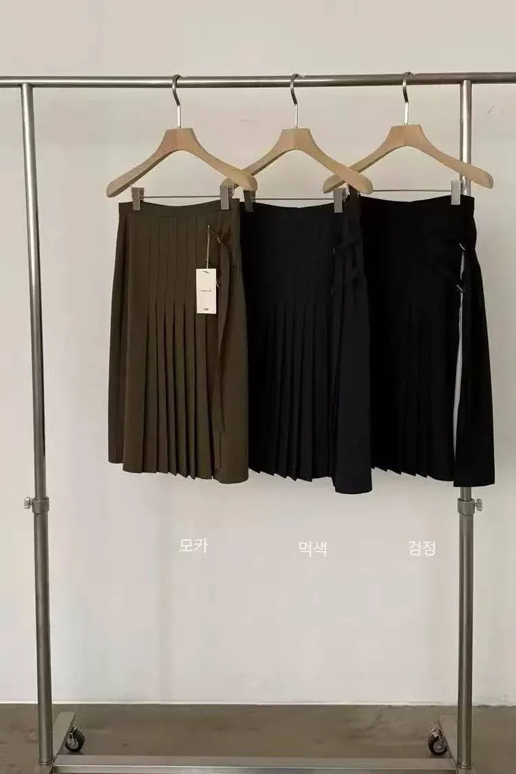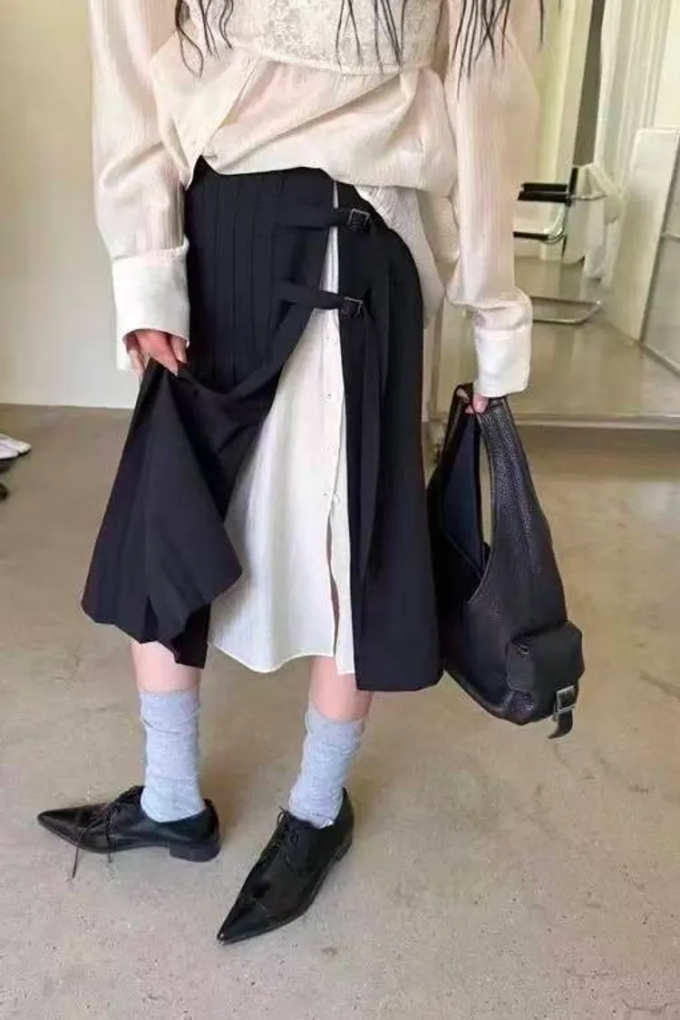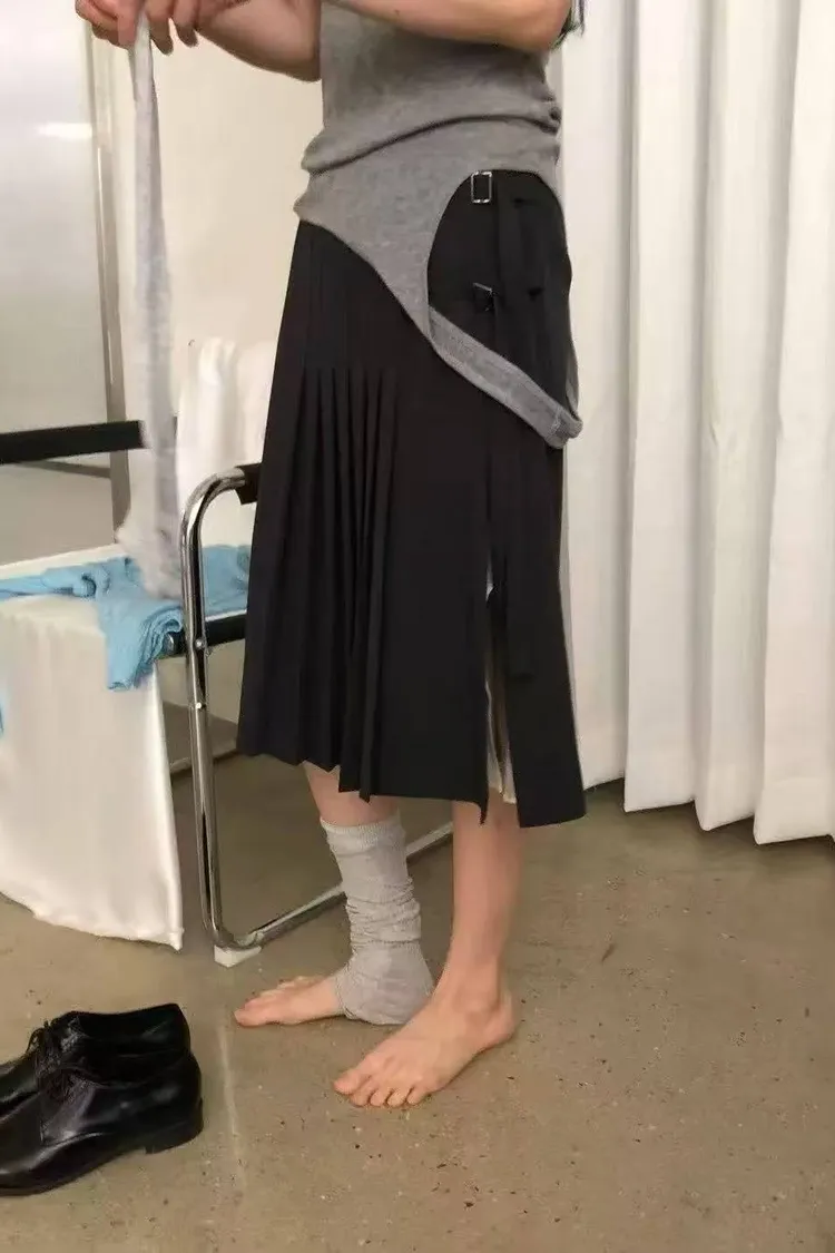 韓國代購 春季新款 側開叉系帶百褶半身裙 短裙