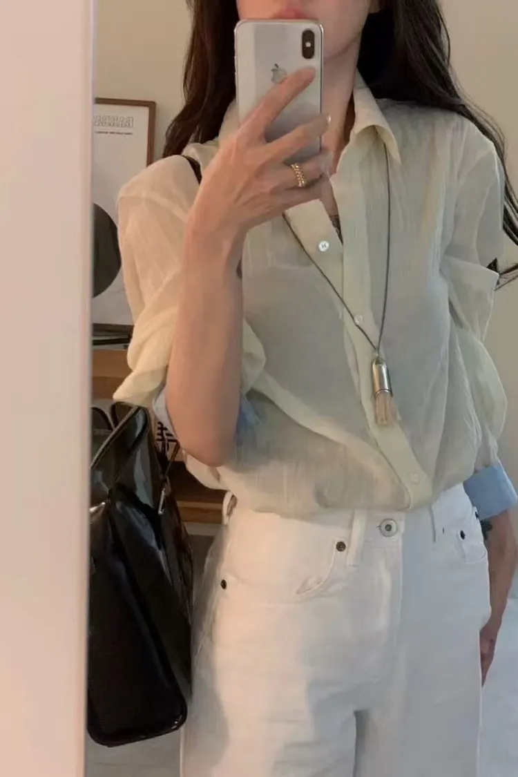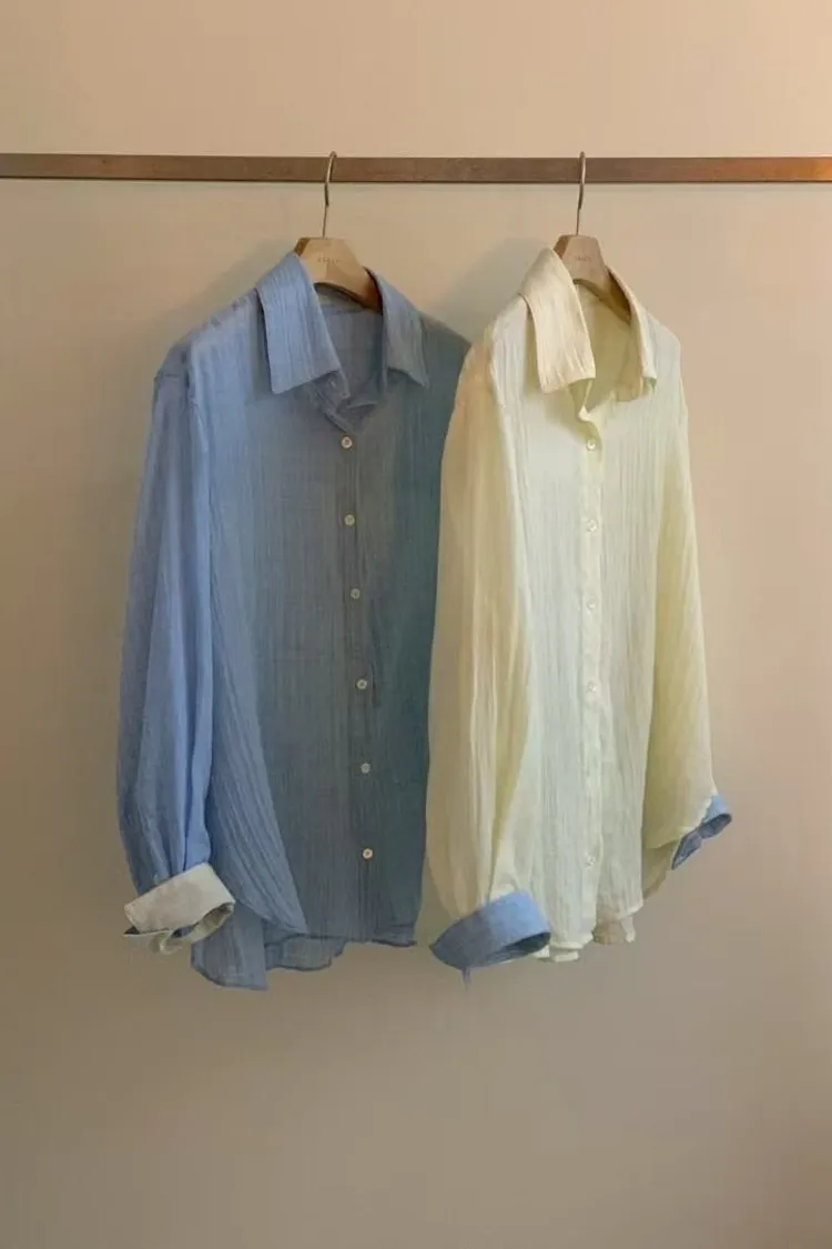天絲撞色襯衫 輕薄透氣襯衫 休閒穿搭 韓國連線推薦款 高級設計師款