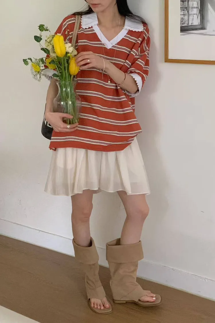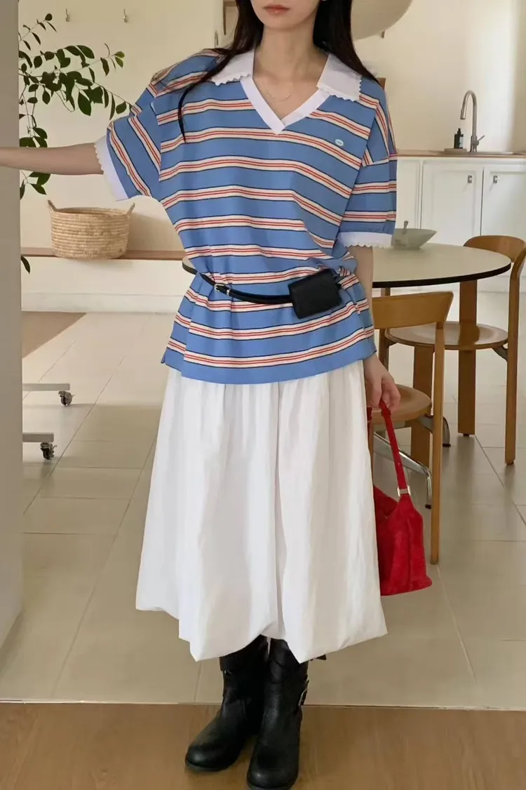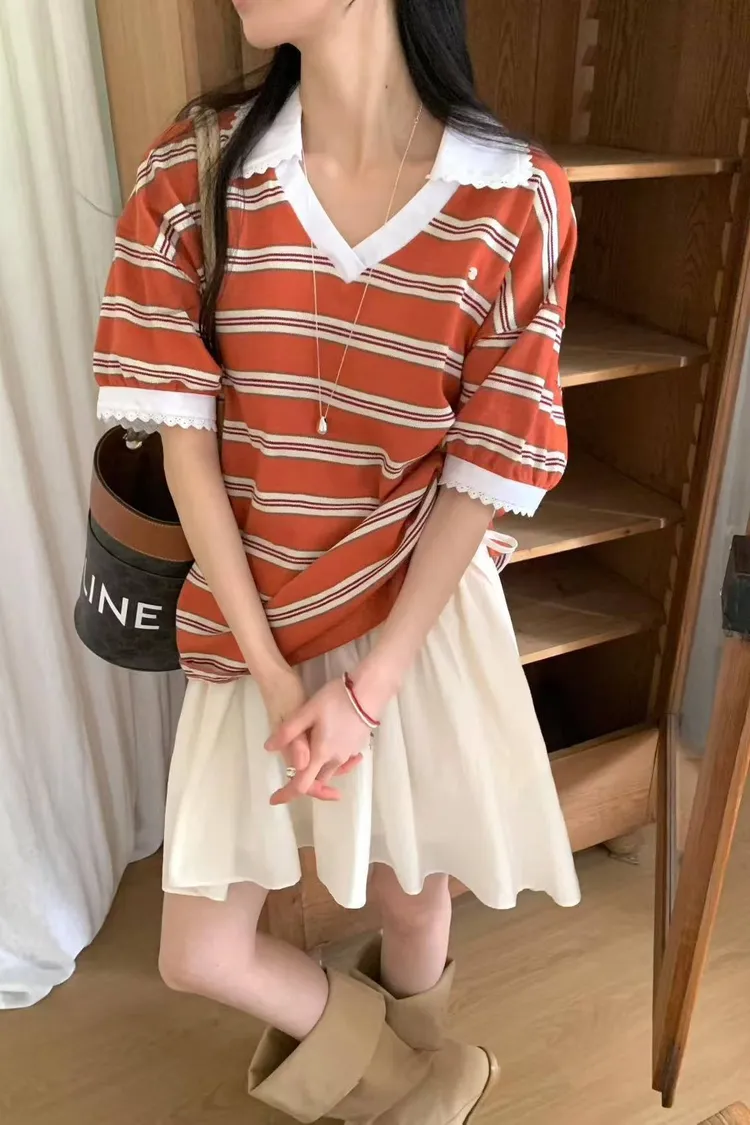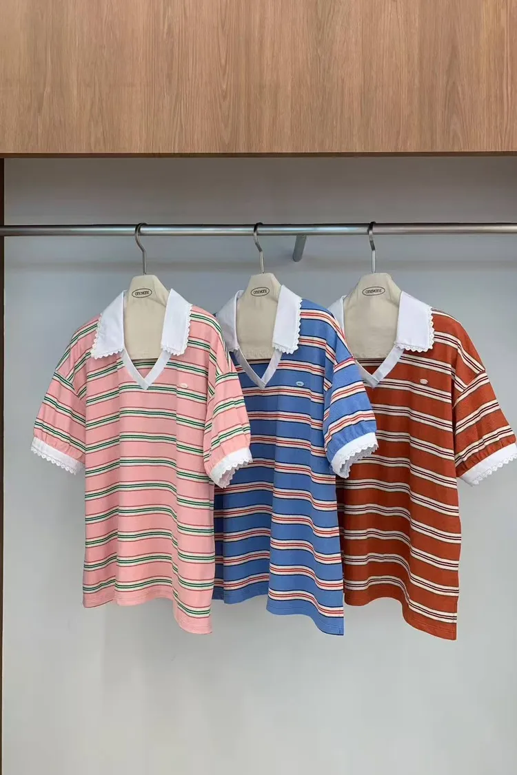 韓國代購 ONE MONE 翻領條紋短上衣上衣 POLE上衣
