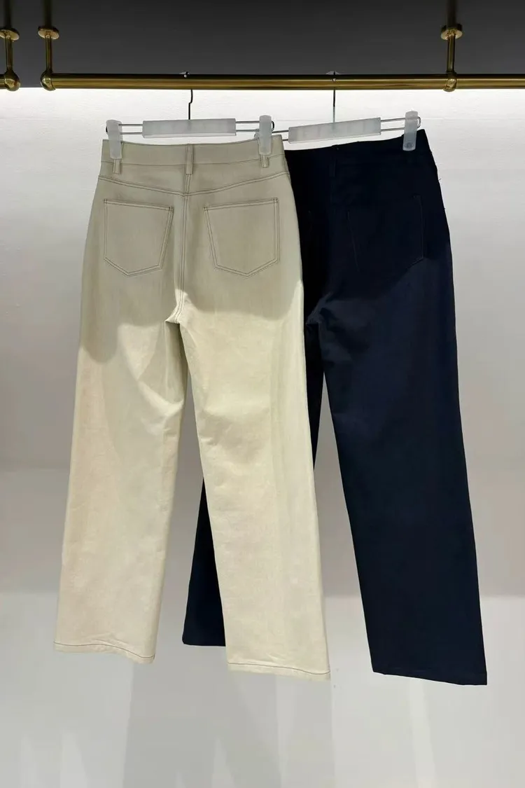 正韓女裝 春夏新品 高腰直筒長褲女 顯瘦百搭休閒褲
