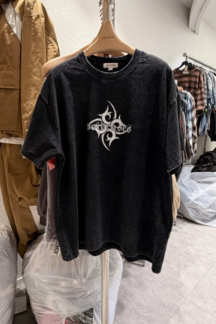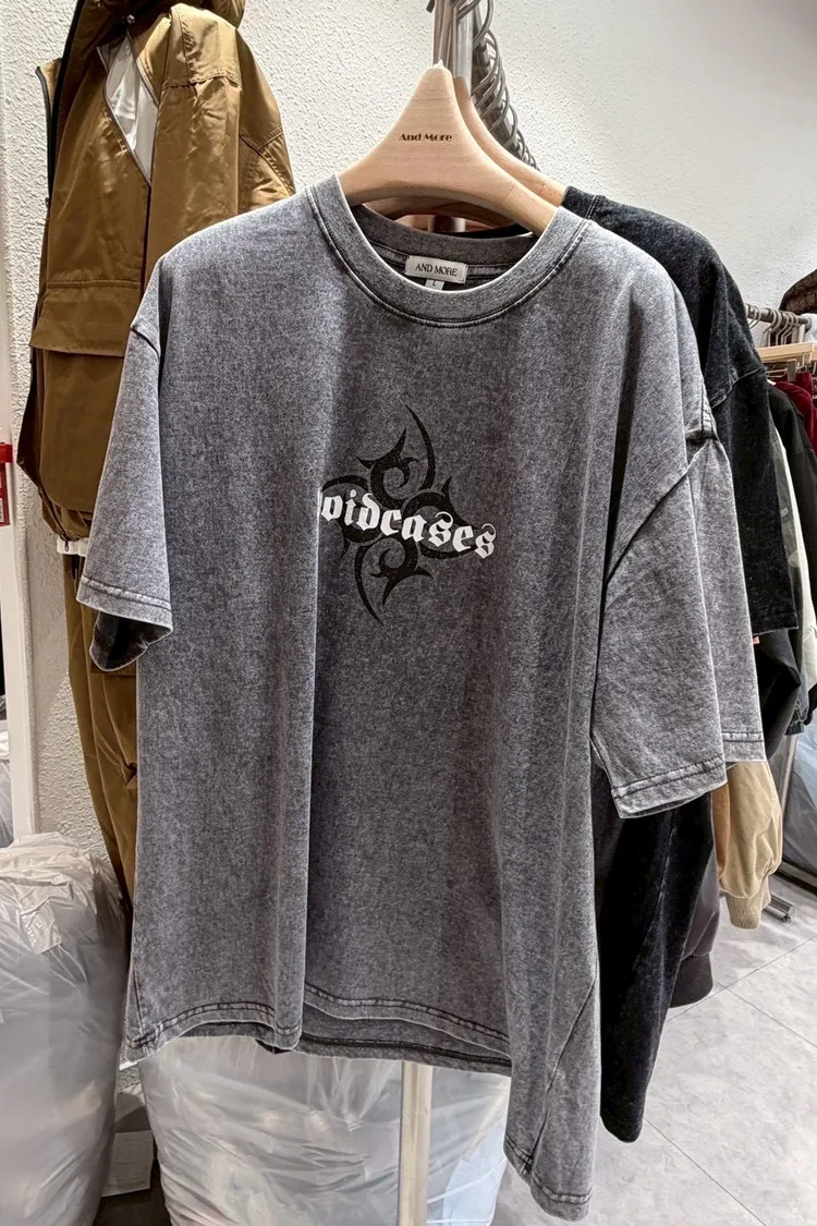 韓國連線 工業風水洗印花TEE 復古刷色印花T恤