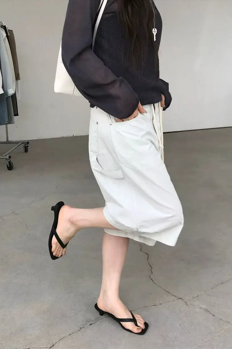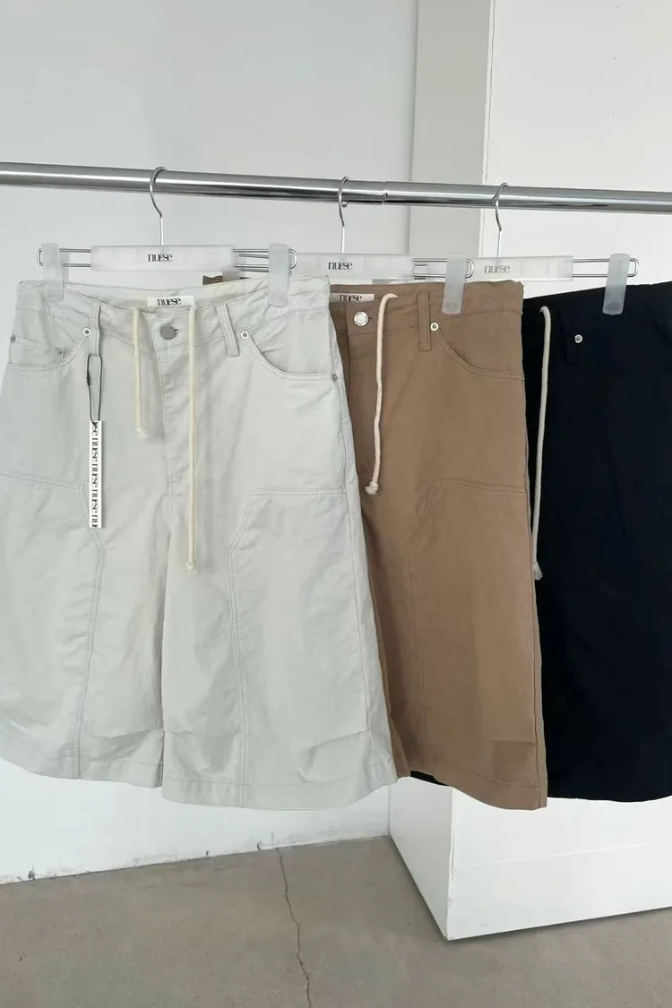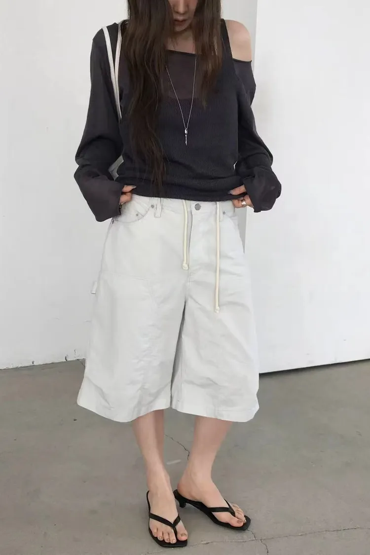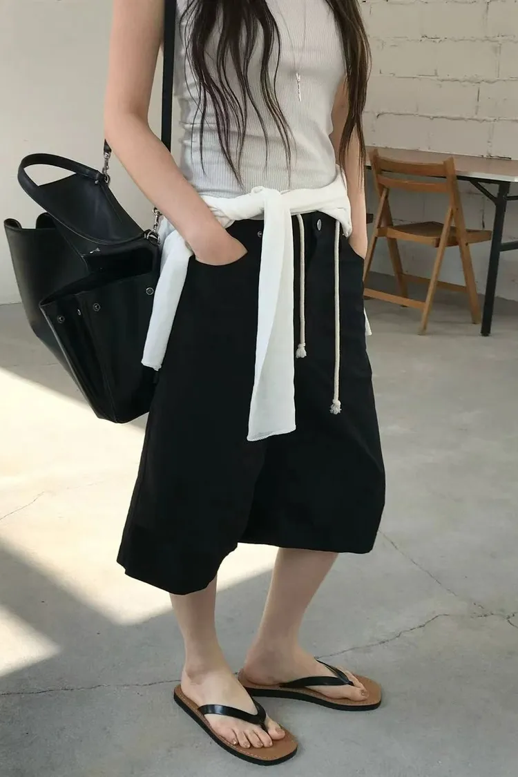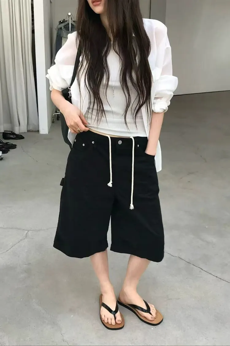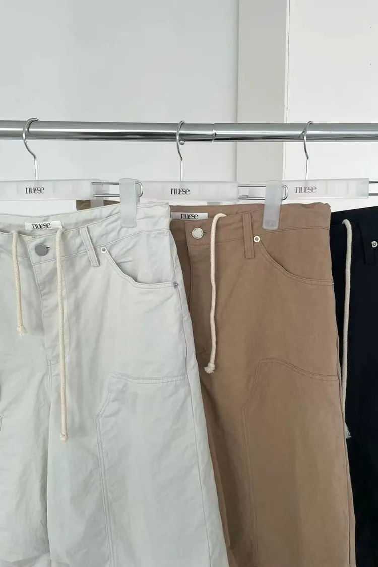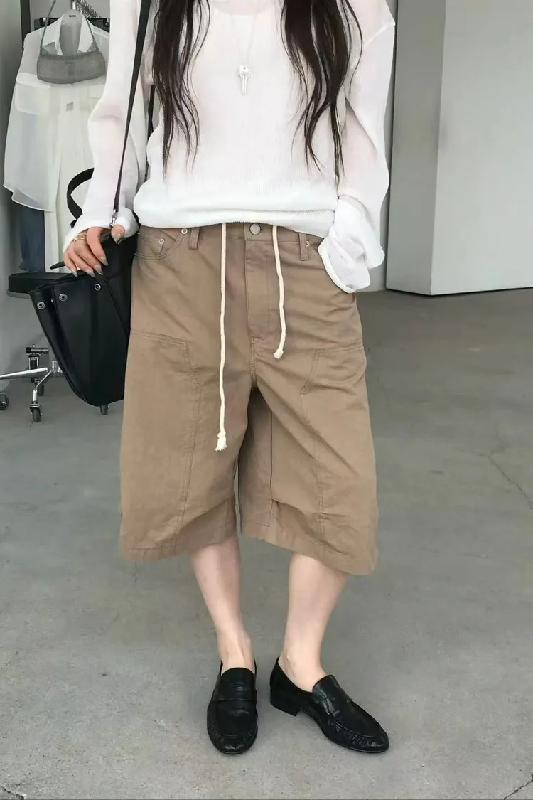 正韓女裝 春夏新品 街頭中性風直筒褲 抽繩闊腿畫家五分褲
