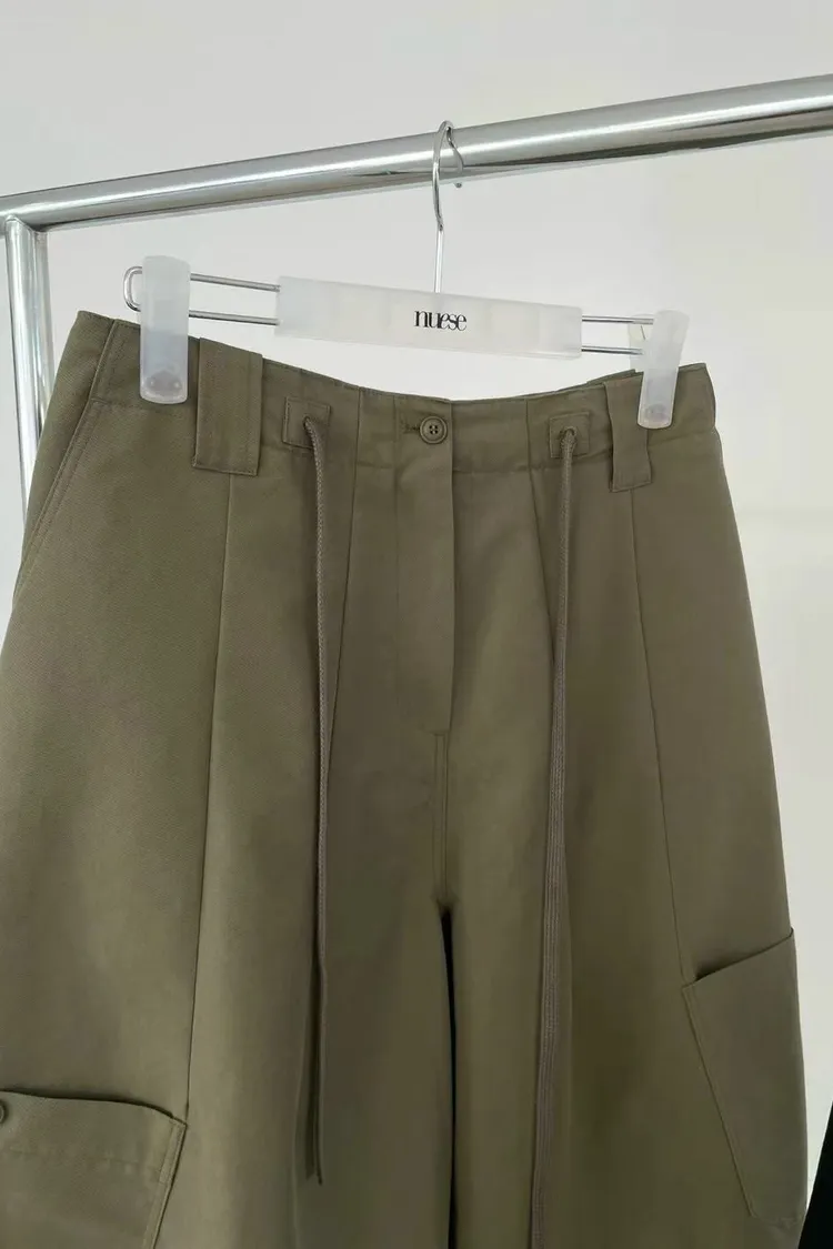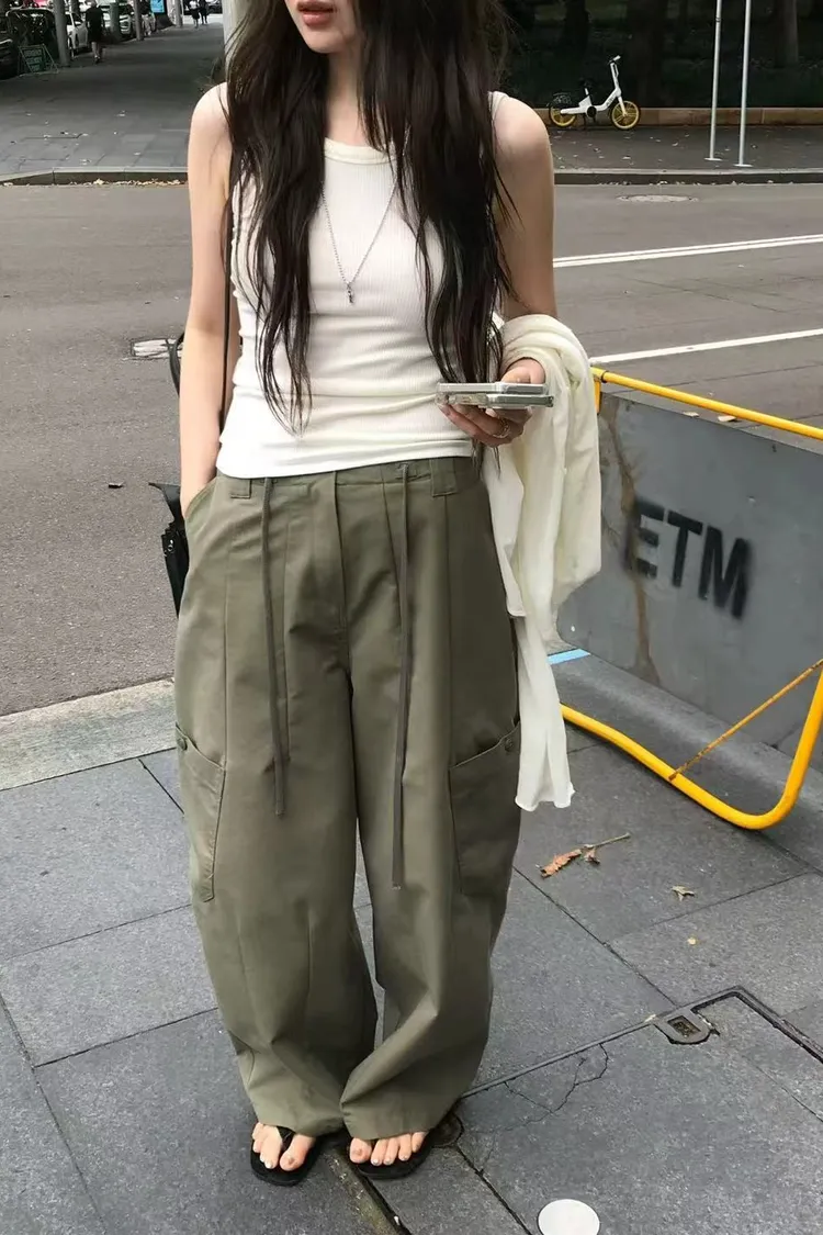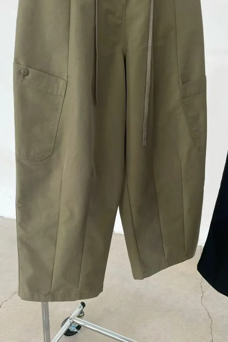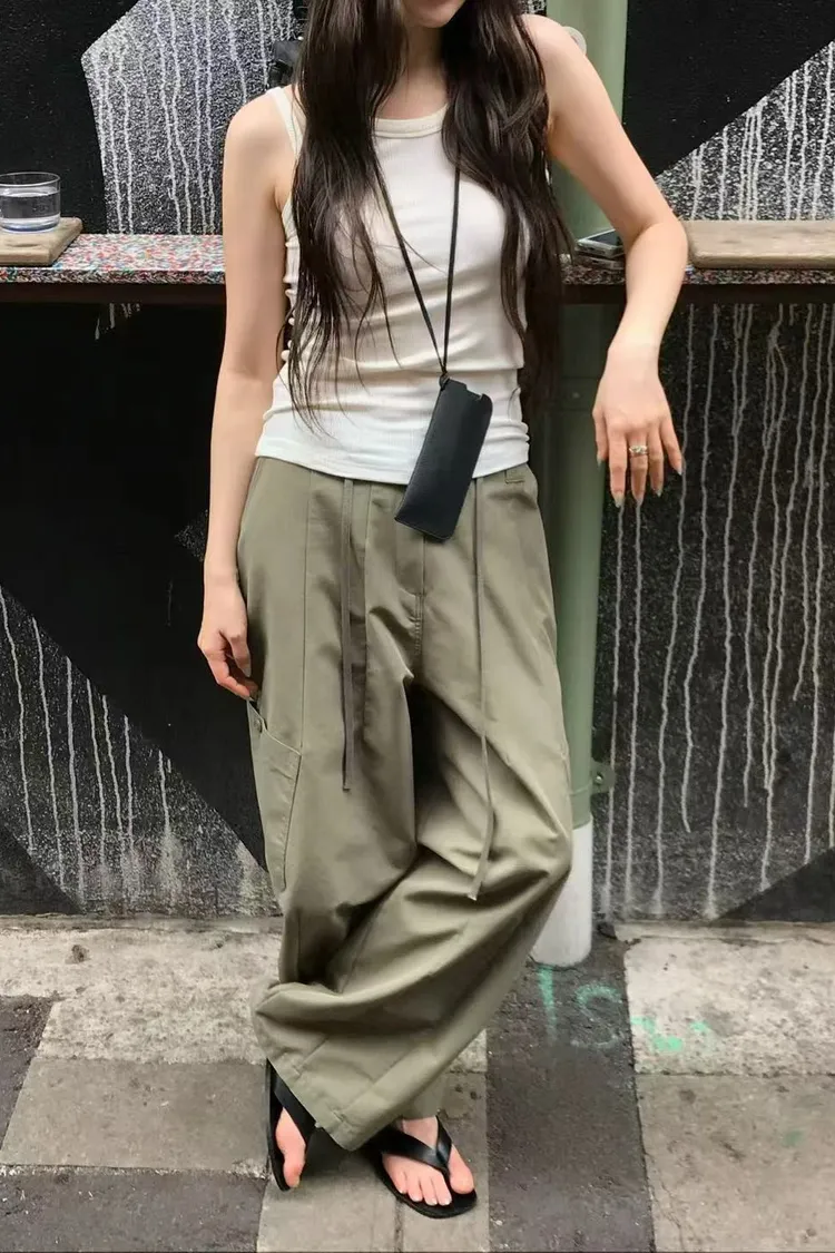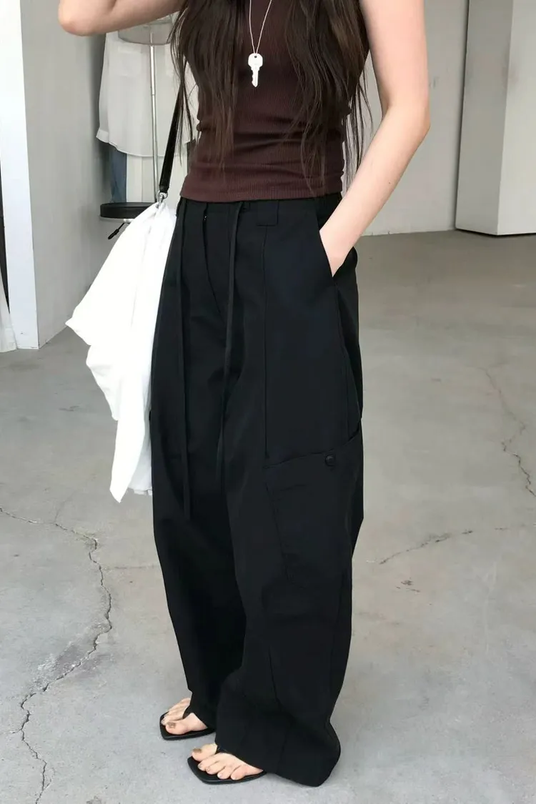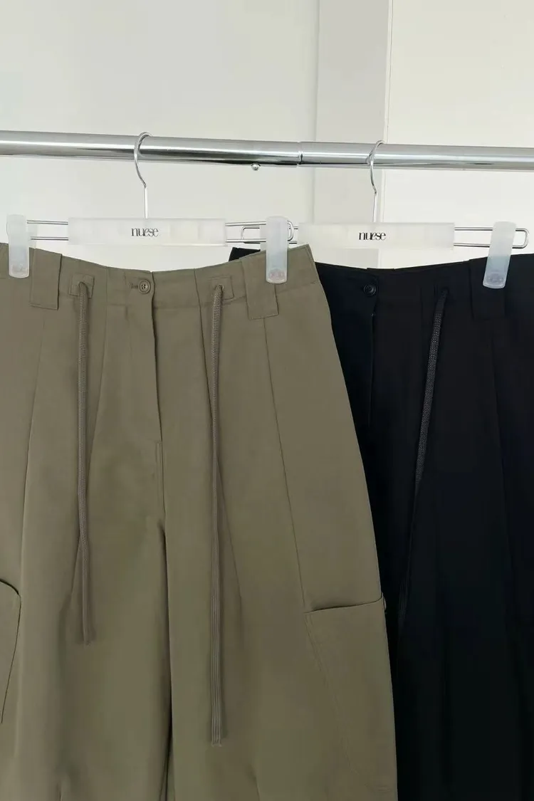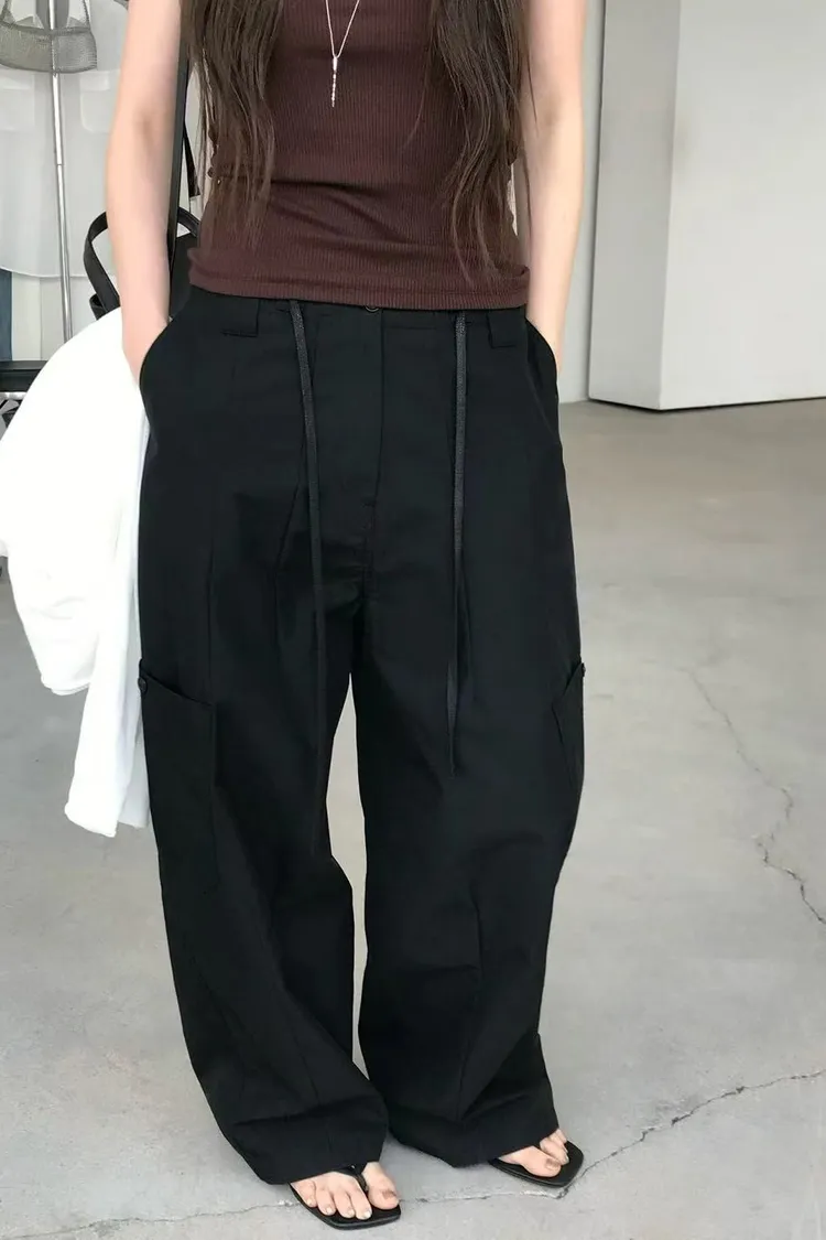 正韓女裝 抽繩彎刀工裝休閒長褲寬鬆百搭