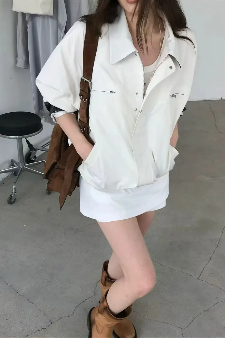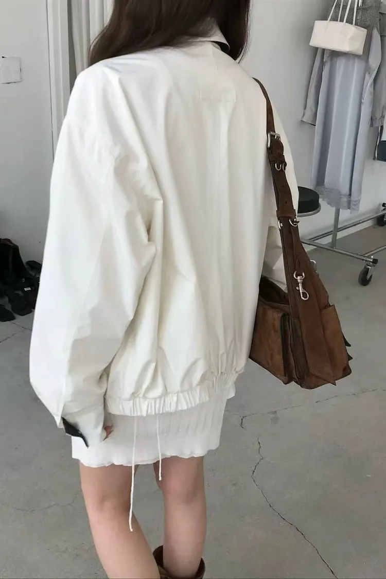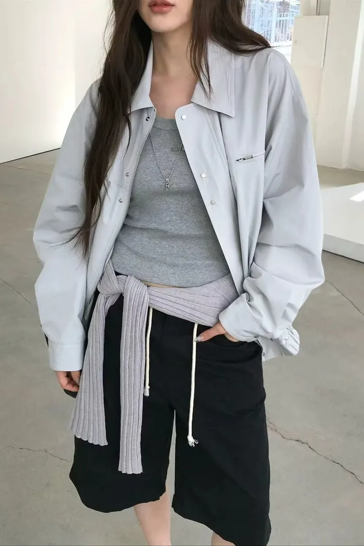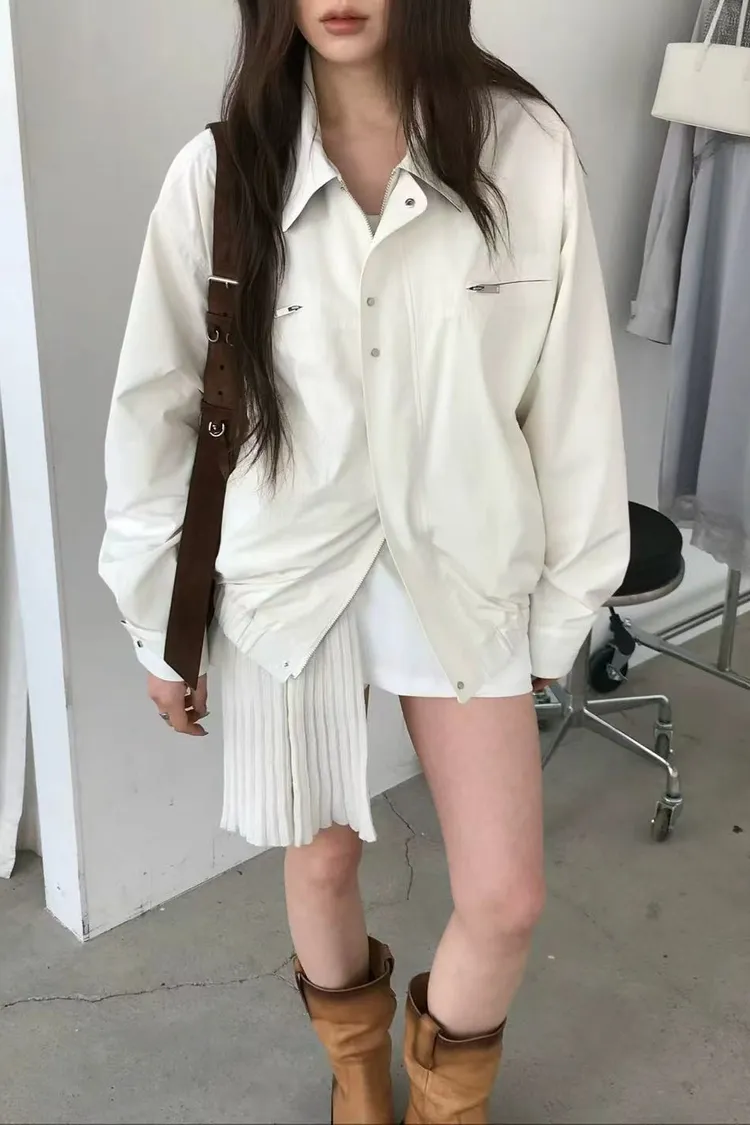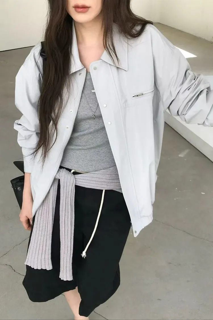 正韓女裝 率性簡約翻領百搭夾克 休閒寬鬆工裝外套