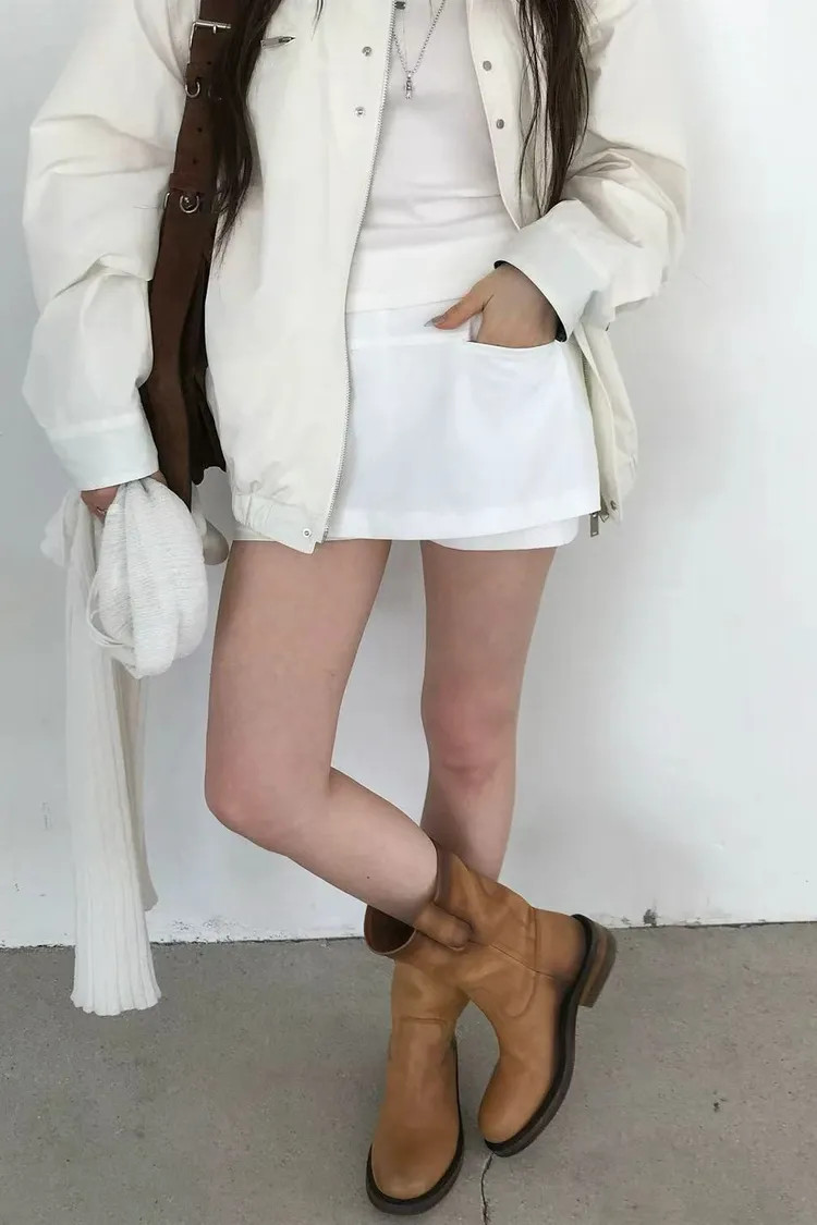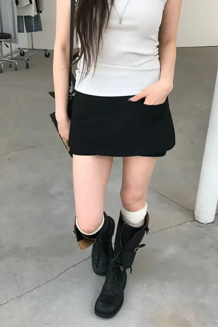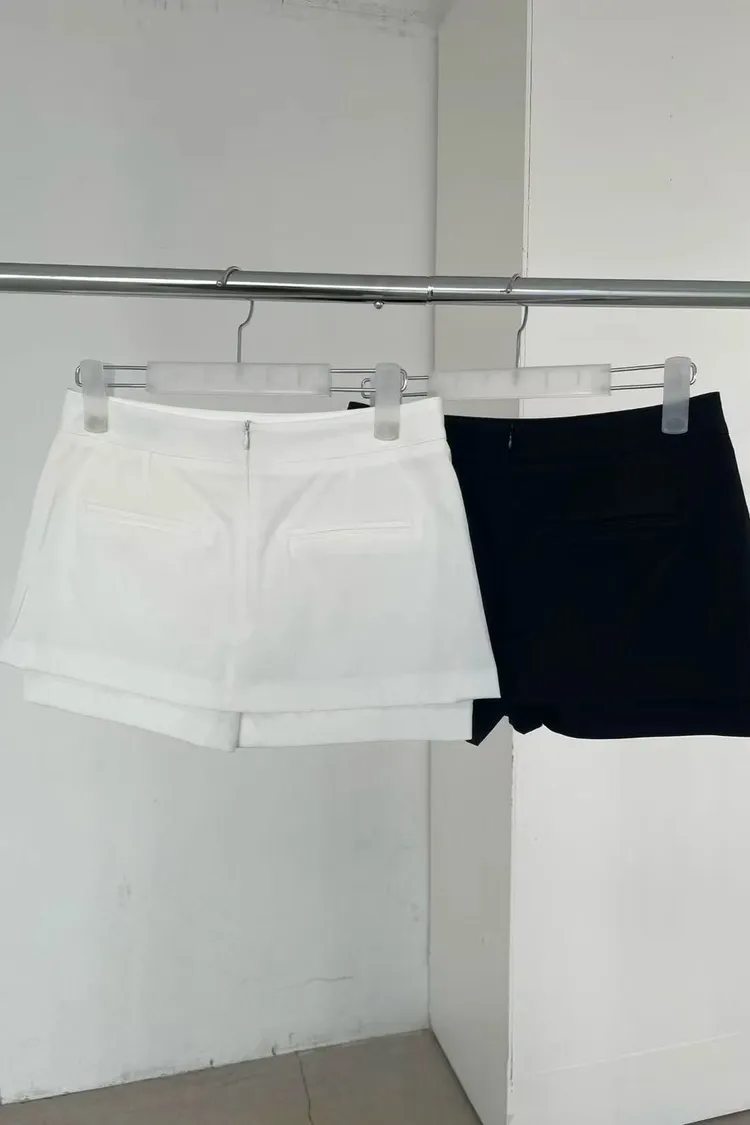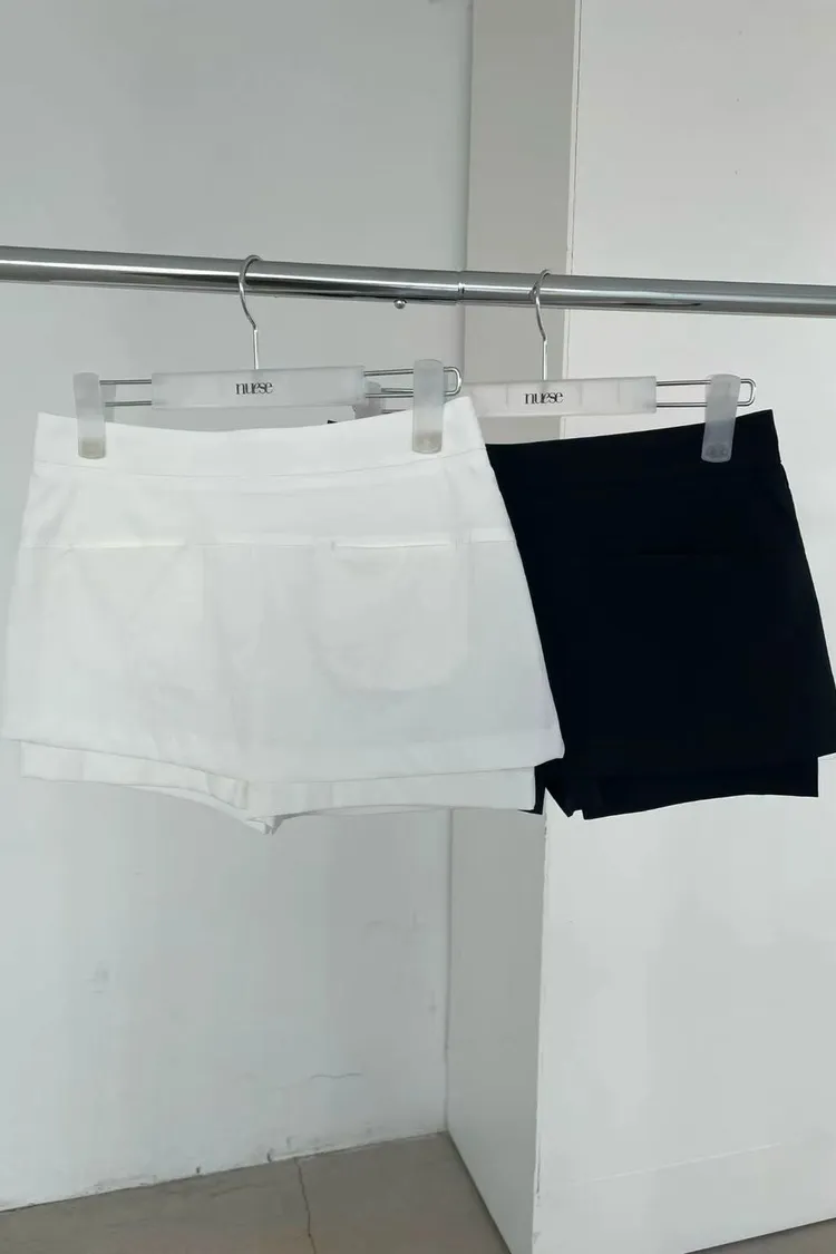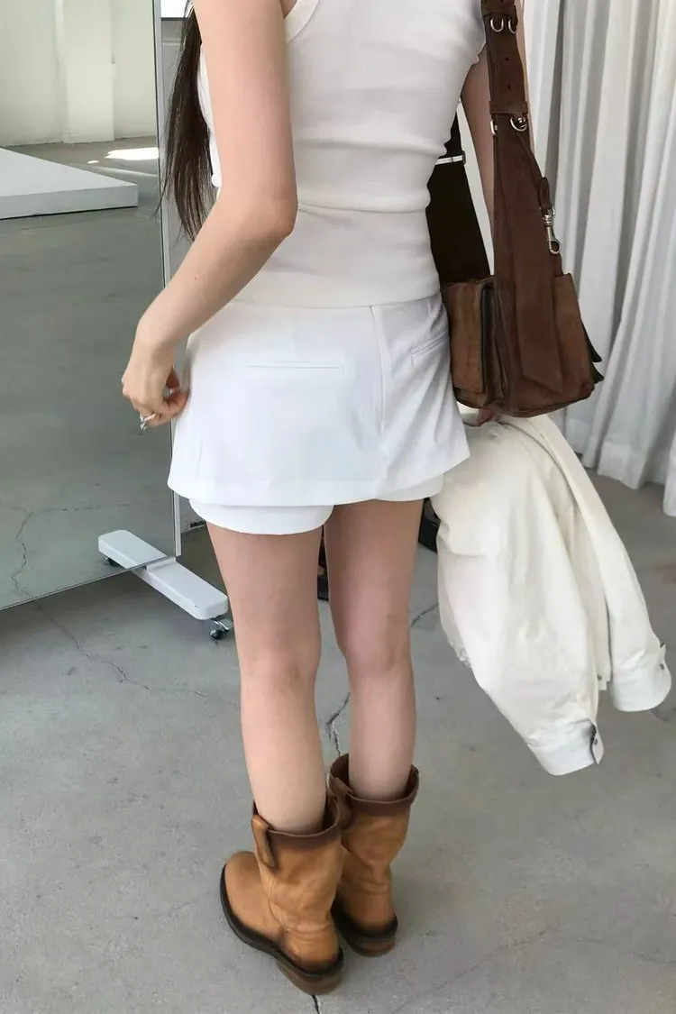 正韓女裝 修身顯瘦假兩件短褲 純色百搭休閒褲裙