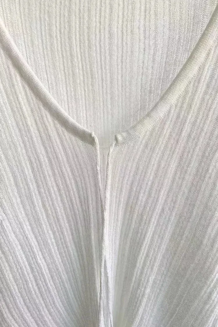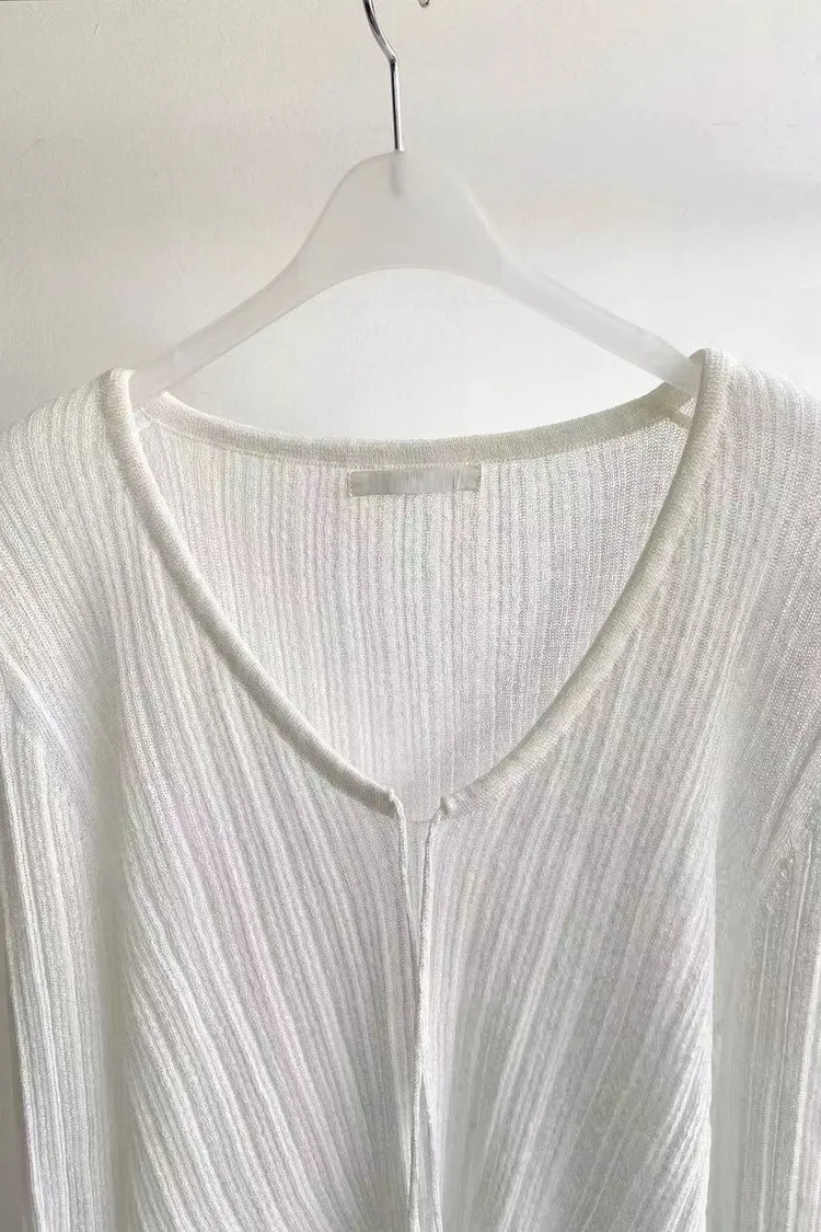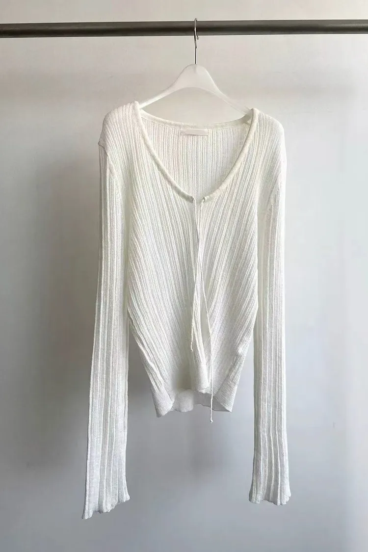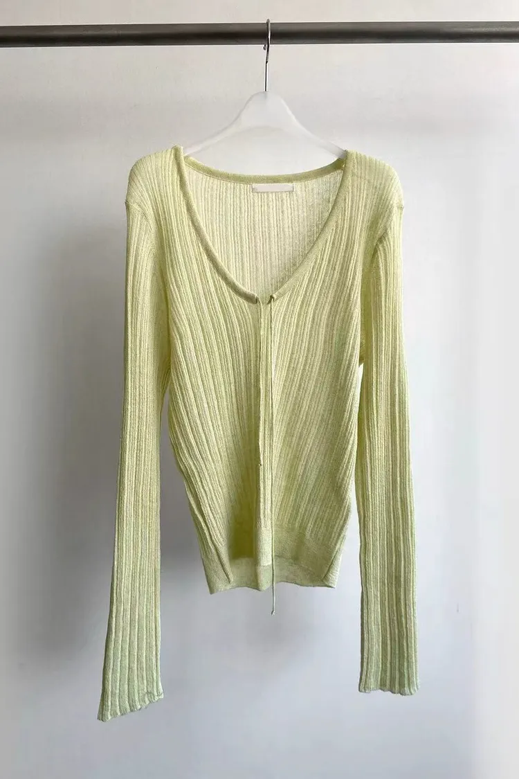 正韓女裝 低領螺紋長袖 落肩透膚針織衫