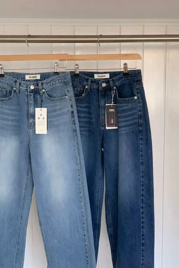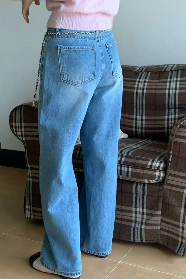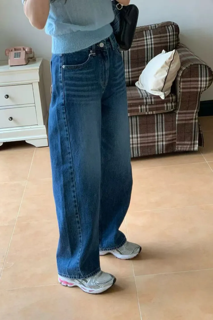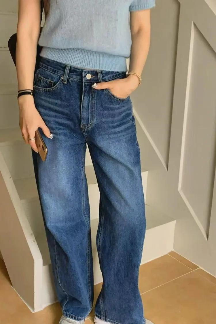 正韓女裝 復古刷色落地牛仔褲 顯瘦長腿直筒褲