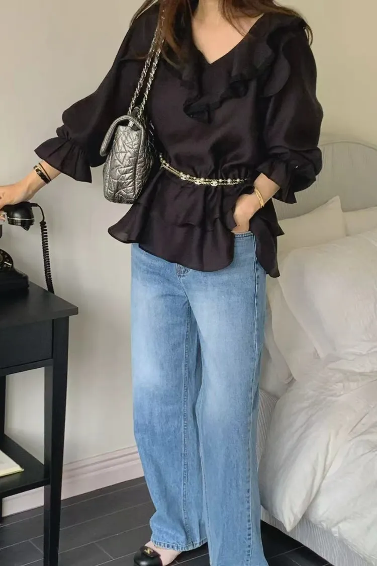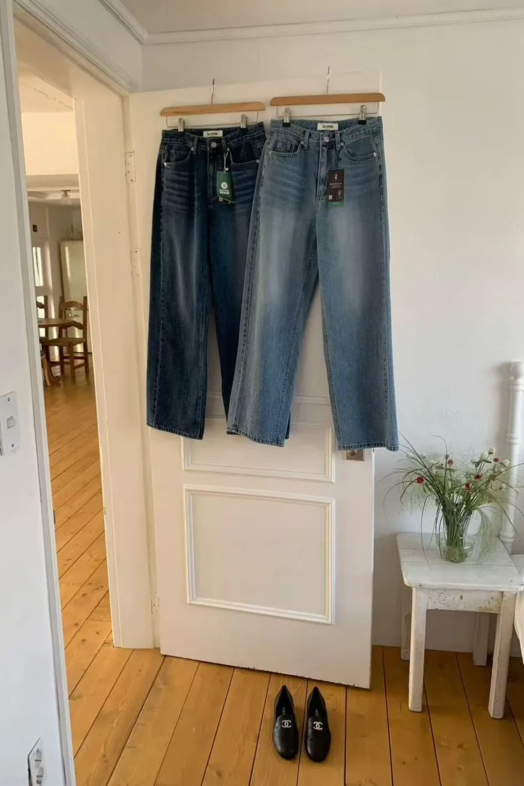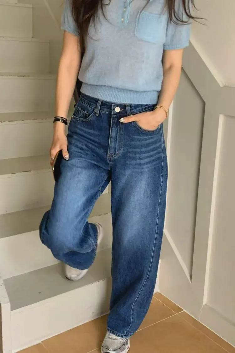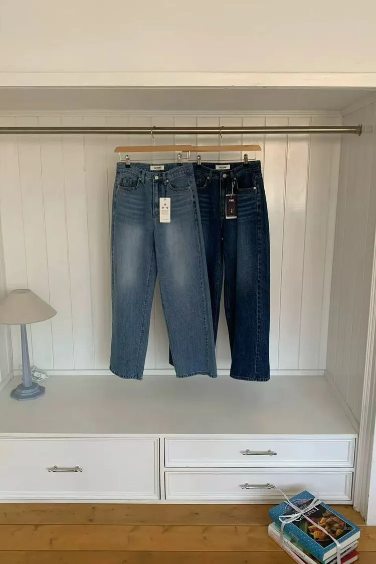 正韓女裝 復古刷色落地牛仔褲 顯瘦長腿直筒褲