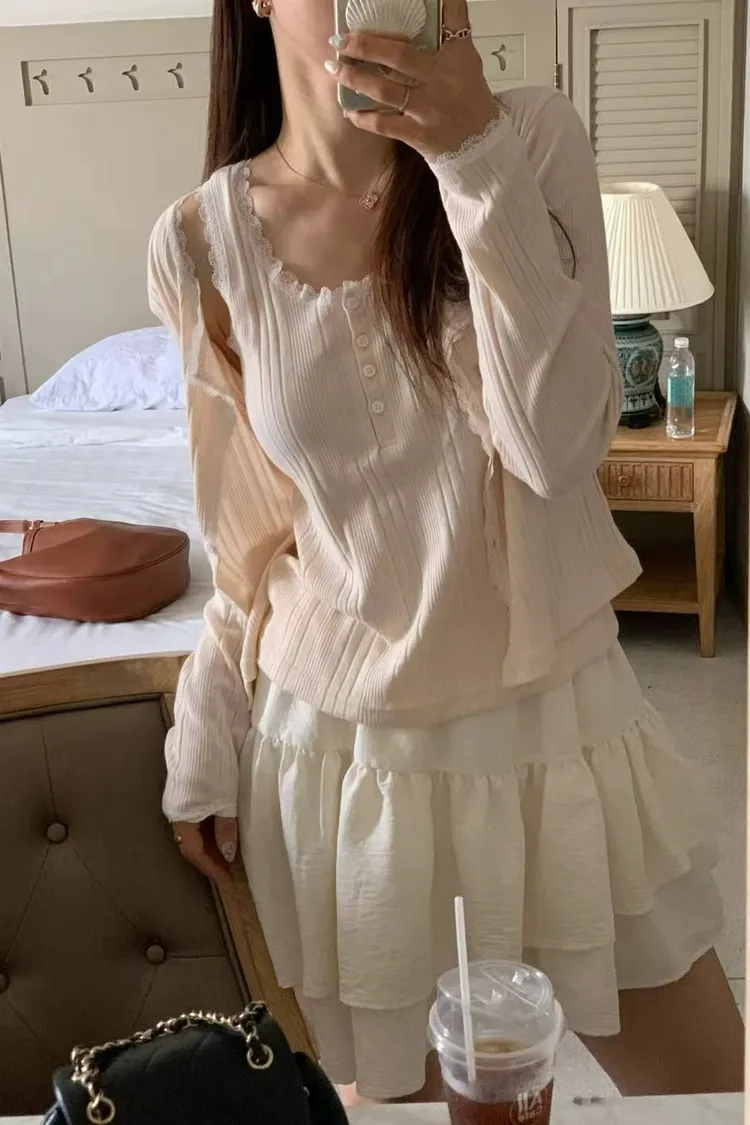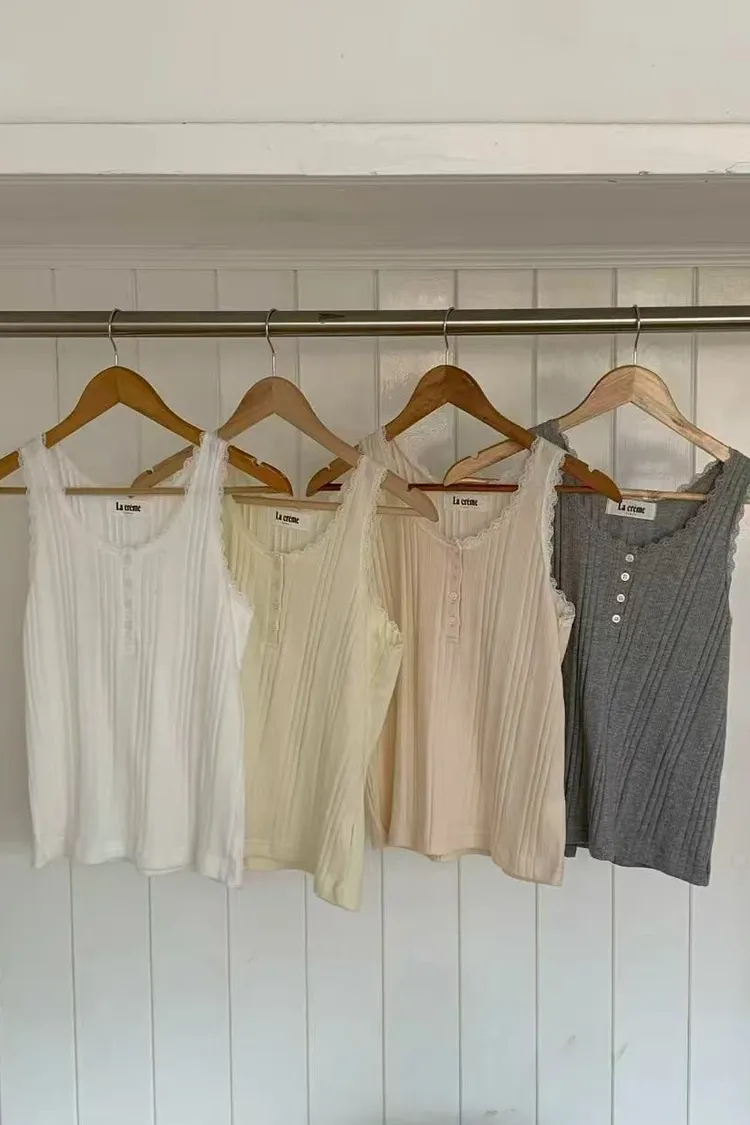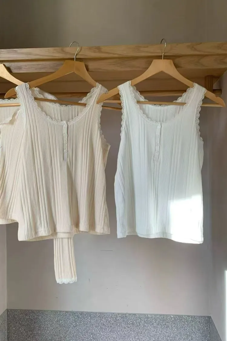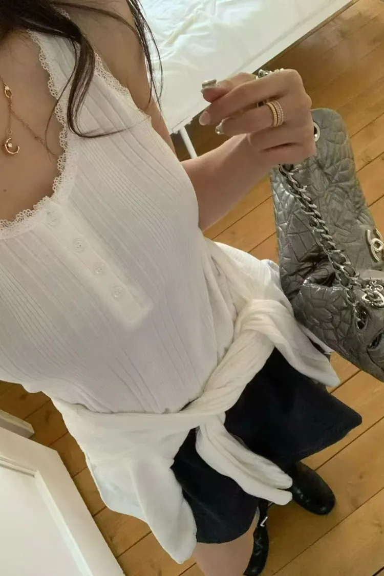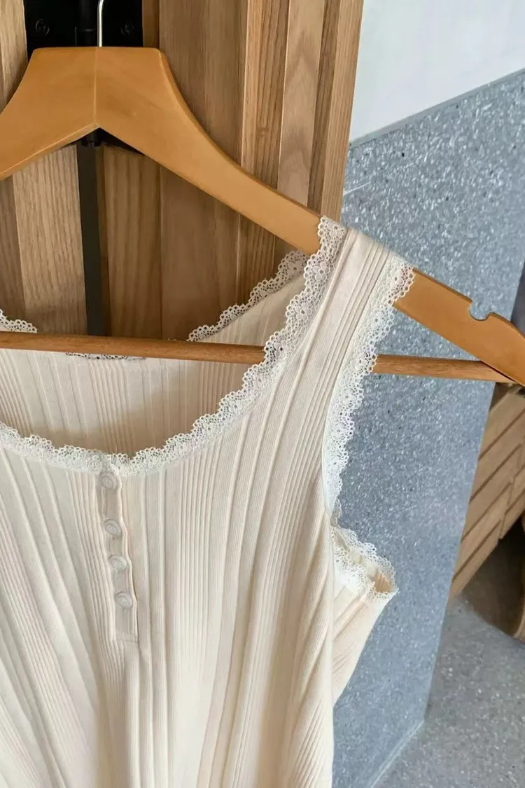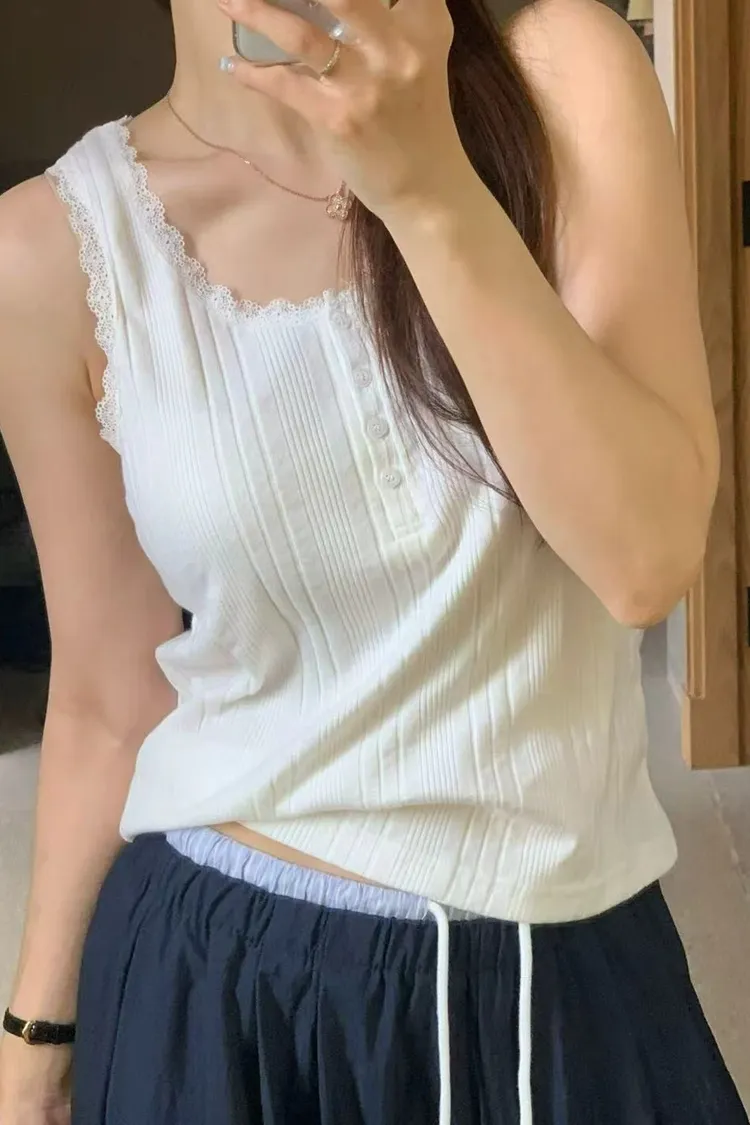 正韓女裝 U領蕾絲花邊拼接吊帶 U領遮副乳顯瘦背心