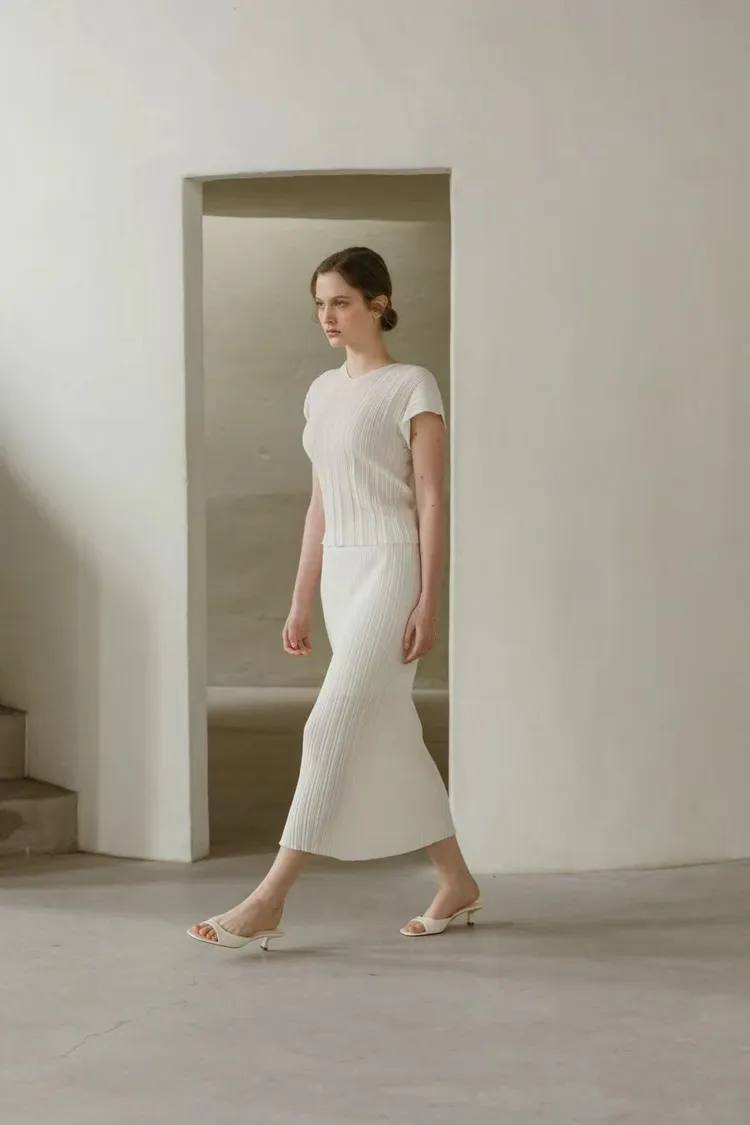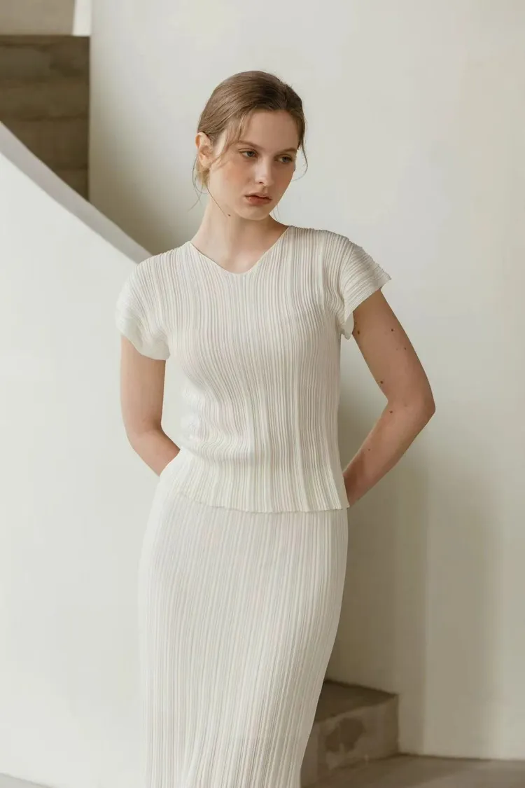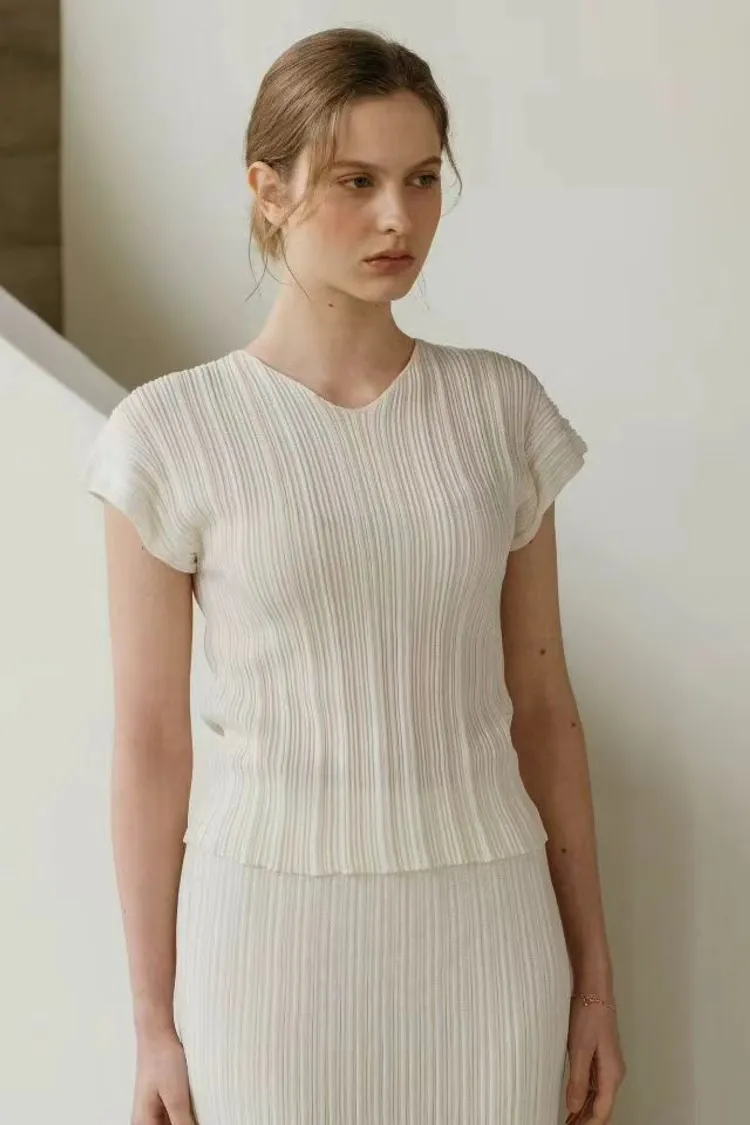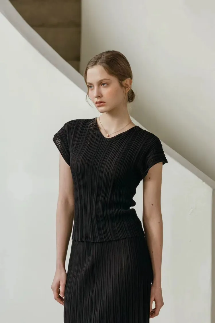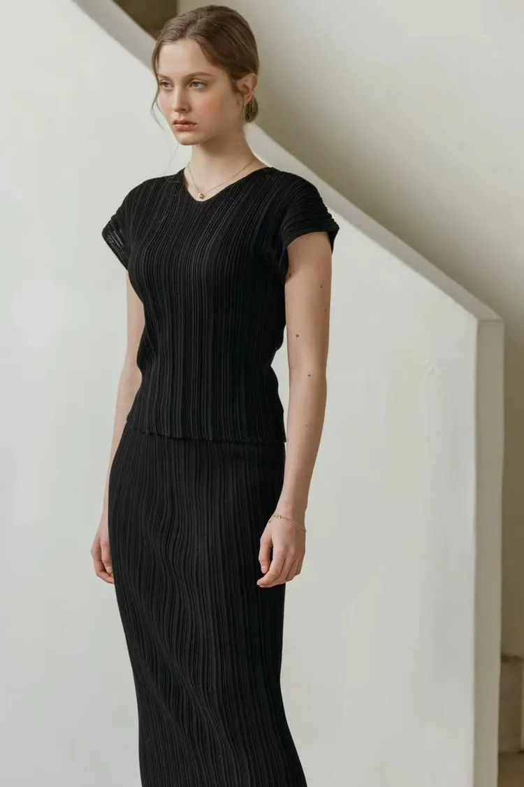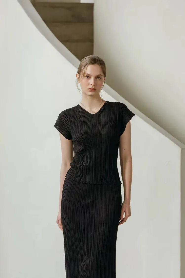 韓國連線款 質感氣質 褶皺v領套裝 長裙套裝