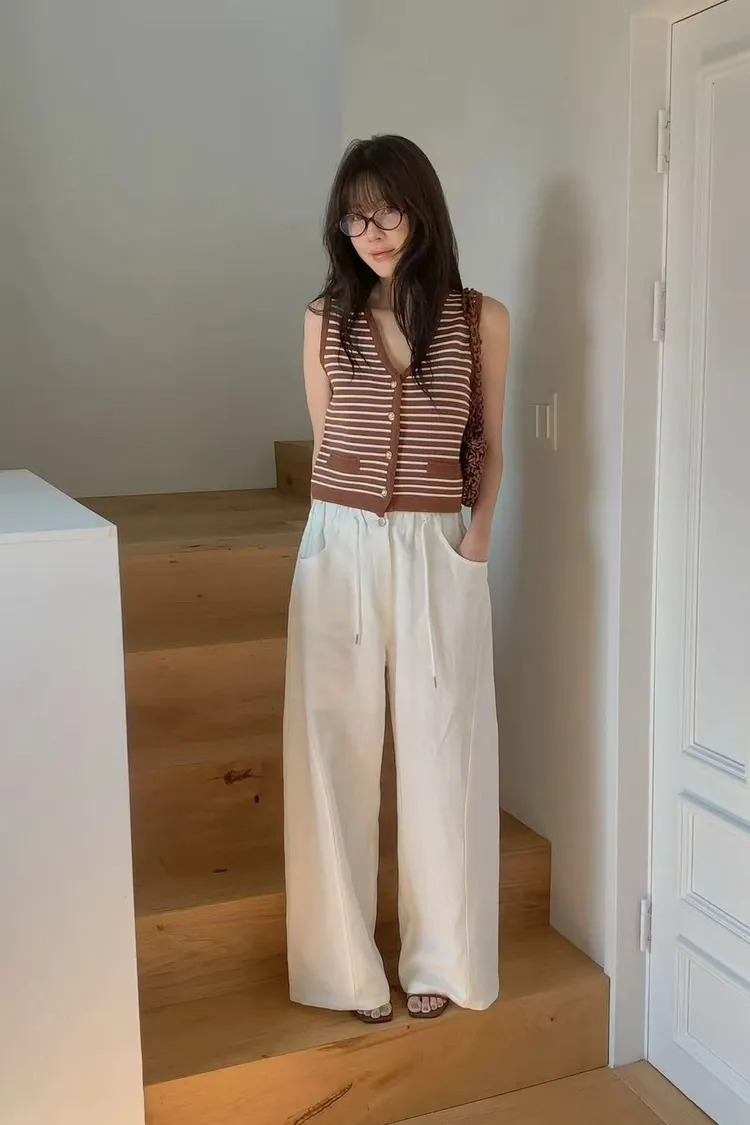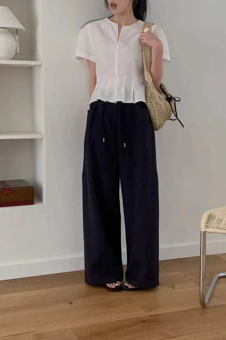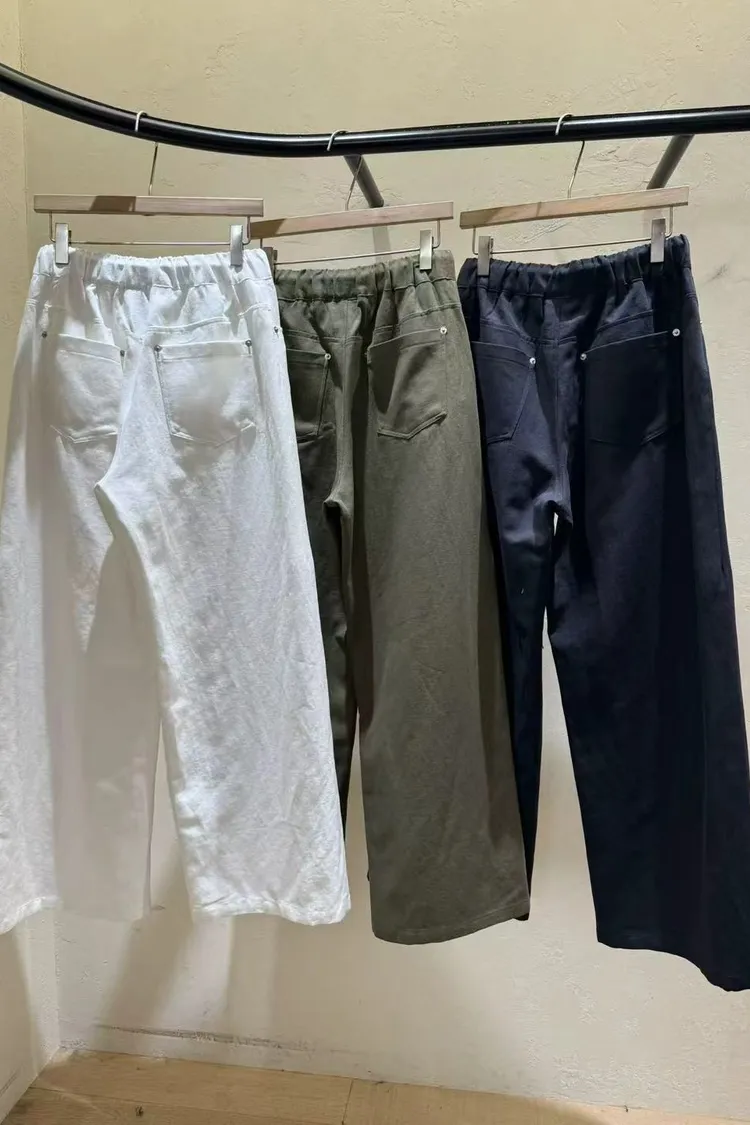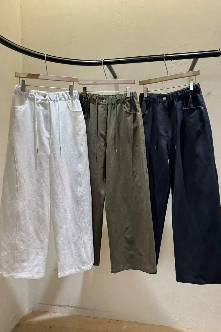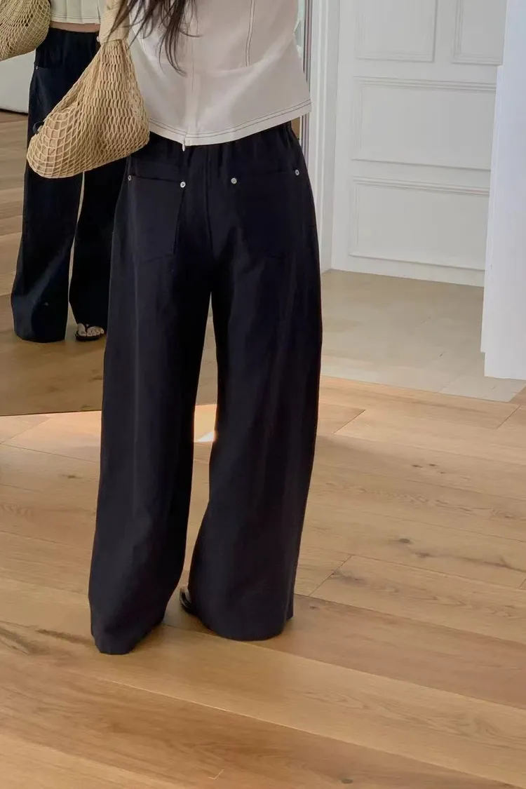 韓國連線款 鬆緊腰綁帶寬褲 休閒長褲