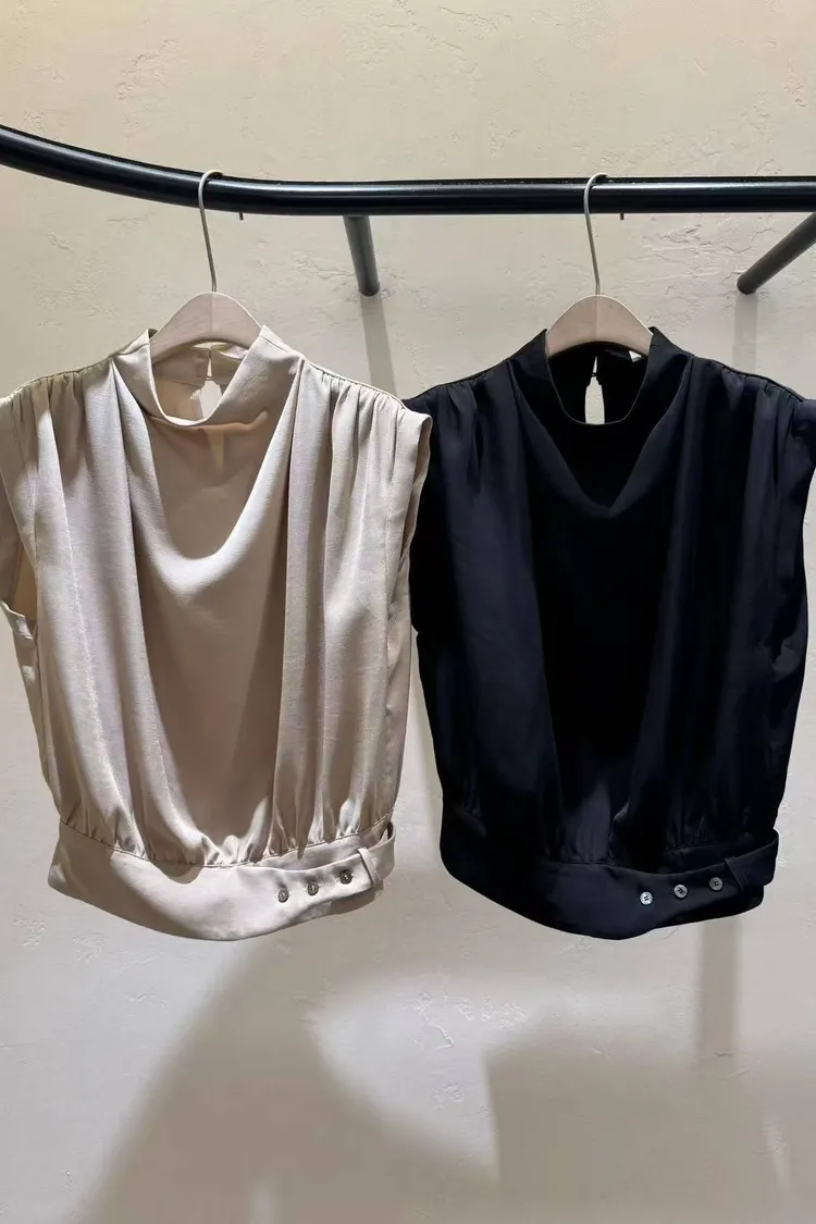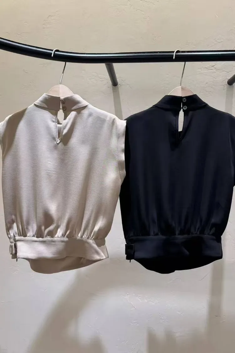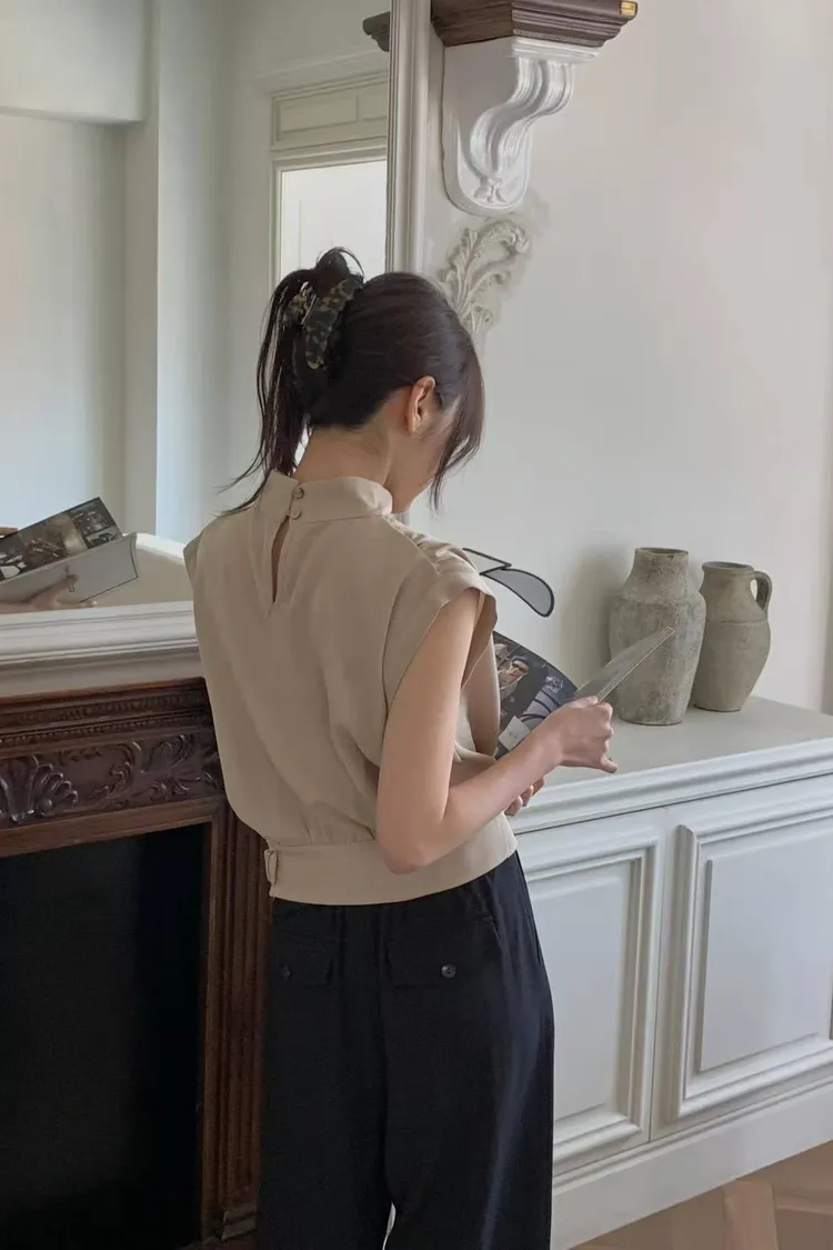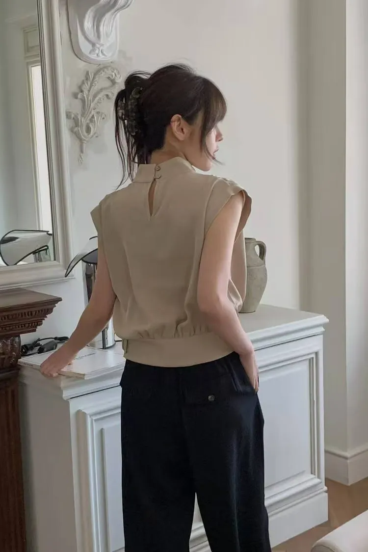 韓國連線 氣質微立領短袖上衣 女生上班穿搭 質感百搭上衣