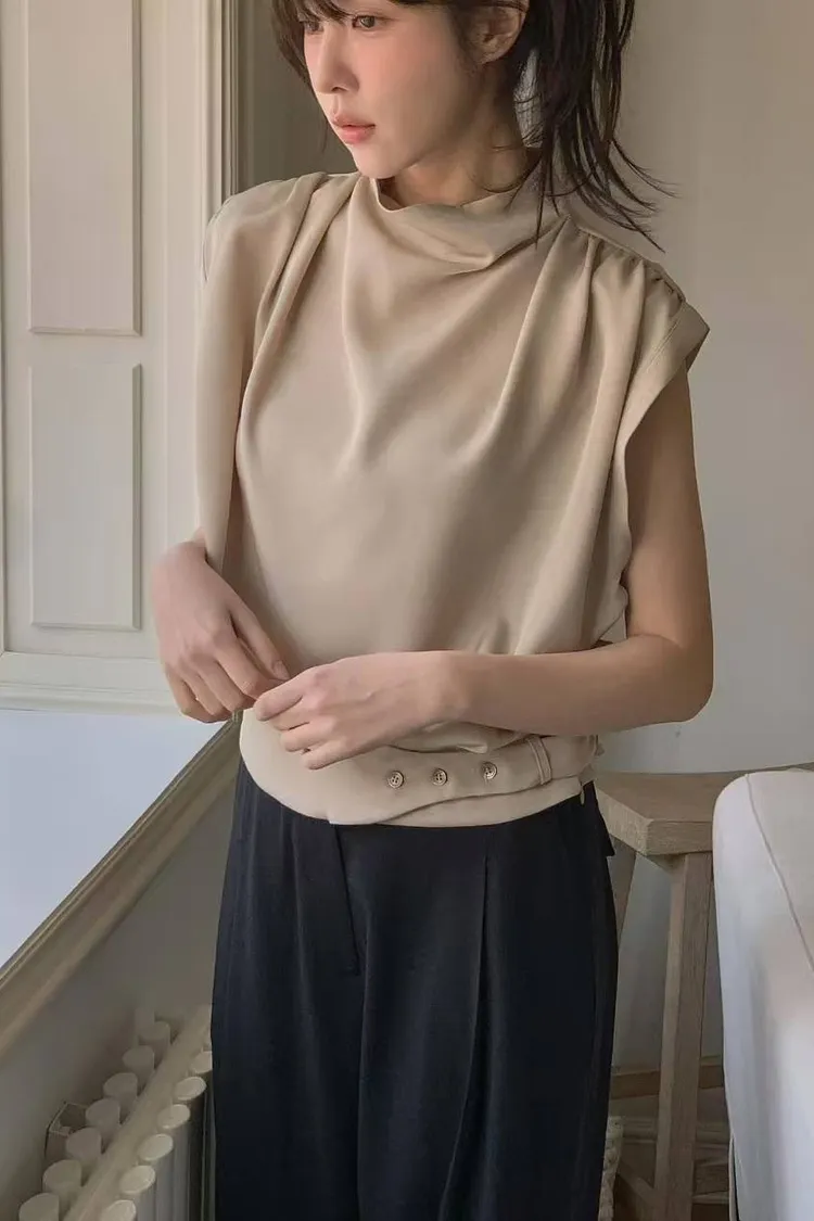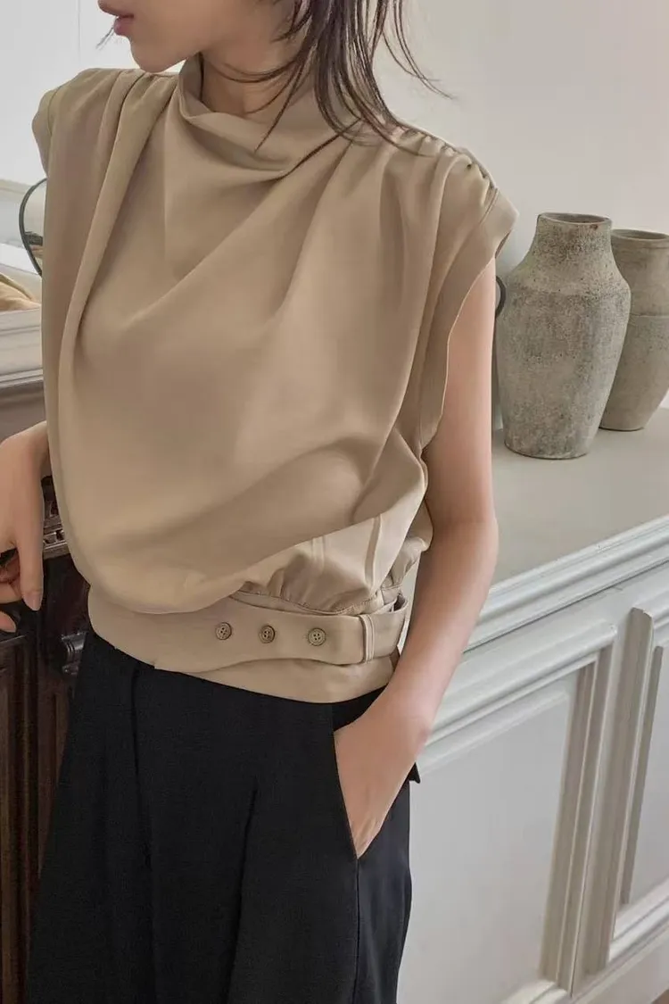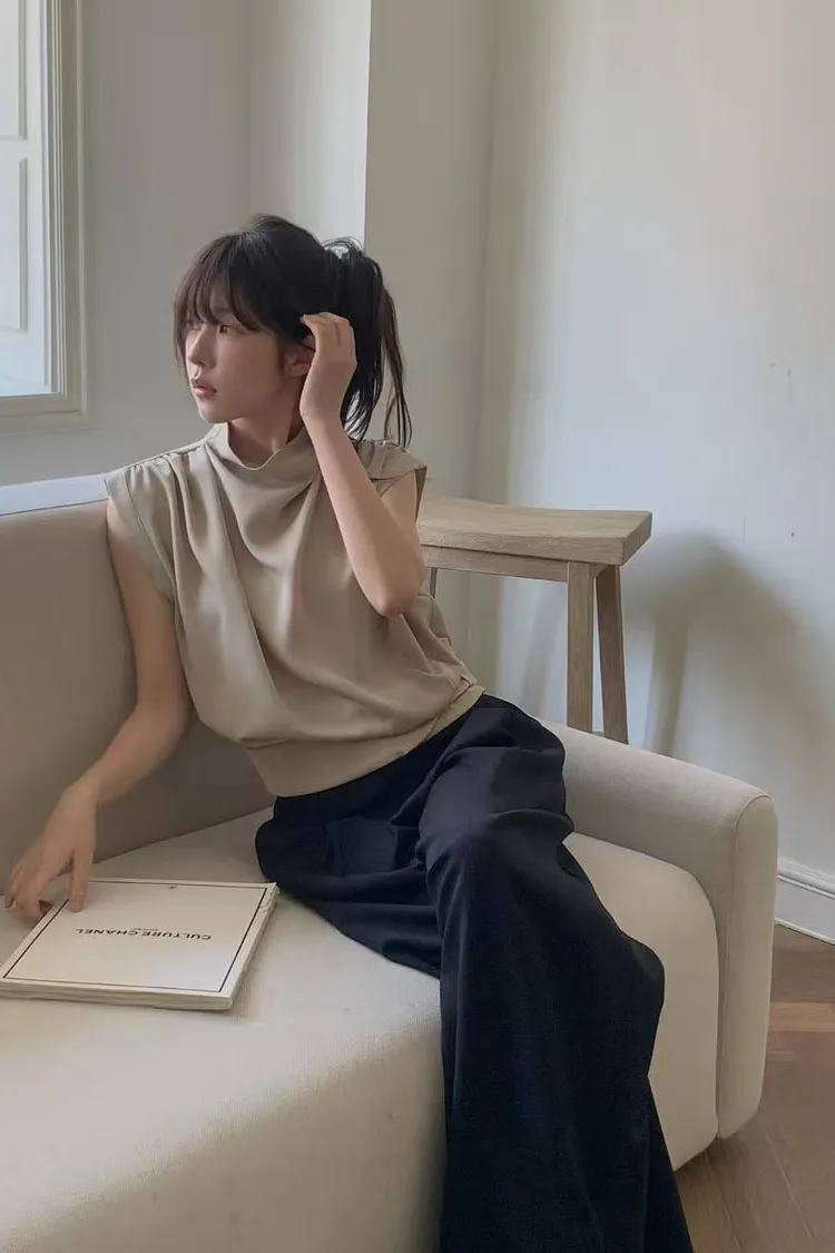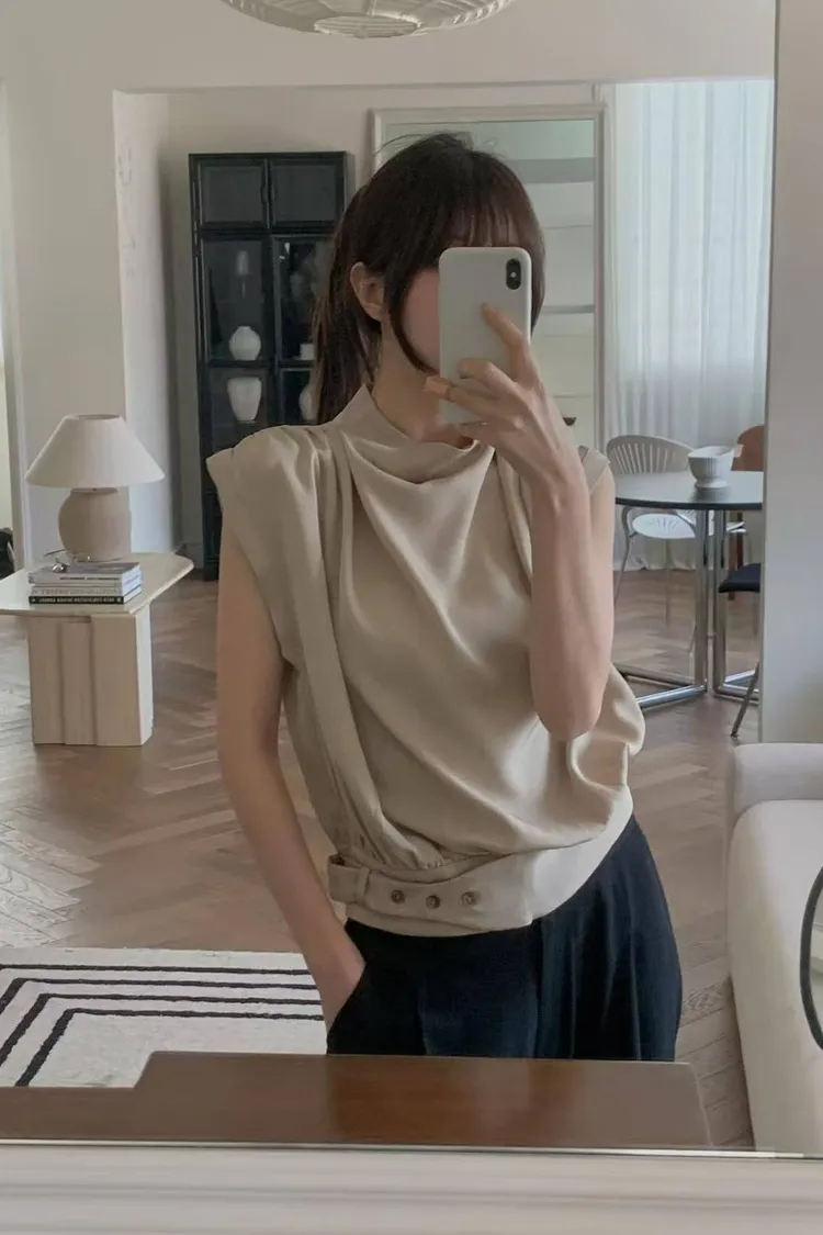 韓國連線 氣質微立領短袖上衣 女生上班穿搭 質感百搭上衣