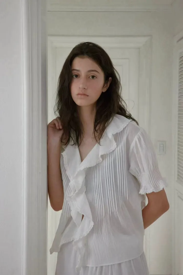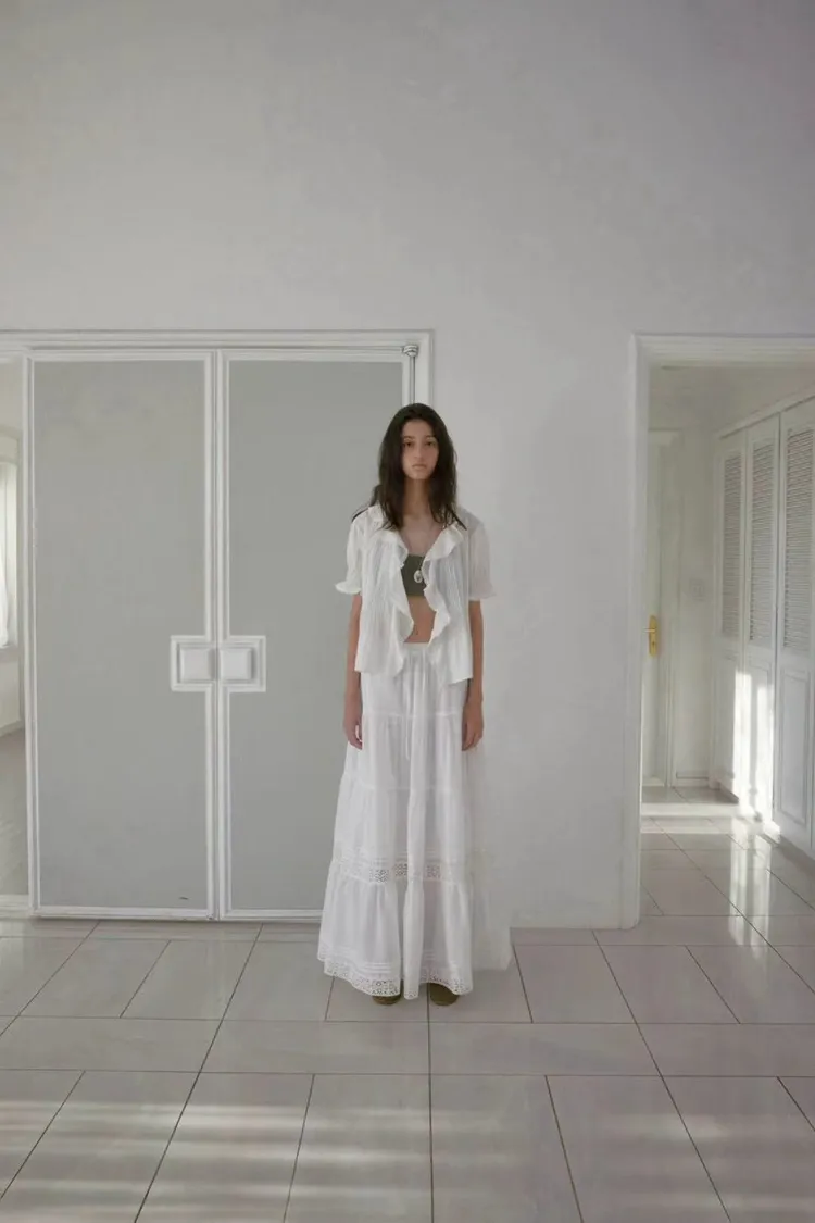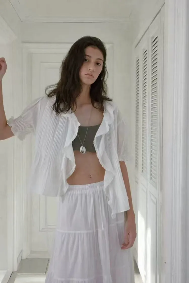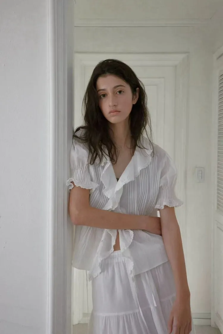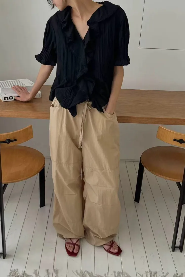 韓國連線款 優雅荷葉邊女衫 鬆緊腰飄飄長裙 質感套裝