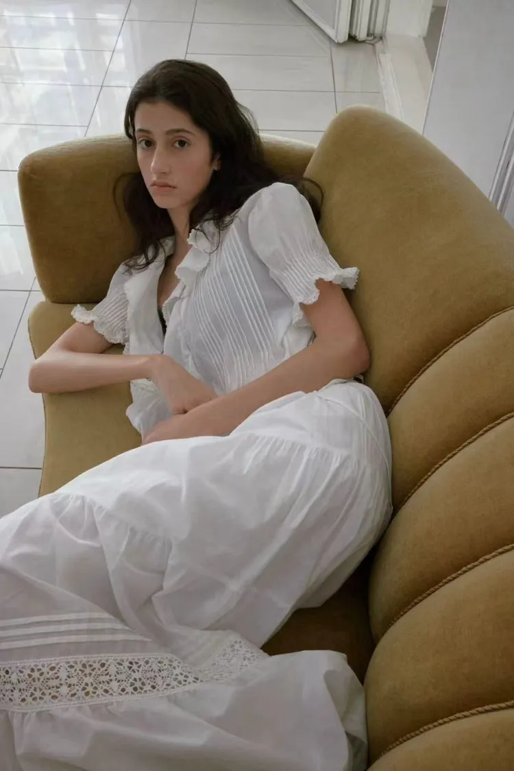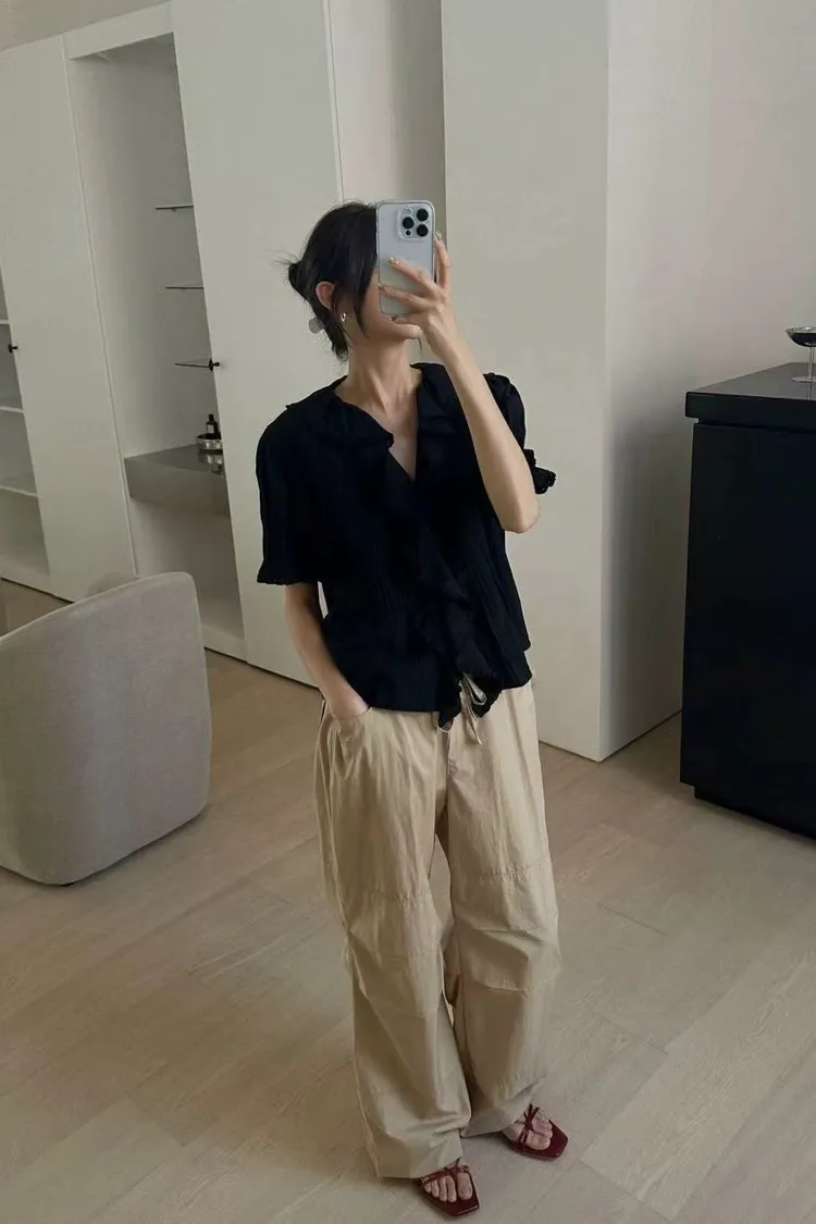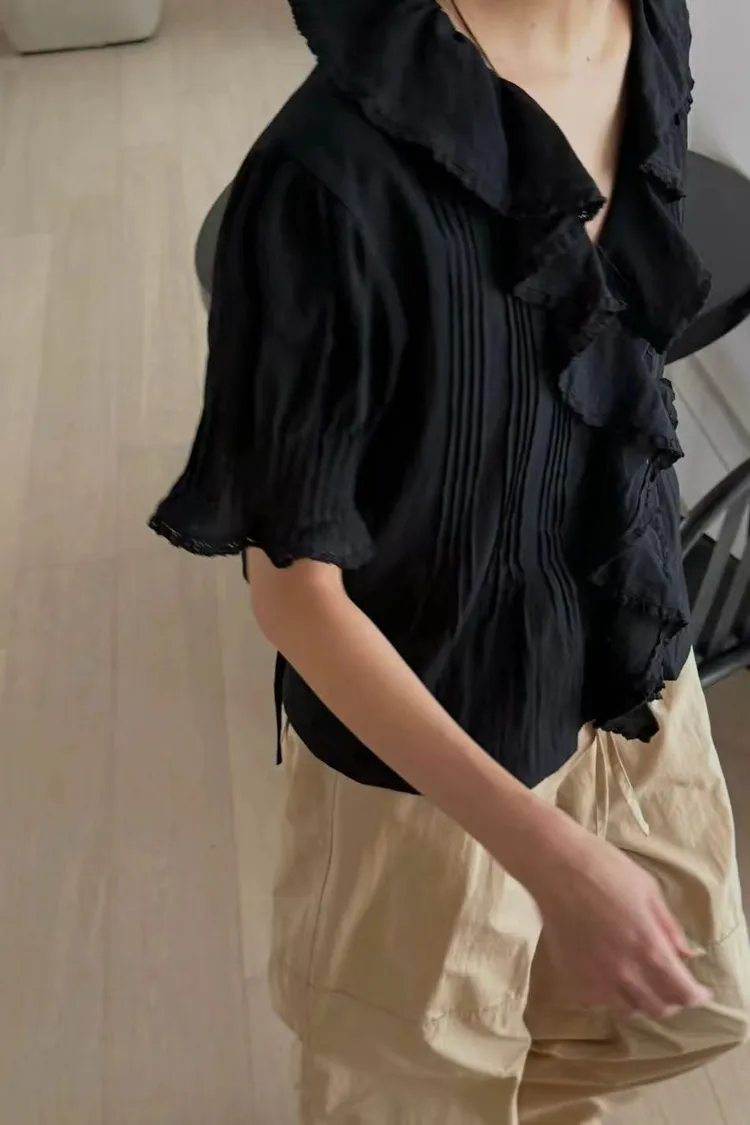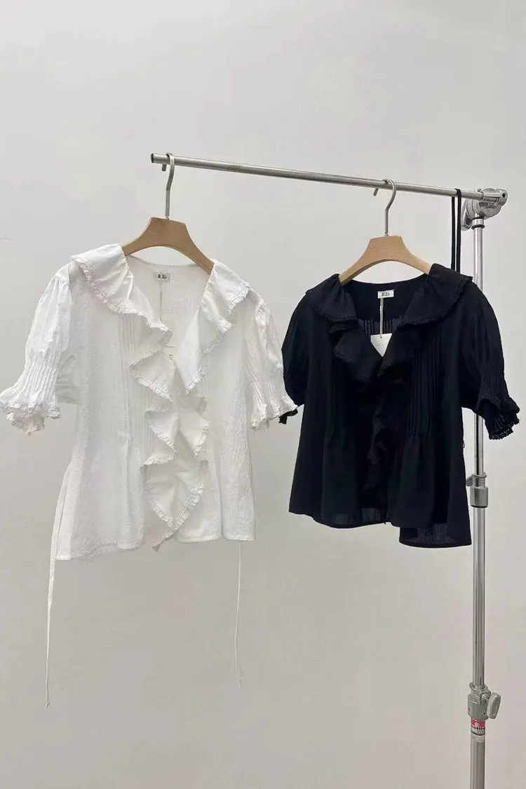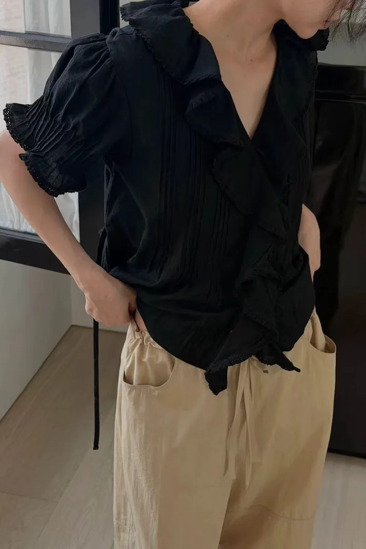 韓國連線款 優雅荷葉邊女衫 鬆緊腰飄飄長裙 質感套裝