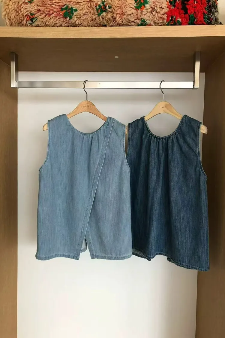韓國連線款 斜面設計牛仔背心 鬆緊腰牛仔長褲