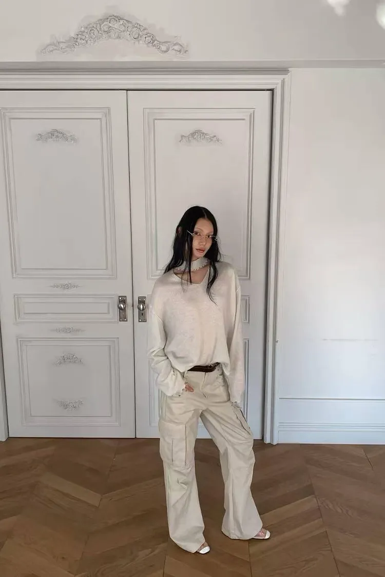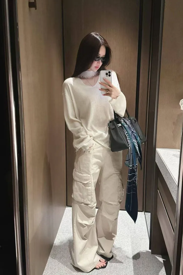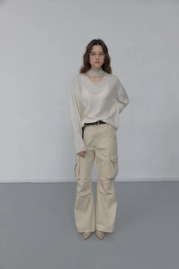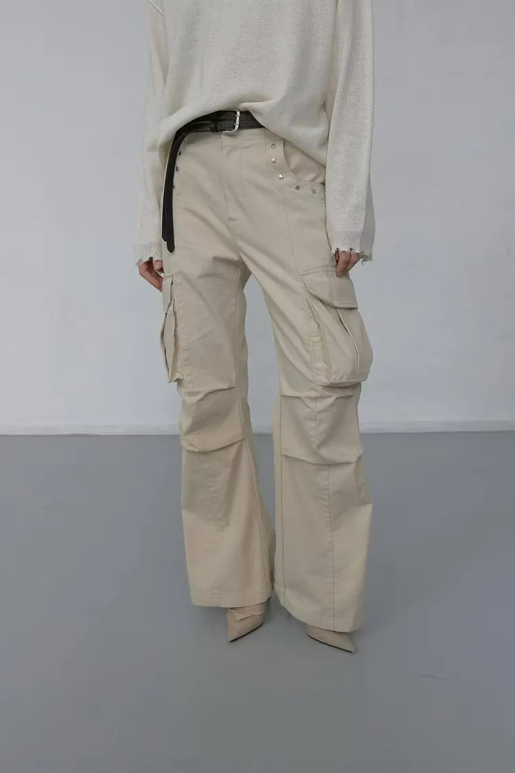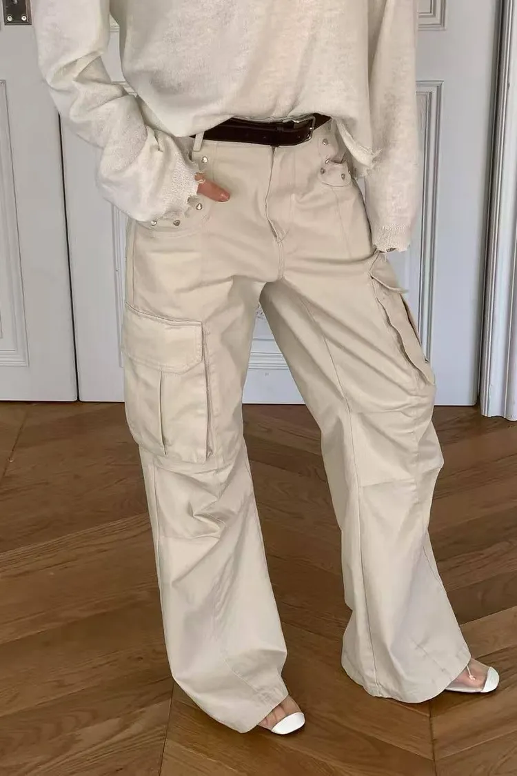 韓國連線 設計感鉚釘工裝褲 直筒寬褲