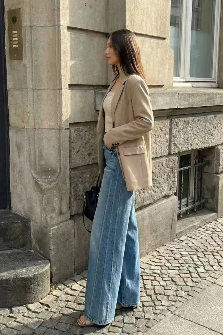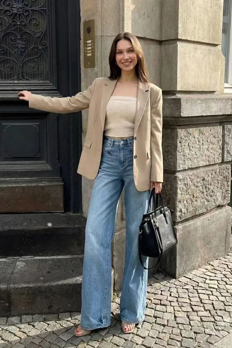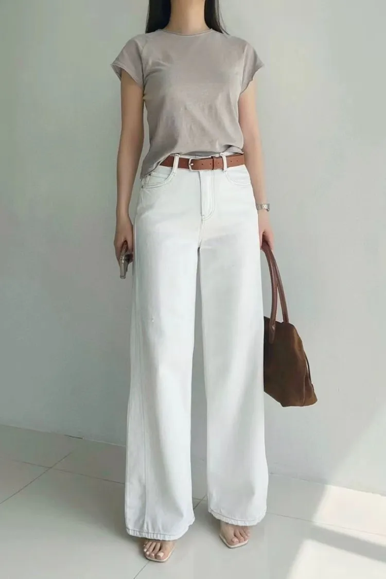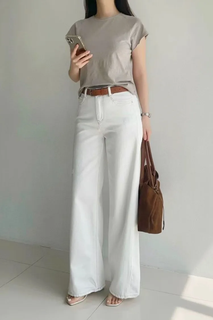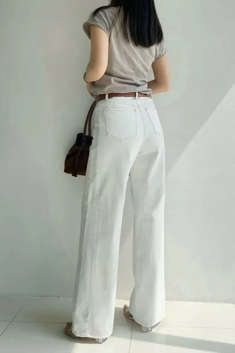 韓國連線 鬆緊腰牛仔寬褲 顯瘦長褲 女生百搭高腰牛仔褲
