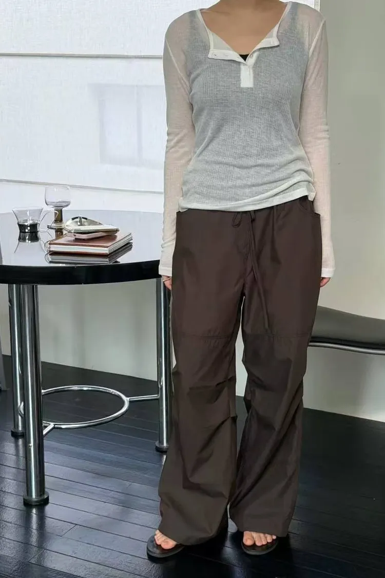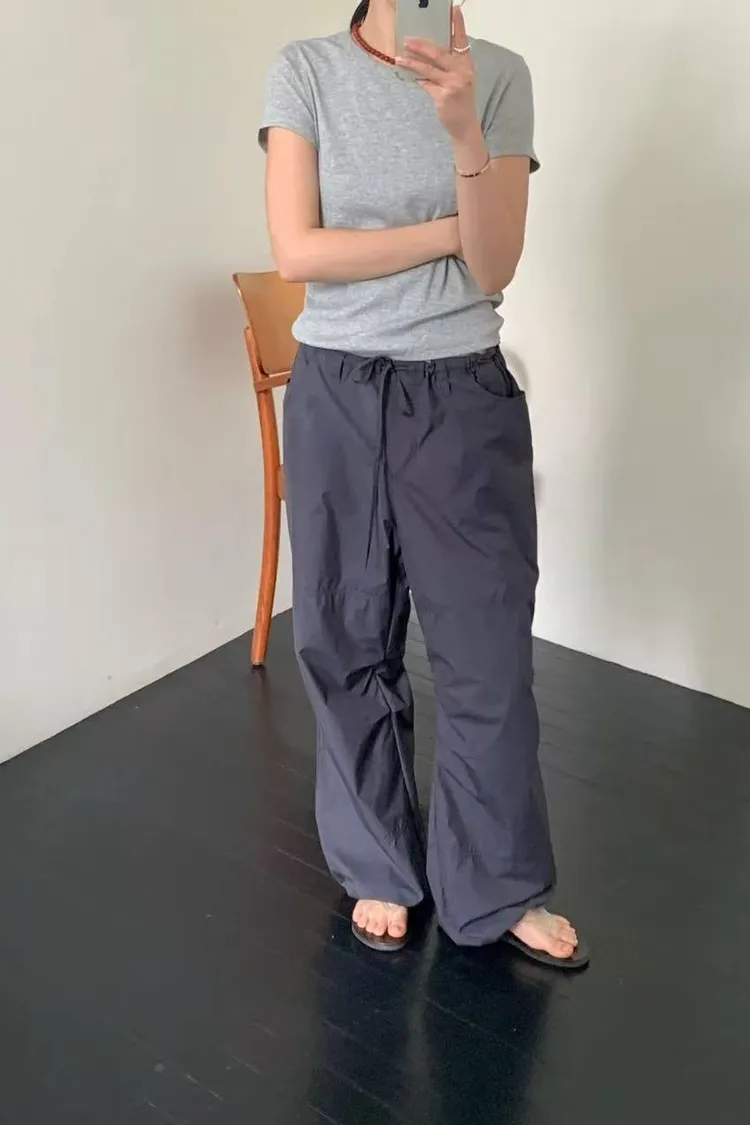 韓國代購 腰部綁帶 時尚褶皺休閒長褲