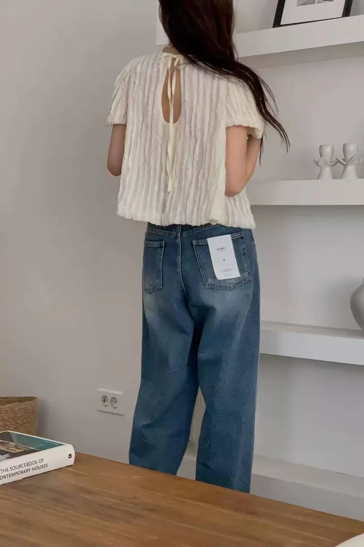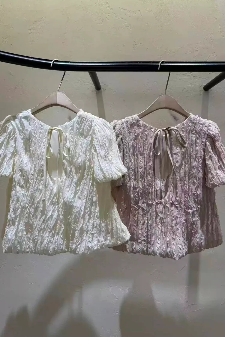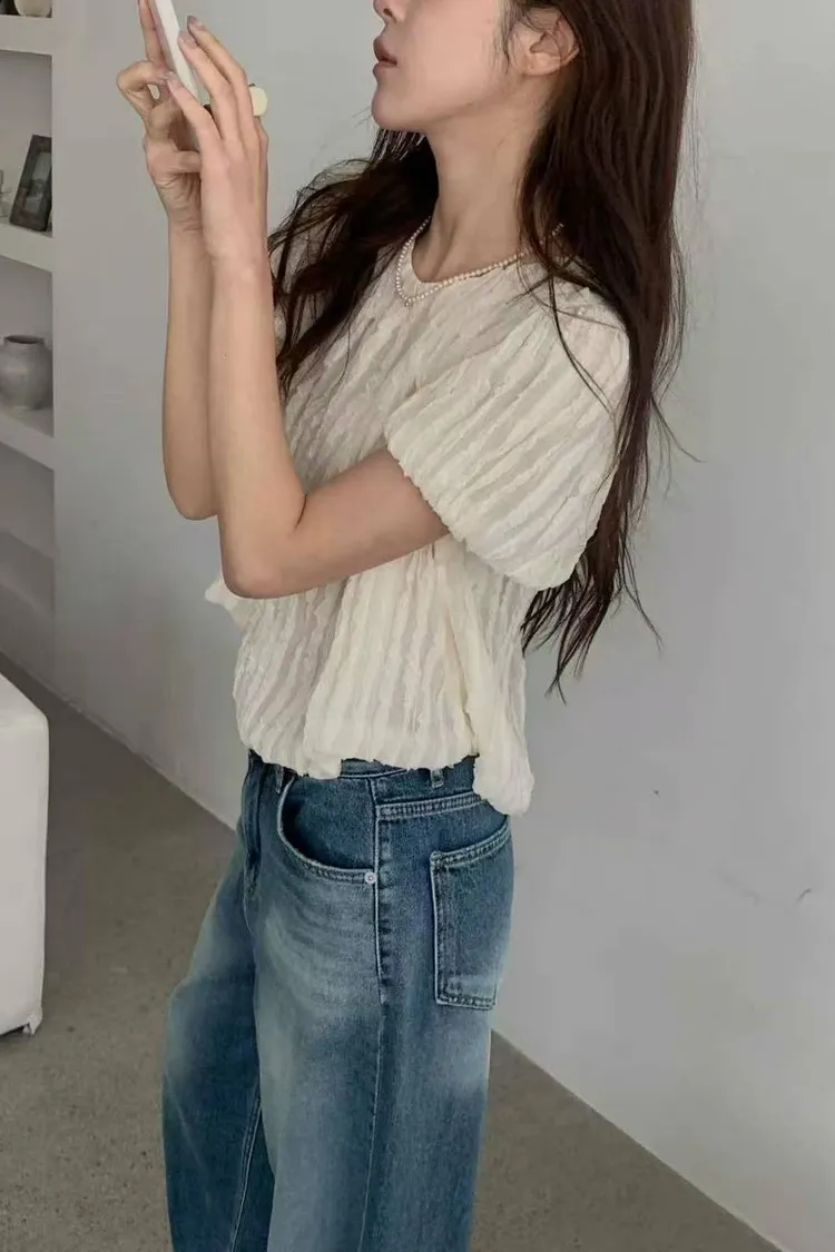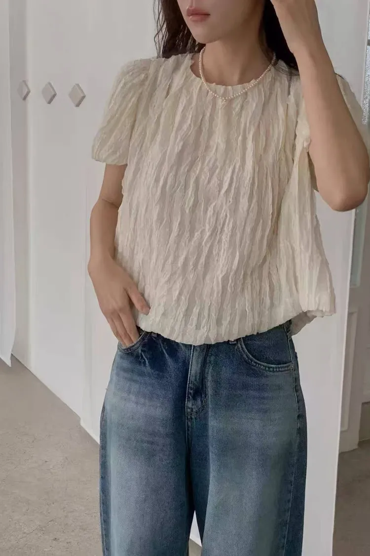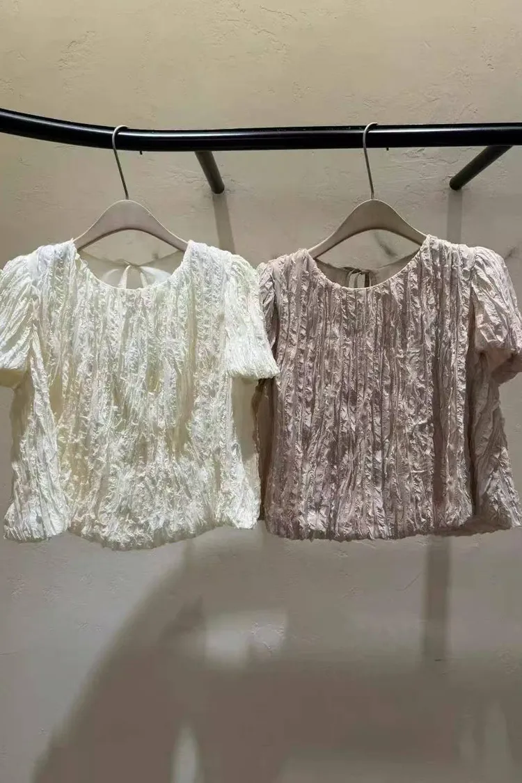 韓國連線款 褶皺立體紋理上衣 短袖上衣