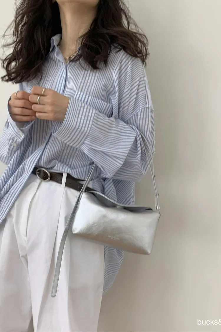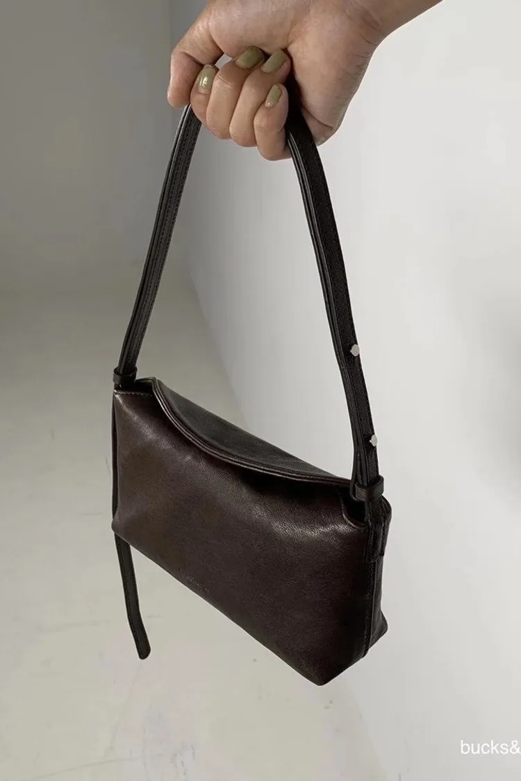 Bucks&leather 韓國小眾品牌包 小款磁釦羊皮斜肩包 真皮側背斜背包