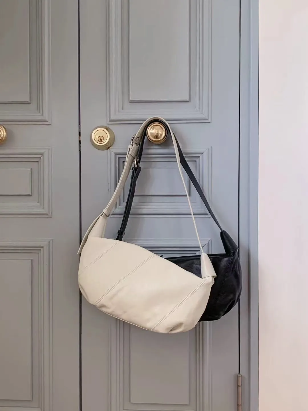簡約牛皮月亮包 半月肩背包 通勤斜背腋下包